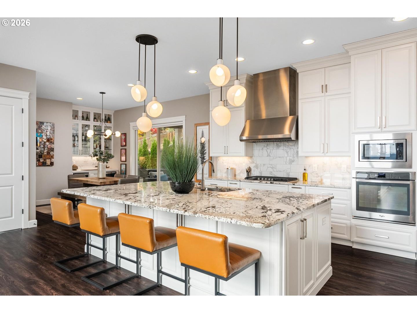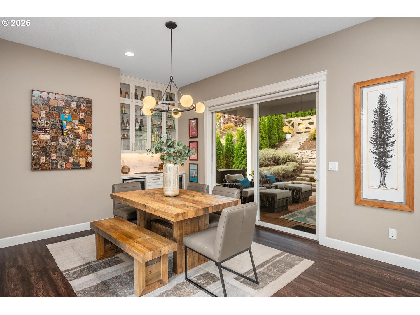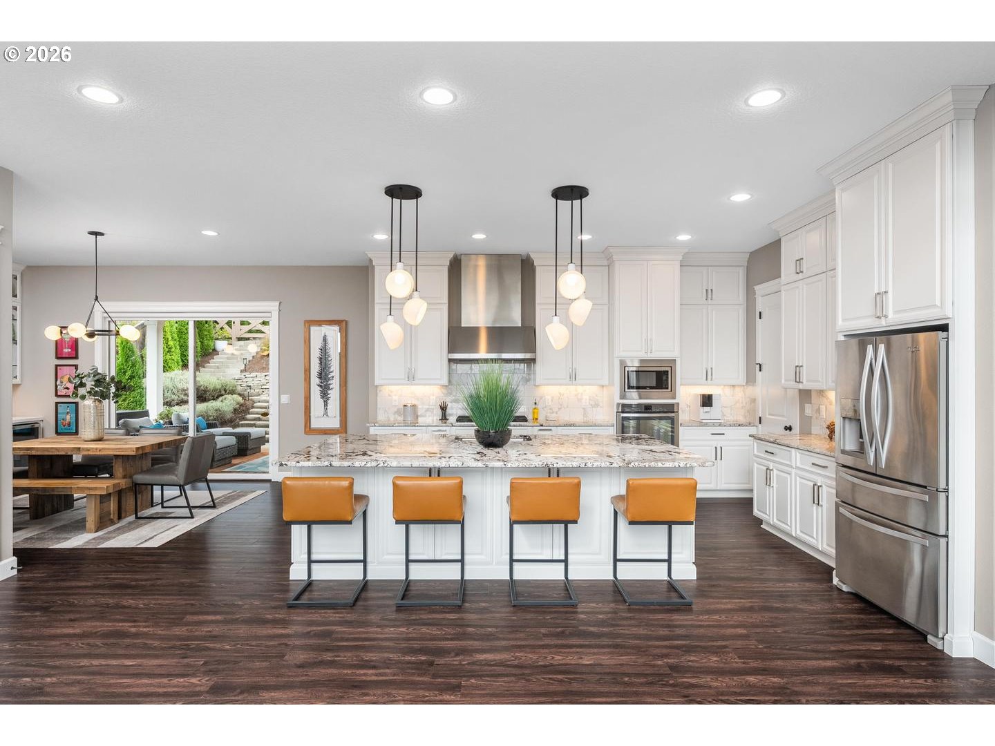 5 bedrooms | 4 bathrooms | 4,030 sq ft | .32 acres. Wake up to stunning valley views and end your days surrounded by peaceful greenspace in this beautifully designed Happy Valley home made for both relaxation and entertaining. The bright, open layout is filled with natural light and anchored by a chef’s kitchen with premium appliances and high-end finishes, flowing effortlessly to the dining area with built-in wine fridges and a covered patio. The huge, fully fenced backyard backs to greenspace and offers both valley views and flat grassy areas, a rare find in Happy Valley. Outdoor living shines with a sun deck, and a tucked-away deck under the trees, with a charming outbuilding perfect for a playhouse, art studio, or extra storage.The top-floor primary suite is a serene retreat with its own deck, sweeping views, a soaking tub, walk-in shower, double sinks, and a large walk-in closet. The lower level offers a full kitchen and full bath, ideal for multi-generational living or hosting guests. Additional highlights include motorized patio shades for privacy, an outdoor TV setup, two EV chargers ready to go, and generously sized bedrooms throughout. This home blends luxury, high-end finishes, space, and lifestyle effortlessly. Seller is a licensed OR Broker.