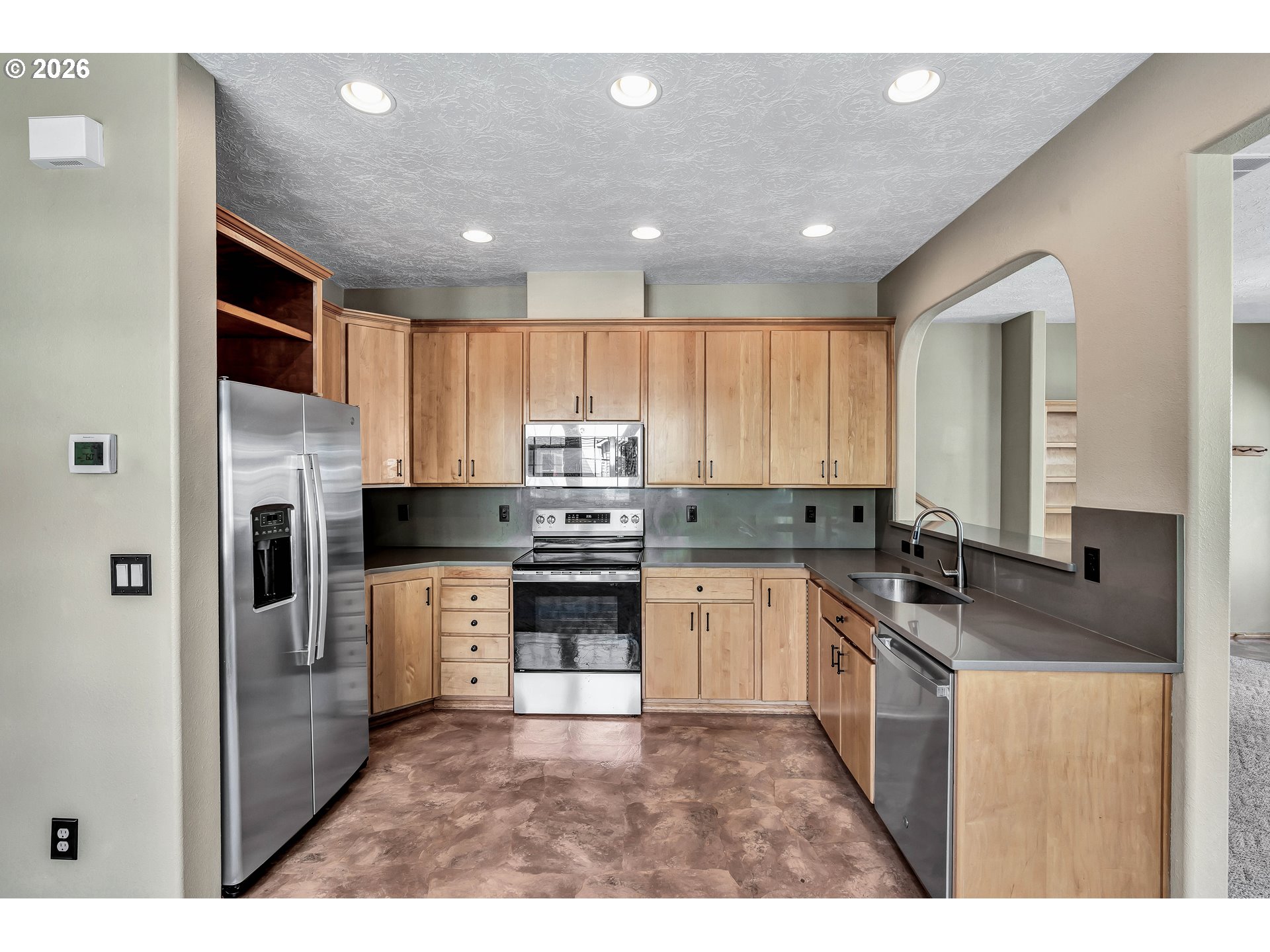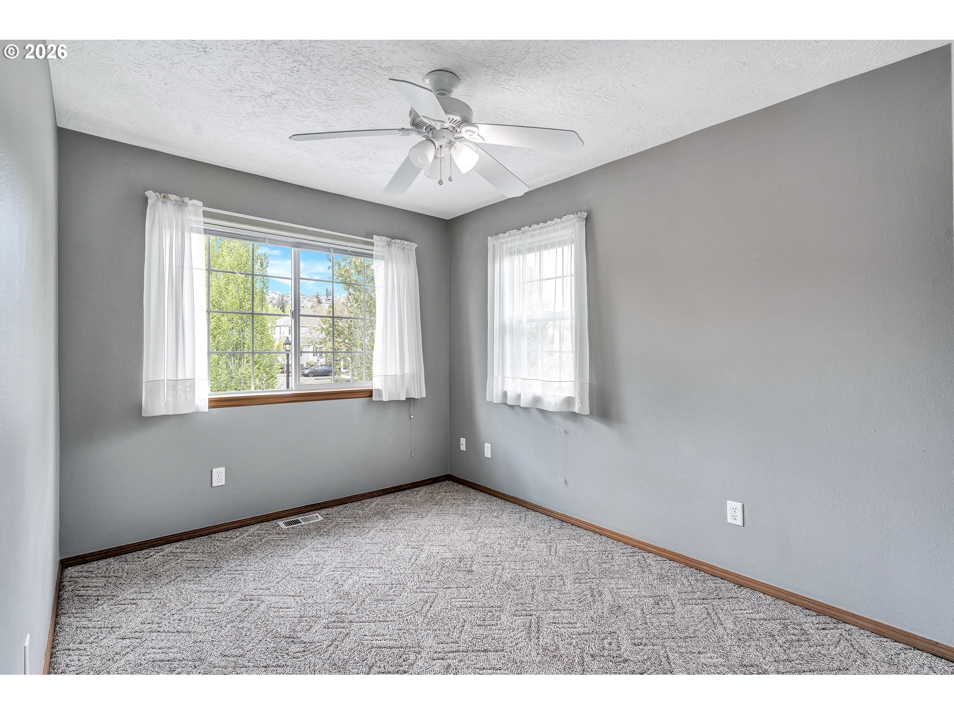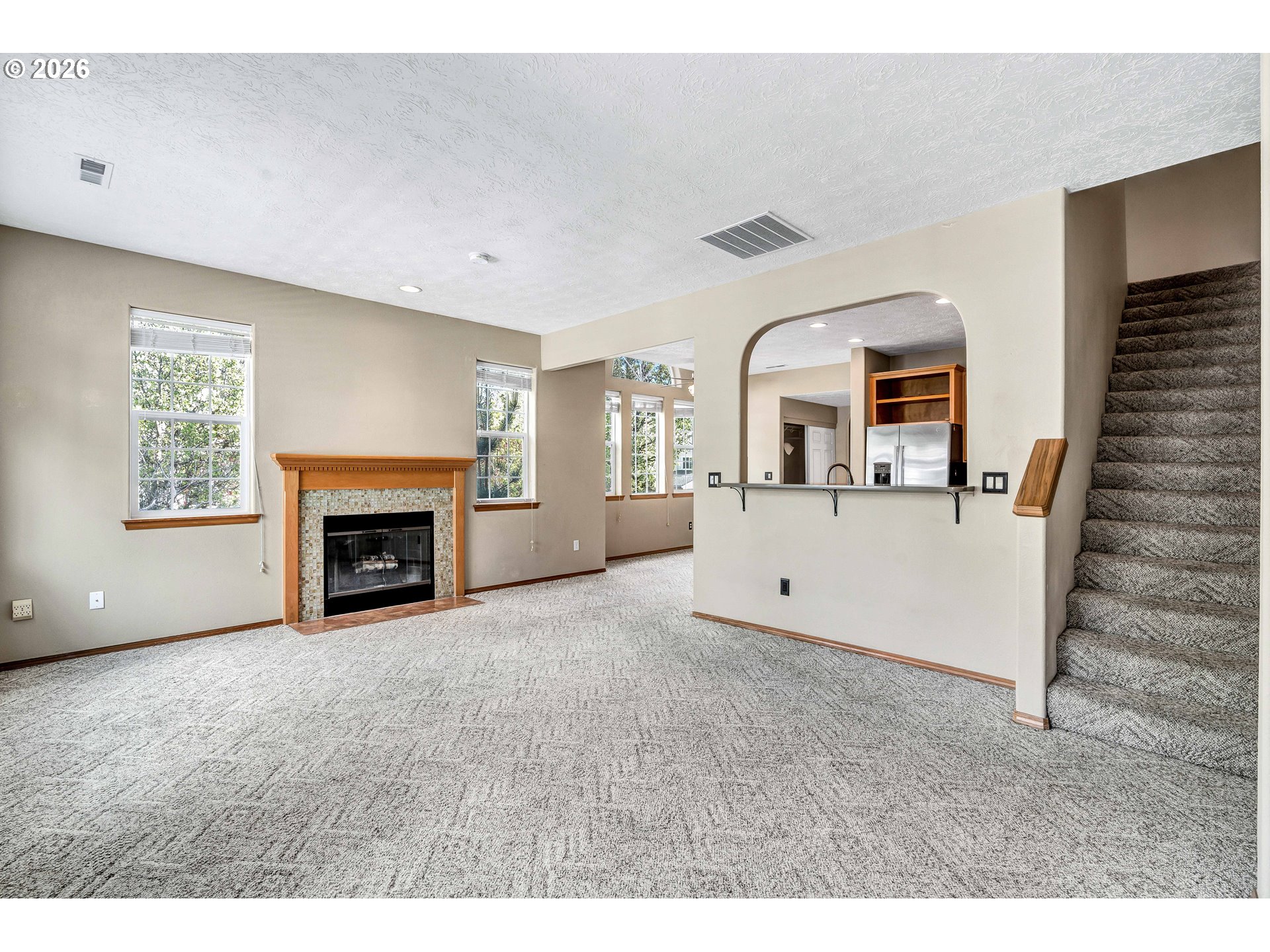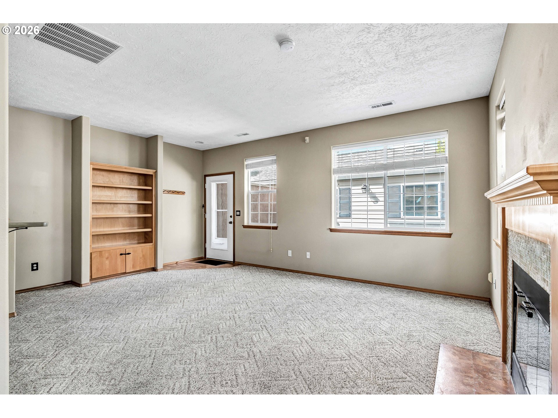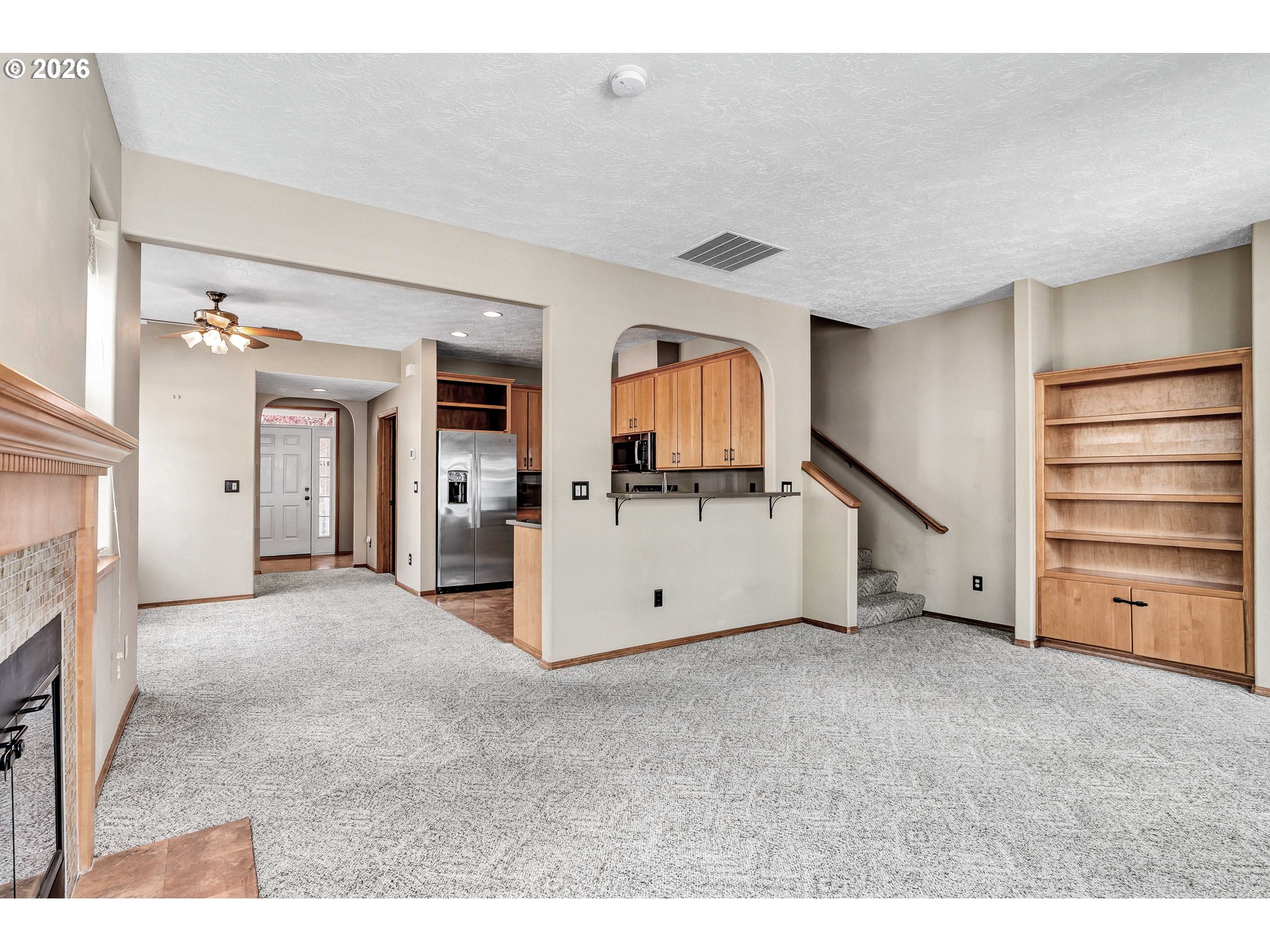 Polished and beautifully maintained end-unit townhome in desirable Princeton Village, offering a bright, refined living experience in the heart of Clackamas. With a south-facing entrance, high ceilings, and abundant natural light throughout, this home feels open, airy, and thoughtfully designed.The main level showcases an open-concept layout that seamlessly connects the living room, dining area, and kitchen. The living room features wall-to-wall carpet and a cozy fireplace, creating a warm and inviting space to relax or entertain. The kitchen is tastefully updated with new appliances and quality finishes, flowing naturally into the main living spaces for easy everyday living. A versatile den or office on the main level adds valuable flexibility for work or hobbies.Upstairs, you’ll find three comfortable bedrooms, all with wall-to-wall carpet and ceiling fans. The spacious primary suite includes a walk-in closet and a private ensuite bathroom, offering a peaceful retreat.Step outside to enjoy a private patio, perfect for morning coffee or evening relaxation, while the attached two-car garage provides convenience and additional storage.Ideally located just minutes from shopping, dining, and everyday essentials at Happy Valley Town Center, as well as nearby trails and recreation, this home delivers the perfect blend of low-maintenance living and accessibility.Clean, modern, and move-in ready—this end-unit townhome offers comfort, function, and style in a highly desirable location.