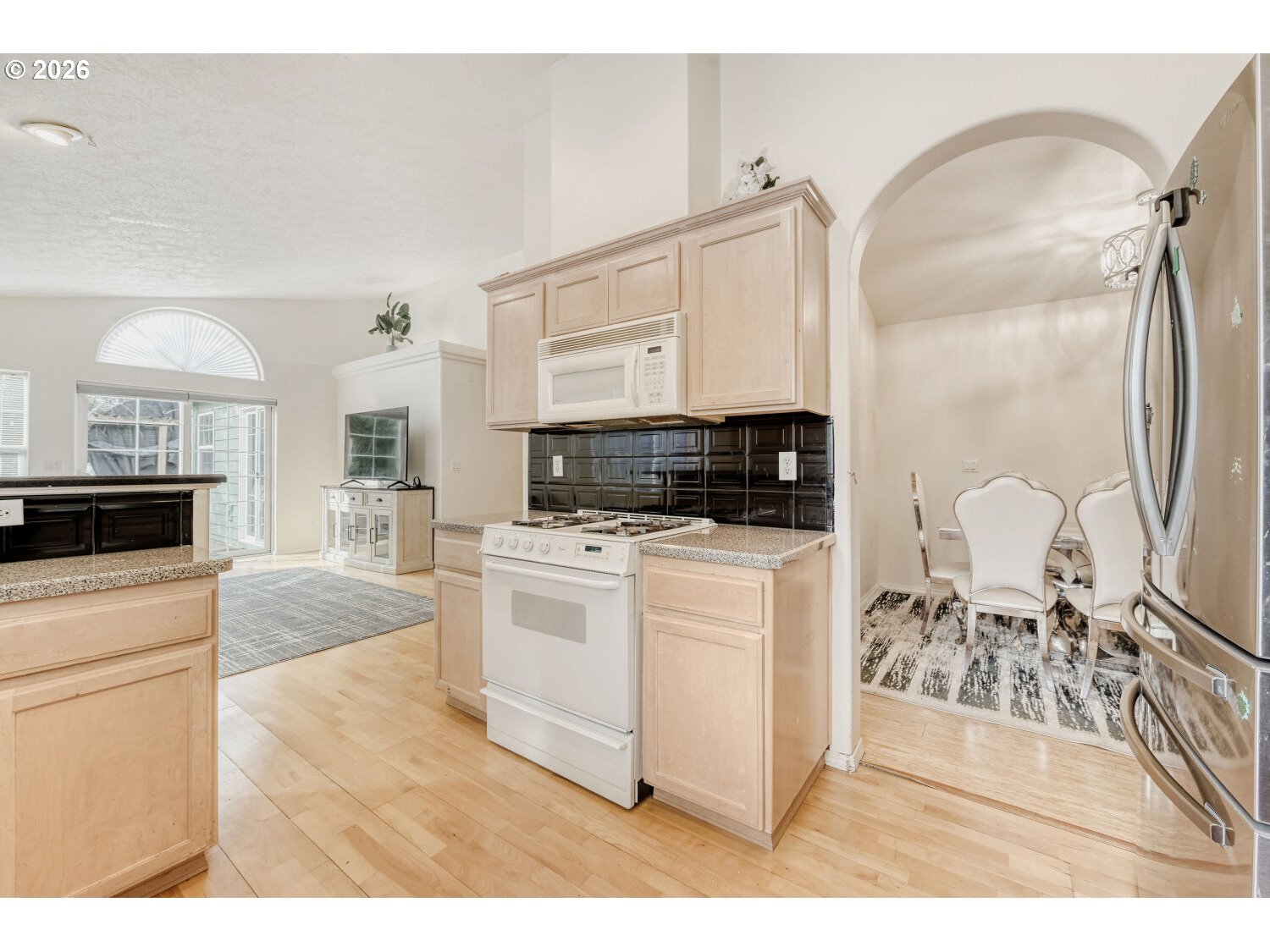 Wonderful floor plan with one level in desirable Rock Creek Neighborhood. Covered front porch welcomes you into formal living room and dining room with gas fireplace and vaulted ceilings. Spacious kitchen and breakfast bar perfect for cooking and entertainment. Family room with eat area is inviting and open with sliding door leading out to patio. Primary bedroom suite with vaulted ceilings, sliding door also out to patio, walk in closet, walk in shower with double sink vanity. Convenient location to all Clackamas has to offer and great access from Sunnyside Road and Hwy 212.