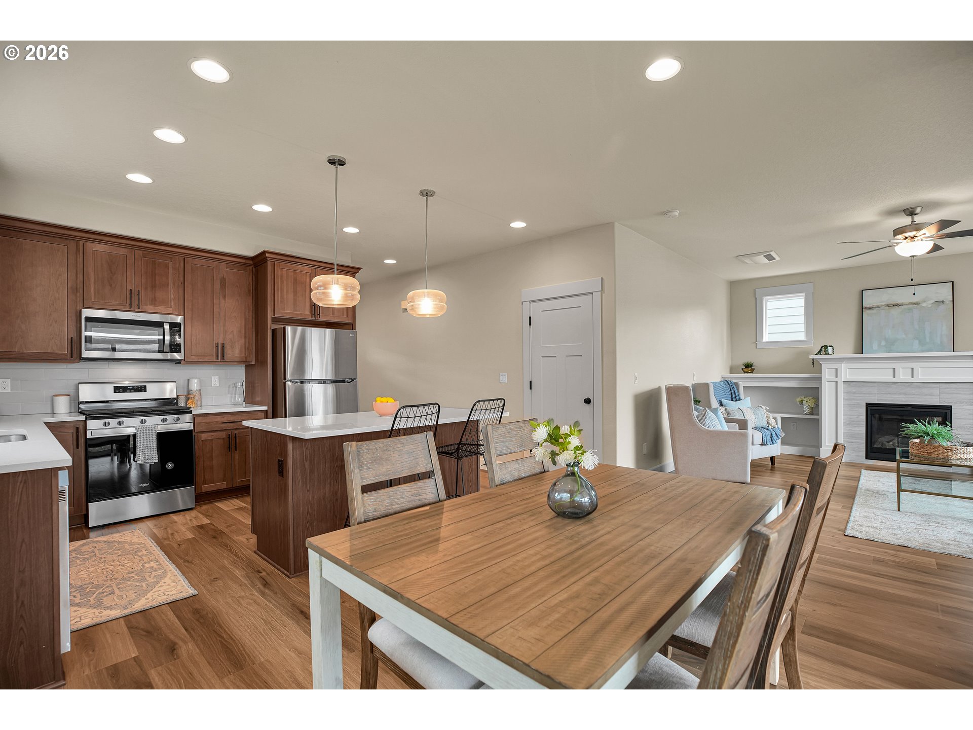 (503) 893-8874Open House 10-12pm Saturday, April 11th and 11-1pm Sunday, April 12th. Beautifully designed 3-bedroom home with loft in a convenient close-in location. Light-filled floor plan featuring a spacious family room with gas fireplace and built-in shelving, open dining area with slider to covered patio, and stylish kitchen with quartz counters, stainless appliances, and gas range. Upstairs offers a flexible loft space ideal for office, media room, or play area. Spacious primary suite with walk-in closet and private bath. Fully fenced and landscaped yard with sprinklers, patio, and great outdoor living space. Excellent access to everyday amenities and commuter routes.