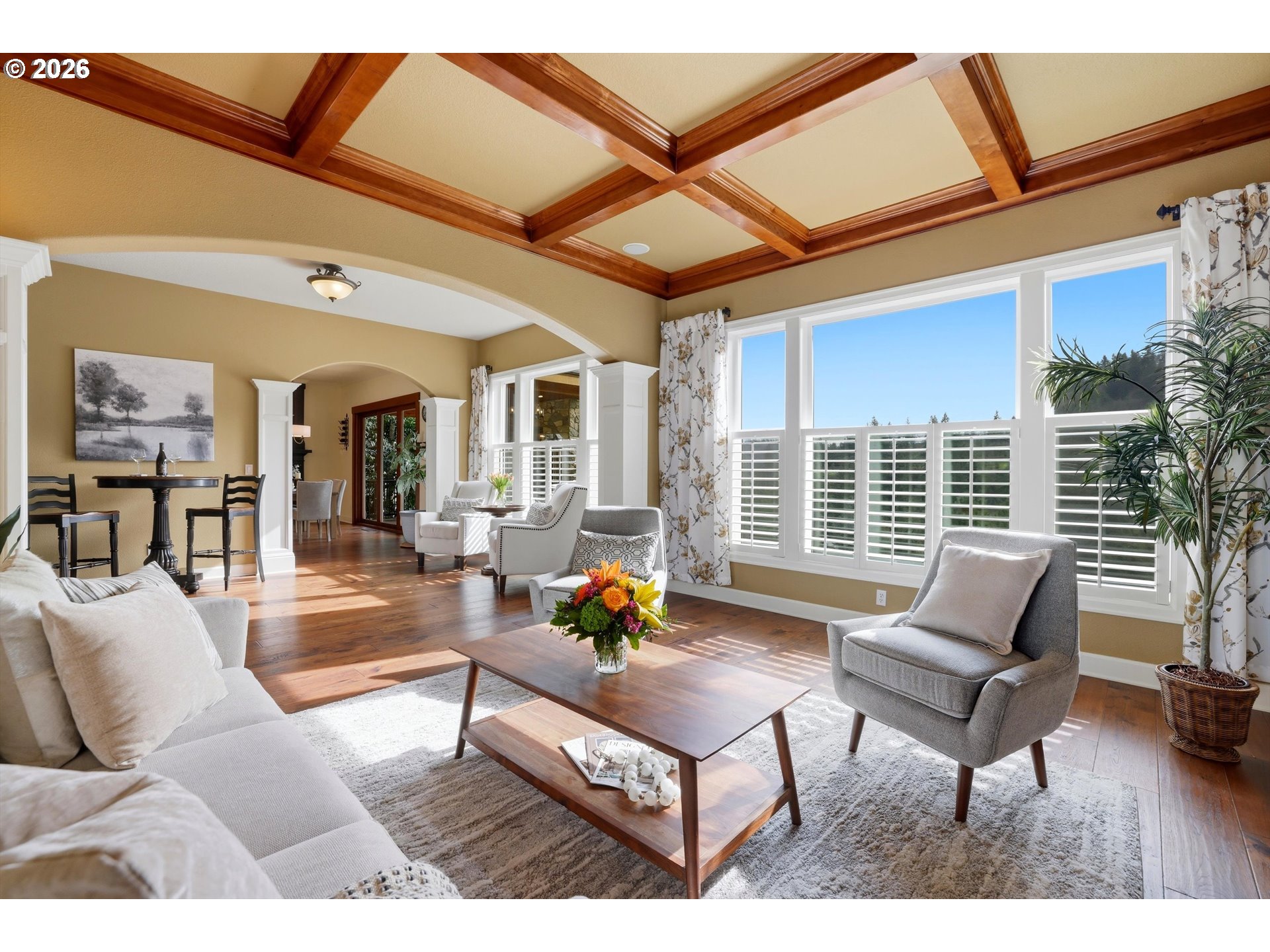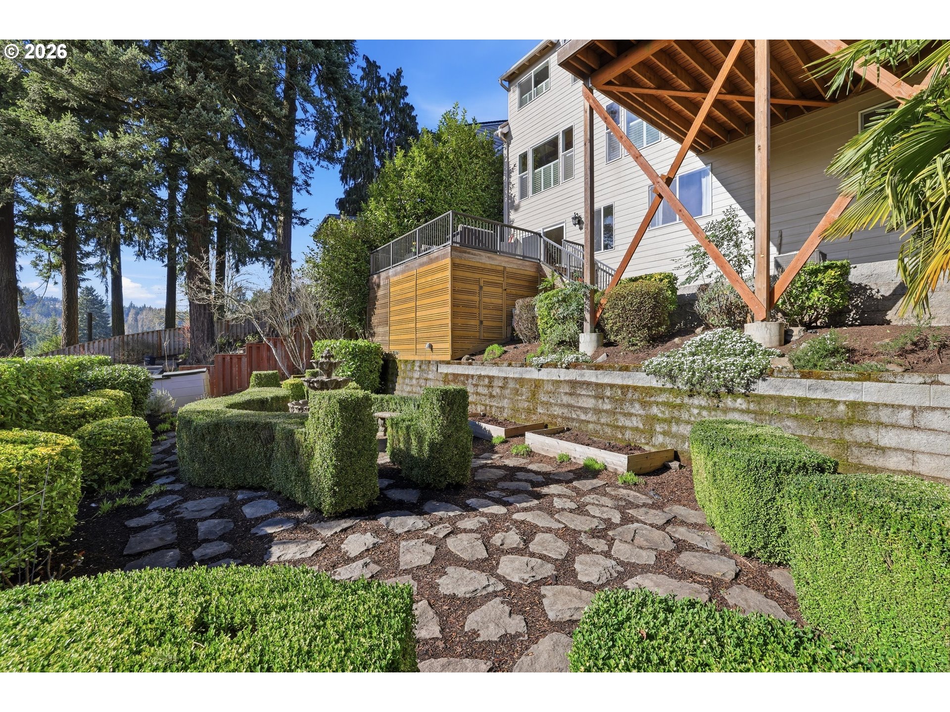 Incredible custom home with panoramic views of Pete's Mountain and Tualatin River just one block from Historic Willamette featuring fabulous shops and restaurants. Beautifully updated and maintained with newer roof, furnace, A/C, water heater, and stunning covered deck with full wall of accordion doors and stone gas fireplace for year-round enjoyment. Other features include updated engineered hardwoods on main floor, Kitchen with gas fireplace, beveled granite counters, pull out drawers, travertine tile, pantry, double oven, gas and stainless appliances, floating shelving, crown molding, cabinet lighting. Living room with gorgeous box beam ceilings, gas fireplace with stunning millwork, arched entryways. Custom shutters on nearly every window. Full bathroom and bedroom on main floor with high ceilings, French doors, and double closets. Wrought iron staircase, multiple skylights. Primary bedroom with wall of windows, vaulted ceilings, jet tub, double sinks, granite, built-ins and walk in closet. Upper bedrooms with Jack and Jill bathroom plus an upper bonus room and upstairs laundry with sink. Lower-level features two bedrooms with bath plus lower family room with slider to lower deck. Gorgeous yard with sweeping views, French garden with fountain, raised beds for gardening and the artificial turf in the front yard and backyard along with gutter guards offers low maintenance. Multiple storage rooms. Open House Sunday, 3/1 from 12pm to 2pm!