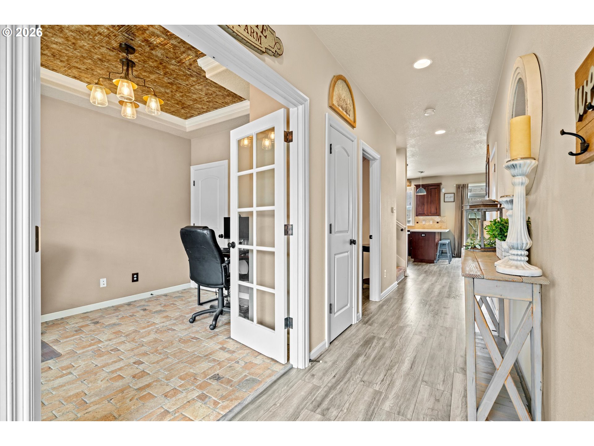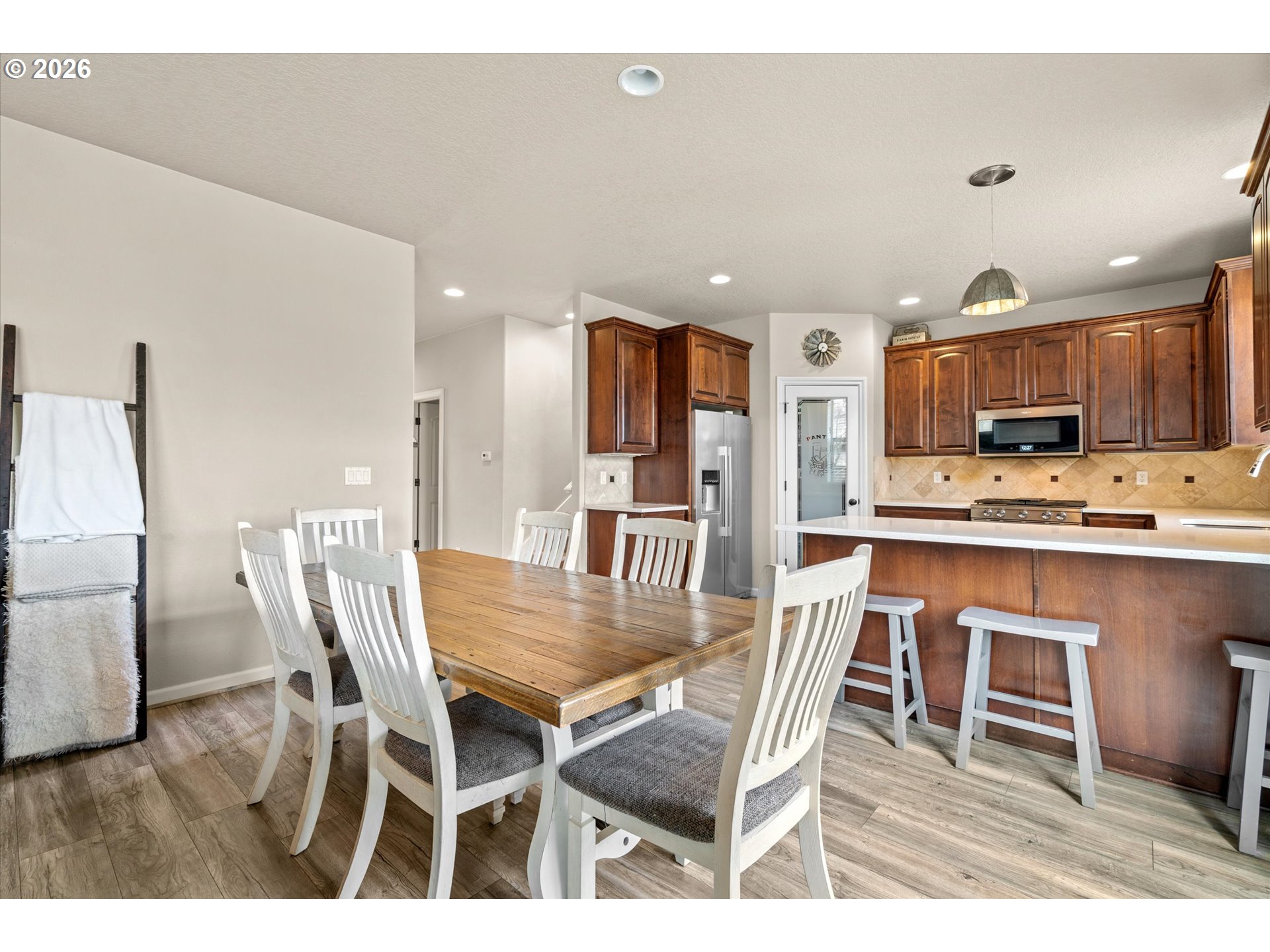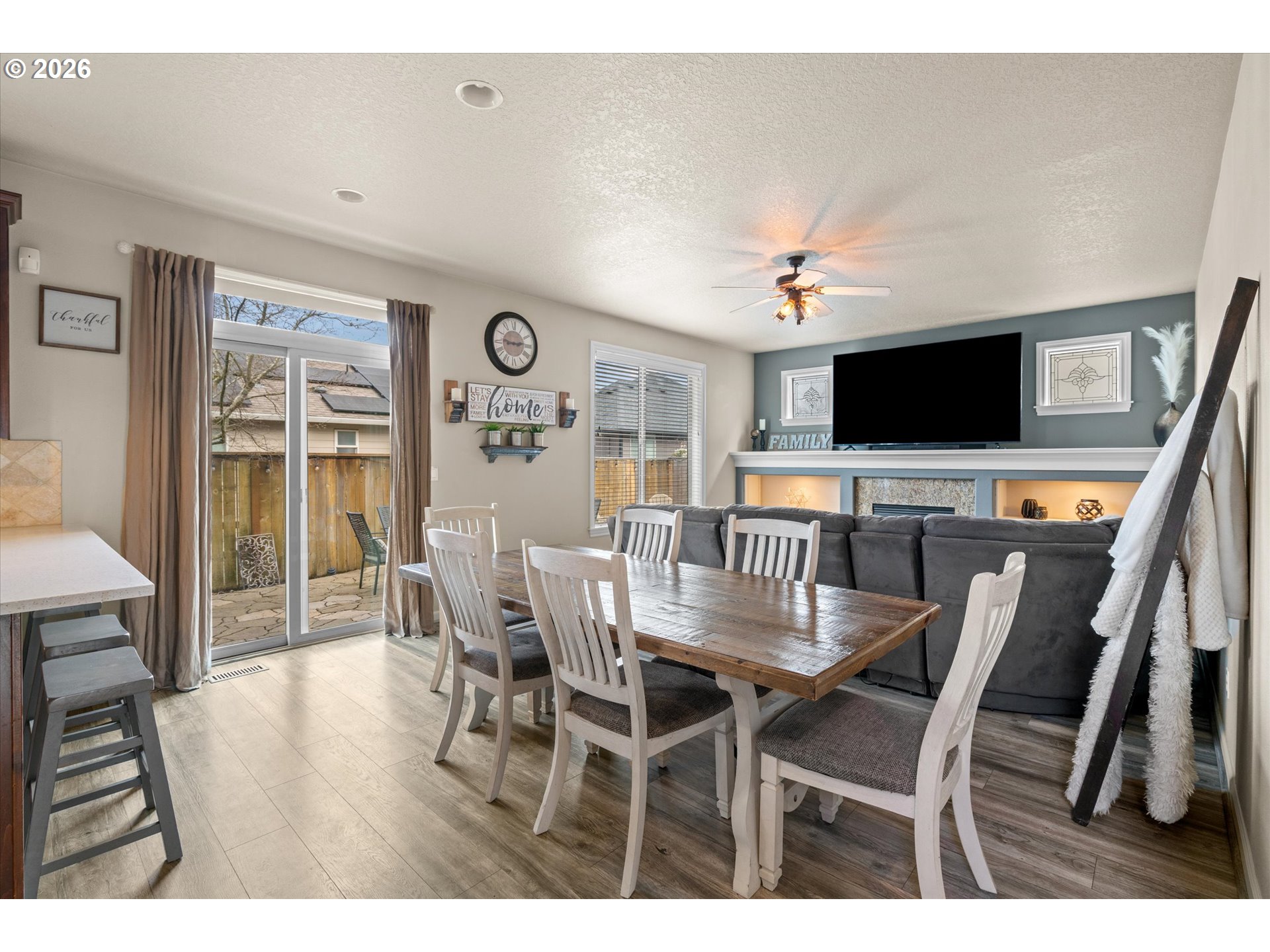 (503) 893-8874Coffee on the porch. Evenings by the fire. This beautiful Turn-Key Craftsman on a quiet dead-end street blends charm with comfort, hallmarking a spacious great room floor plan with high ceilings and abundant natural light - creating the perfect setting for NW living + establishing an environment that truly feels like home. Main living areas offer durable luxury vinyl plank flooring, custom built-ins, and a cozy gas fireplace. The kitchen includes new quartz countertops, stainless steel gas appliances, tiled backsplash, pantry, and eating bar, opening to the dining area with sliding door to the backyard. Versatile main-level 4th bedroom/den/office with French glass doors, coffered ceiling, closet, and unique stone flooring. Upstairs, the primary suite features vaulted ceilings, a restored wood accent wall, barn doors, and private bath with tiled soaking tub, tile floors, and walk-in closet. Two additional spacious bedrooms and a laundry room with cabinets and work station complete the upper level. Exterior highlights include a stone façade, covered porch, water feature, RV parking, and a 2-car garage. Fully fenced, low-maintenance backyard with stone patio and built-in gas fire pit ideal for entertaining. This is a must see!!