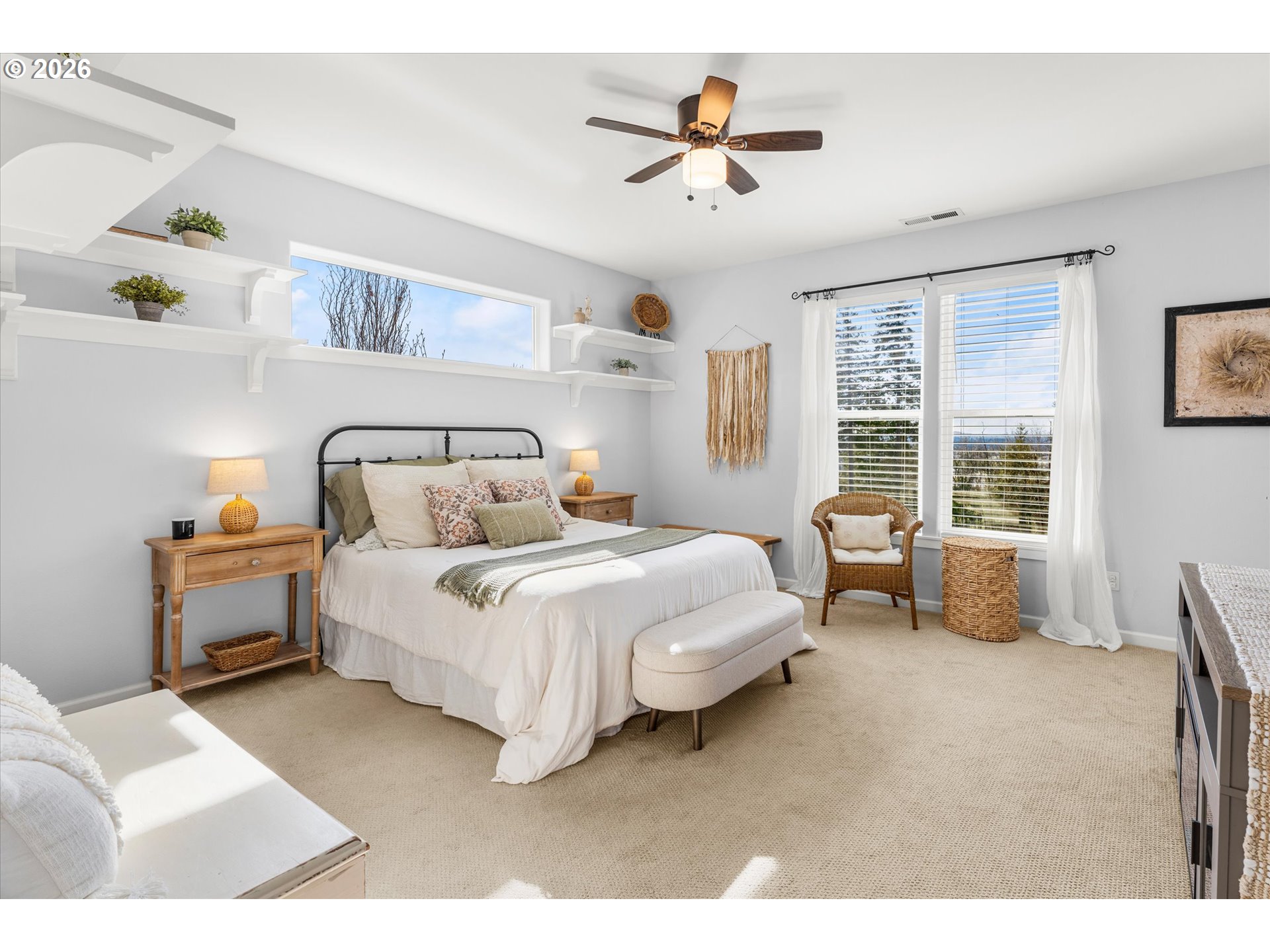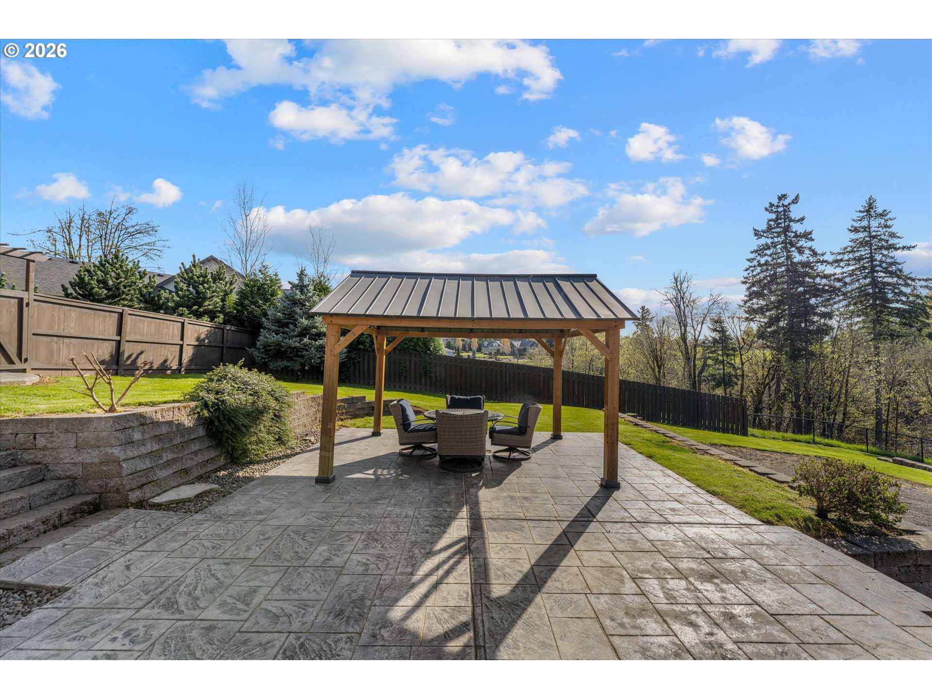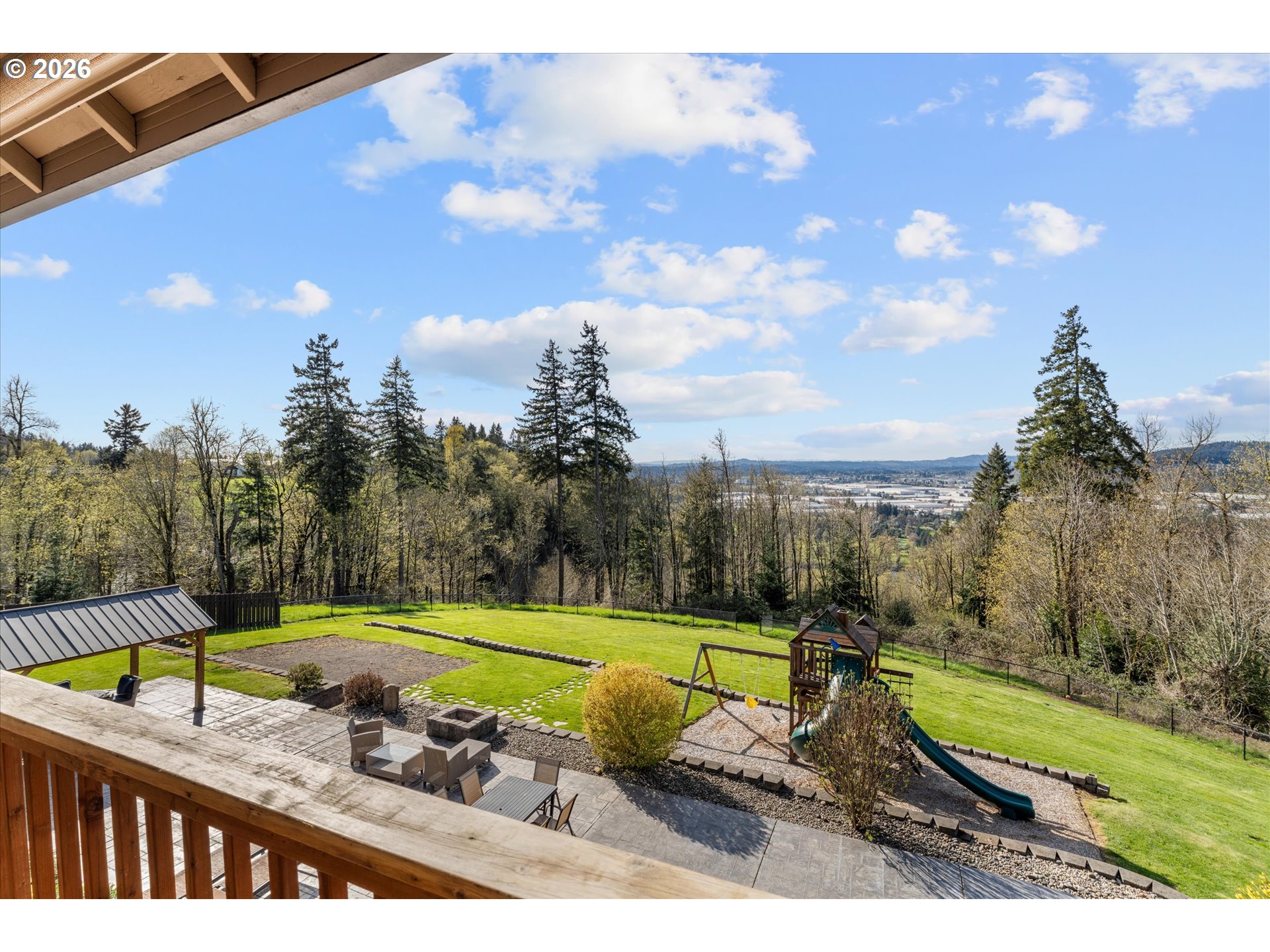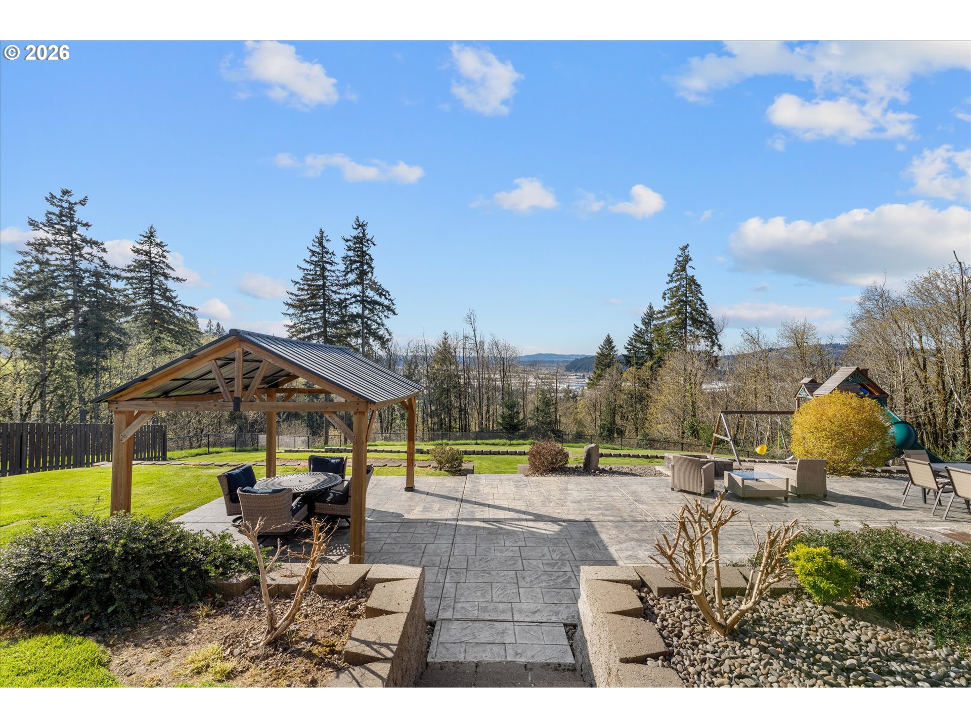 Welcome to 14857 S Sunterra Loop- an exceptional retreat nestled on 1.31 acres in the gated Edgecliff Estates community of Oregon City! This beautifully designed home offers the perfect blend of space, functionality, and elevated living with stunning territorial views and seamless indoor-outdoor flow. Featuring 4 bedrooms plus a spacious bonus room and 3 and a half bathrooms, this versatile layout is ideal for multi-generational living or flexible lifestyle needs. Two primary suites are conveniently located on the main level, each offering private en-suite bathrooms plus a 3rd bedroom. While upstairs you’ll find an additional 4th bedroom connected to a bonus room with a Jack & Jill bathroom-perfect for guests, a media space, or home office setup. The open-concept floorplan is filled with natural light, highlighted by expansive windows, warm hardwood floors, and a welcoming great room with a cozy fireplace. The kitchen is designed for both everyday living and entertaining, featuring a large island, ample cabinetry, and effortless flow into dining and living spaces. Step outside to your own private oasis-complete with a circular driveway, full fencing, fresh landscaping, water feature, pavilion, garden beds, and a dedicated playground area. Whether hosting gatherings or enjoying quiet evenings, this property offers the space and setting to do it all. Additional highlights include a 3-car garage, RV parking, generous storage throughout, and a massive partially finished lower-level storage area with potential to expand into additional living space. Located in a sought-after gated community, this home offers privacy, space, and convenience. A rare opportunity to own a lifestyle property in one of Oregon City’s most desirable neighborhoods!