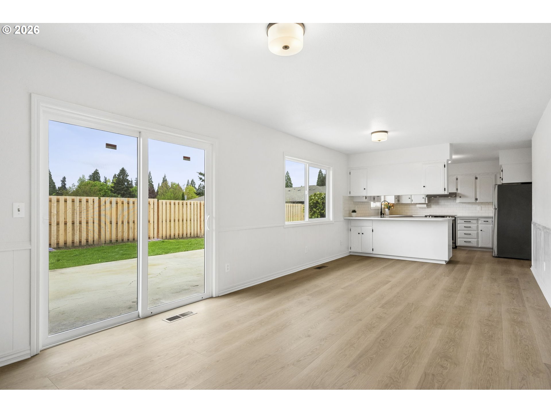 This remodeled one-level home offers a comfortable, easy-living layout with modern updates throughout. All new luxury LVP flooring, new roof and Milgard windows, new and added lighting, plumbing fixtures and toilets, fresh interior, and exterior paint and more! The well-appointed kitchen and bathrooms feature soft close cabinets, new slab quartz countertops, new appliances, new hardware and freshly painted cabinets with plenty of storage. The inviting living area offers A/C, a wood burning fireplace and spacious bedrooms to relax and unwind. Outside, enjoy the large .22 acre fenced yard with space for gardening and play, all with easy-to-maintain landscaping and gated RV parking. Ideally located near parks, schools, and local amenities, this home blends comfort and convenience in a sought-after Canby community.The tax ID and tax amount is not correct. Correct tax ID is 05041357. Call the county for estimate of the 2026 tax.