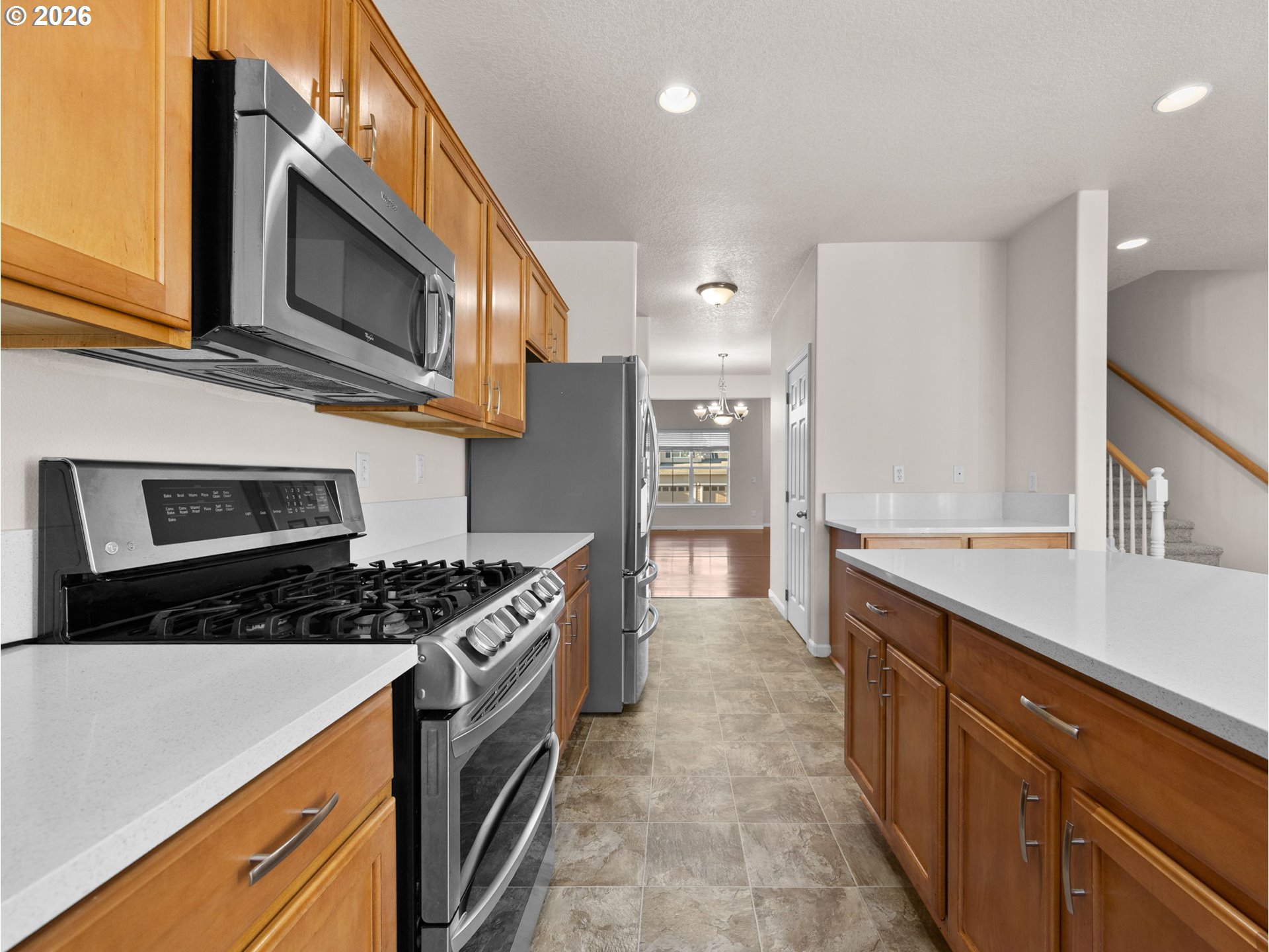 Dishwasher, Disposal, FreeStandingRange, Island, Microwave, Pantry, Quartz, SolidSurfaceCountertop, Stainles
