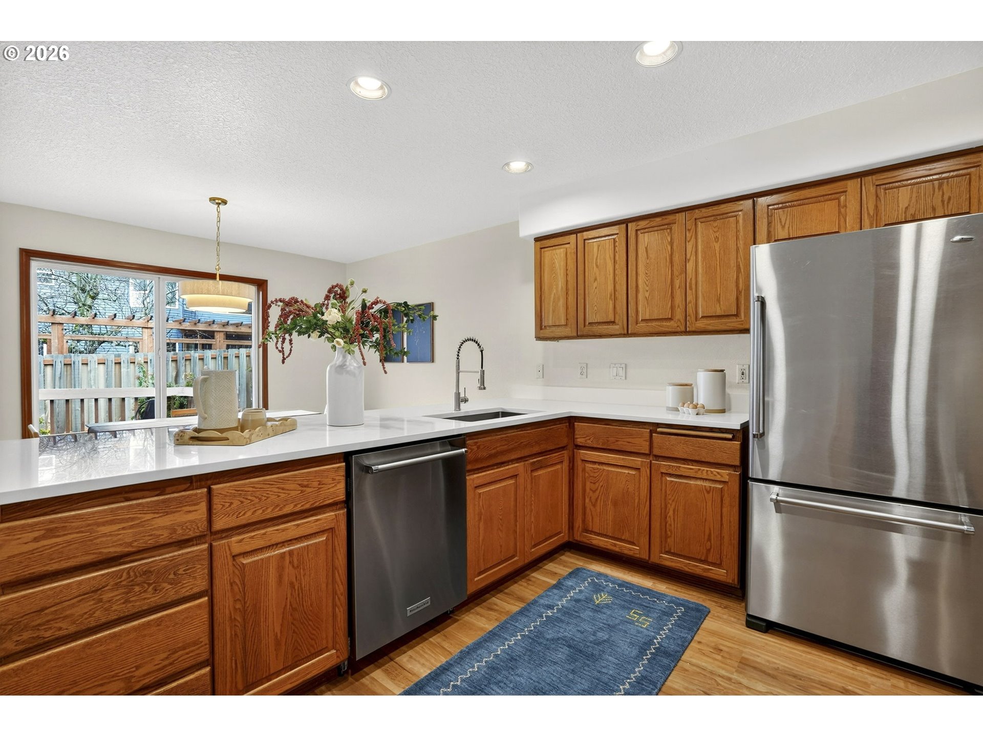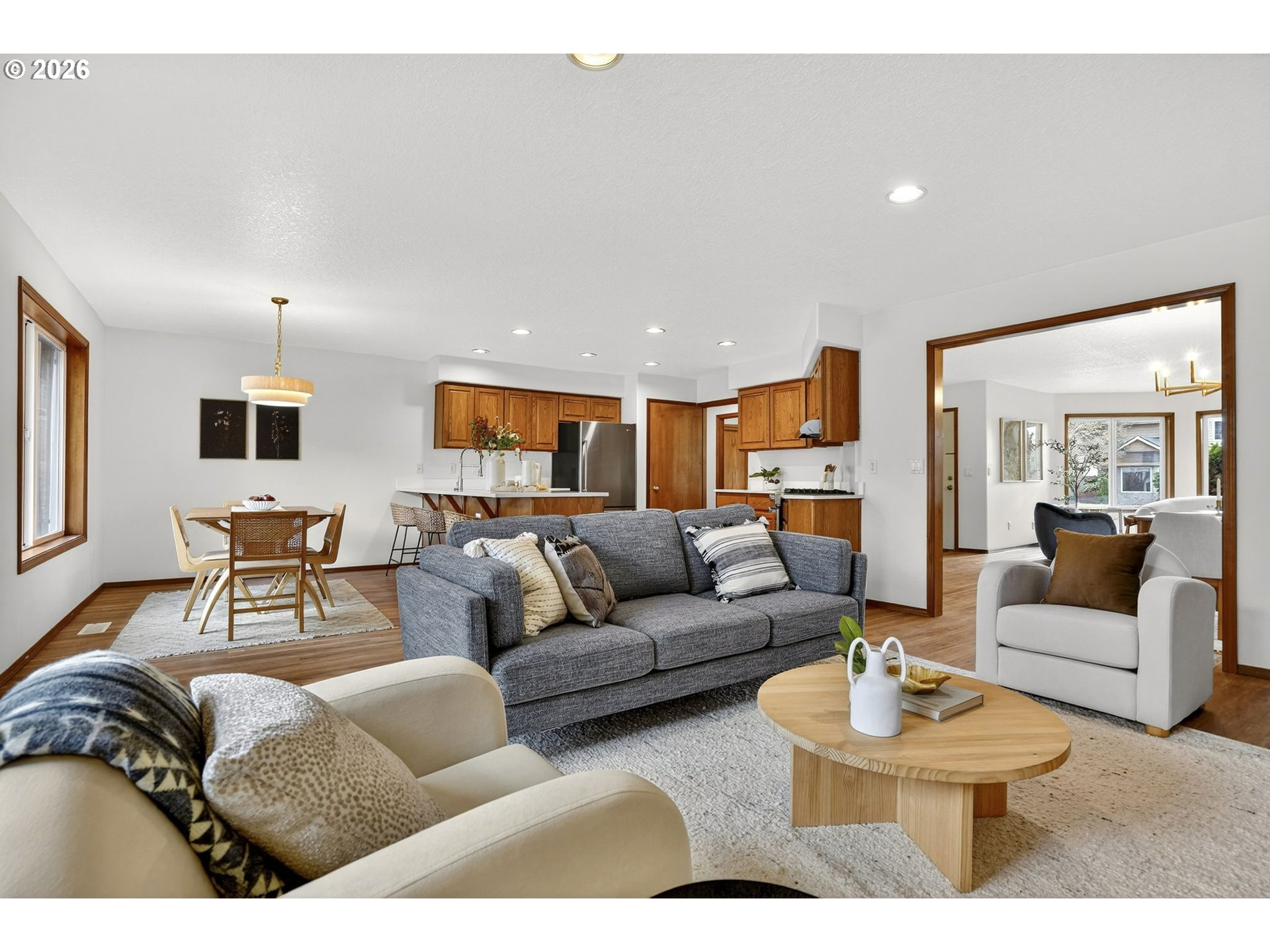 Rare ONE-LEVEL living at its finest! This beautifully designed home offers effortless flow, new flooring, expansive windows, and an abundance of natural light throughout. Enjoy generous open-concept living spaces and a specious kitchen featuring a gas stove, quartz countertops, undermount sink, new disposal and stainless steel appliances. The bedrooms provide comfort for all, while the sizeable primary suite boasts dual sinks and a walk-in closet. A dedicated laundry room adds convenience (washer and dryer included), and the new roof (2023) offers peace of mind. Step outside to a serene deck, ideal for sipping your morning coffee. Located just minutes from Clackamas Town Center, the MAX Green Line light rail, Mount Talbert Nature Park, Kaiser Permanente Sunnyside Medical Center, and Costco Wholesale, this home perfectly blends style, comfort, and convenience. Don’t miss your opportunity! Open Sunday, March 1st, from 12pm–2pm!