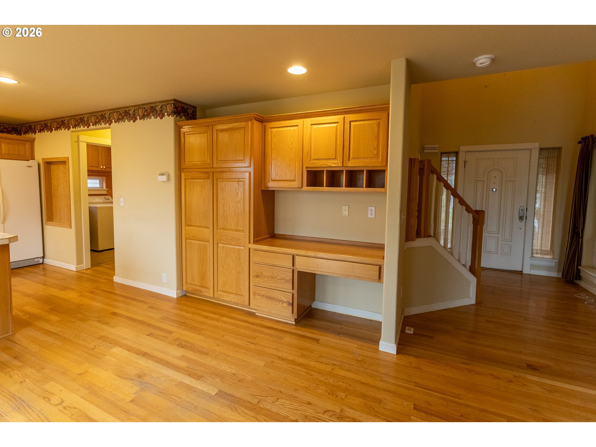 Square footage per floor plan drawing of the home is showing more than the county records (1746 vs 1602). The seller is not warranting the sqft of either resource. This Home is being sold "AS-IS, NO REPAIRS" to be done by the seller. Great opportunity to do updates & put some elbow grease into this one to really make it shine. The gas fireplace insert is currently not working & the gas line to the unit has been turned off. Home located on corner lot in a private cul-de-sac tucked away from the hustle & bustle, yet conveniently located to Sunnyside & Clackamas area amenities. All appliances are included + shelves galore in the garage. Real hardwood floors in living rm, dining & kitchen, great built-in desk in dining area along w/pantry. Large main floor utility rm w/cabinets & sink, 2 nice sizable bdrms feature built-in benches in alcove, if you need a 4th bedroom, it could easily be converted back by enclosing the opening that created an enormous walk-in closet for the primary bdrm. Composite deck off the dining area over looking fully fenced backyard. 10x8 Shed, water heater replaced in 2021, exterior painted in 2019