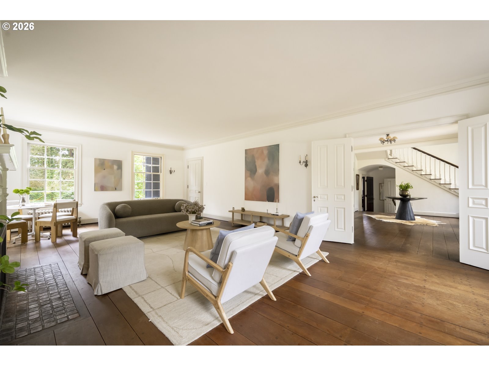 (503) 893-8874A few blocks from McLaughlin but an actual world away, turn south on Woodland Way & enter a portal. Beyond the laurels & wrought iron, The Pearl of Oak Grove appears. Welcome to Tranquility Base-2.89 acres straight out of a Jane Austen novel. Designed by Portland’s own Jamieson Parker, an iconic + nationally renowned architect-Tranquility Base holds true to Parker's legacy. Careful workmanship, a command of details & a free & innovative blend of traditional & modern styles are on full display. Beyond the circular drive, you’re welcomed in by Parker’s vision. Stunning wide plank teak floors & a formal entry that feels both elegant & inviting. Adjacent, the living room-complete w/ floor to ceiling built-in bookshelves, wood burning fireplace & french doors to the coveted, covered brick porch. The expansive 2nd living space, sun drenched & rich in windows w/ a gas fireplace to keep it cozy. Past the soaring soft arch & up the curving staircase, 3 storybook bedrooms & incredible primary suite. All 4 w/ enchanting ensuite baths, 3 of which expertly remodeled by the meticulous + magic team at Canopy Builds.The primary is a true haven, considerable in size w/ an ensuite that's all main character energy. Custom vanity crafted from a red oak from the property & secret jewel box vanity behind a custom mirror. Back down & into the west wing, the vibe shifts in the dining room. Warm, moody orig. wood paneling, built ins & gorg rondel windows prove the dining room is the drama queen of this Pearl. Through the french doors, formal gardens & original brick tea house invite you out. Part secret garden, part enchanted forest & somewhere you’d expect to find Snow White among the irises or besides River Forest creek that meanders along the property. The generous kitchen joins timelessness + function w/ full butlers pantry, new island slab & room to roam. The cherry on top is an original studio + full bath above the detached garage, perfect for guests or perhaps 7 cheeky dwarves?
