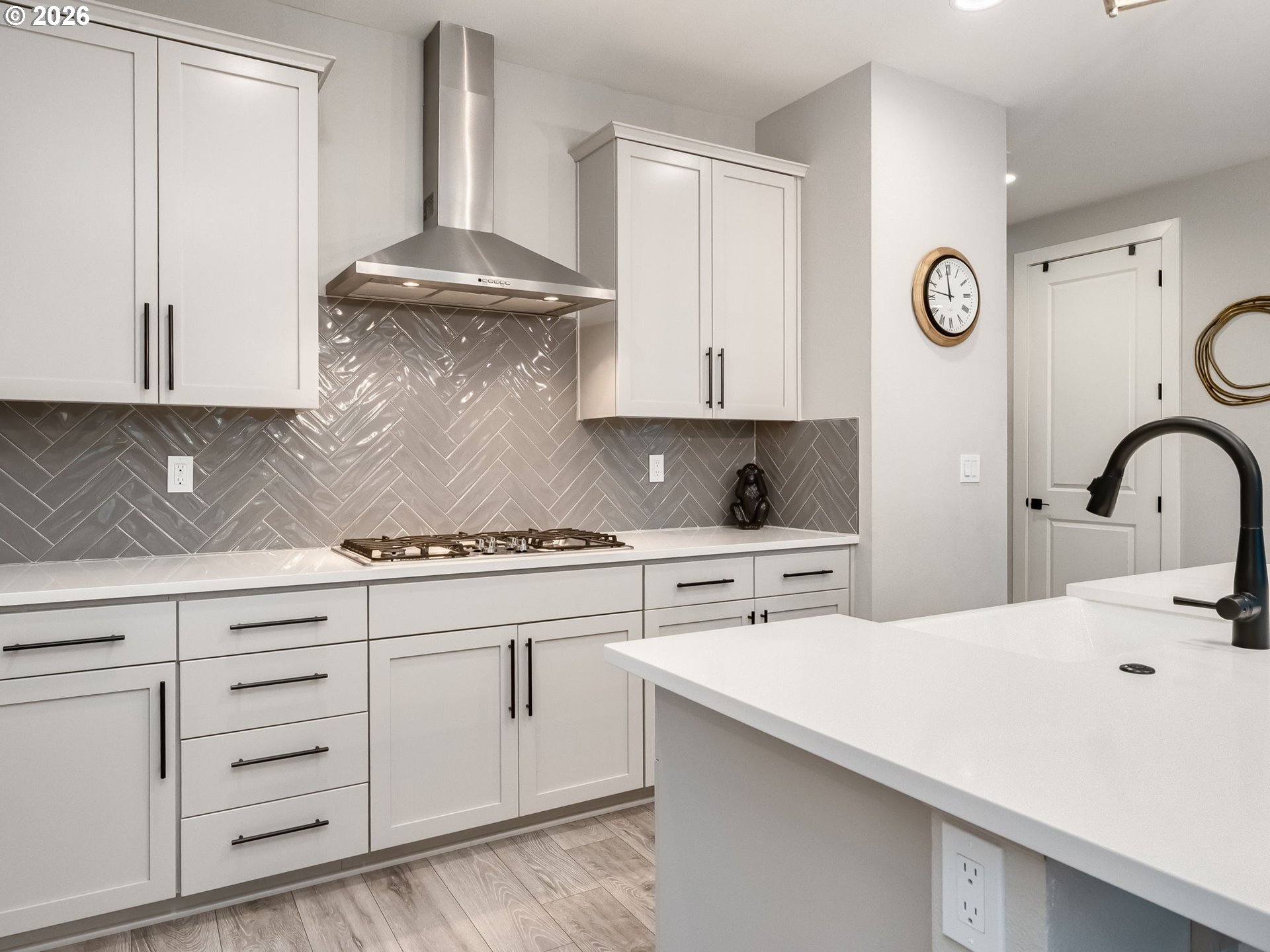 (503) 893-8874Backing to the scenic beauty of Scouters Mountain, this thoughtfully designed 2,753 sq ft residence offers modern elegance, flexible living spaces, and a rare connection to nature. Featuring 4 bedrooms and 3 full baths, including a main-level bedroom with full bath, the home is ideal for multigenerational living, guests, or a private home office. The open-concept main level is anchored by a dramatic full-height fireplace, creating architectural interest and a warm gathering space. The chef-inspired kitchen is beautifully appointed with quartz countertops, double ovens, and clean-lined cabinetry; designed for both everyday living and entertaining. Upstairs, a spacious and light-filled loft provides versatile additional living space, ideal for a media room, playroom, or secondary lounge. The generous primary suite offers a serene retreat with ample natural light and a spa-like bath featuring a soaking tub, walk-in tile shower with glass enclosure, dual vanity, and an oversized walk-in closet. Secondary bedrooms are well-proportioned and thoughtfully placed, offering flexibility for bedrooms, guest rooms, or home offices. A dedicated laundry room with built-in cabinetry and counter space adds everyday convenience. Step outside to a private patio and entertaining space, perfect for outdoor dining and relaxing, with immediate access to the Scouters Mountain Regional Trail and Nature Park just steps away; an exceptional lifestyle amenity rarely found at this price point. Located minutes from parks, shopping, dining, and top-rated Happy Valley schools, this home blends modern design, comfort, and location seamlessly.