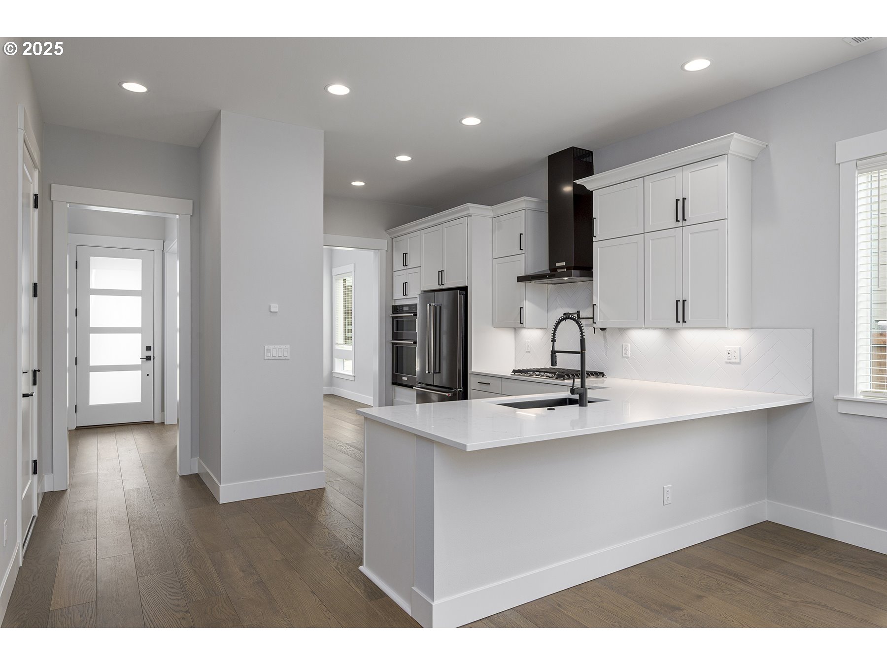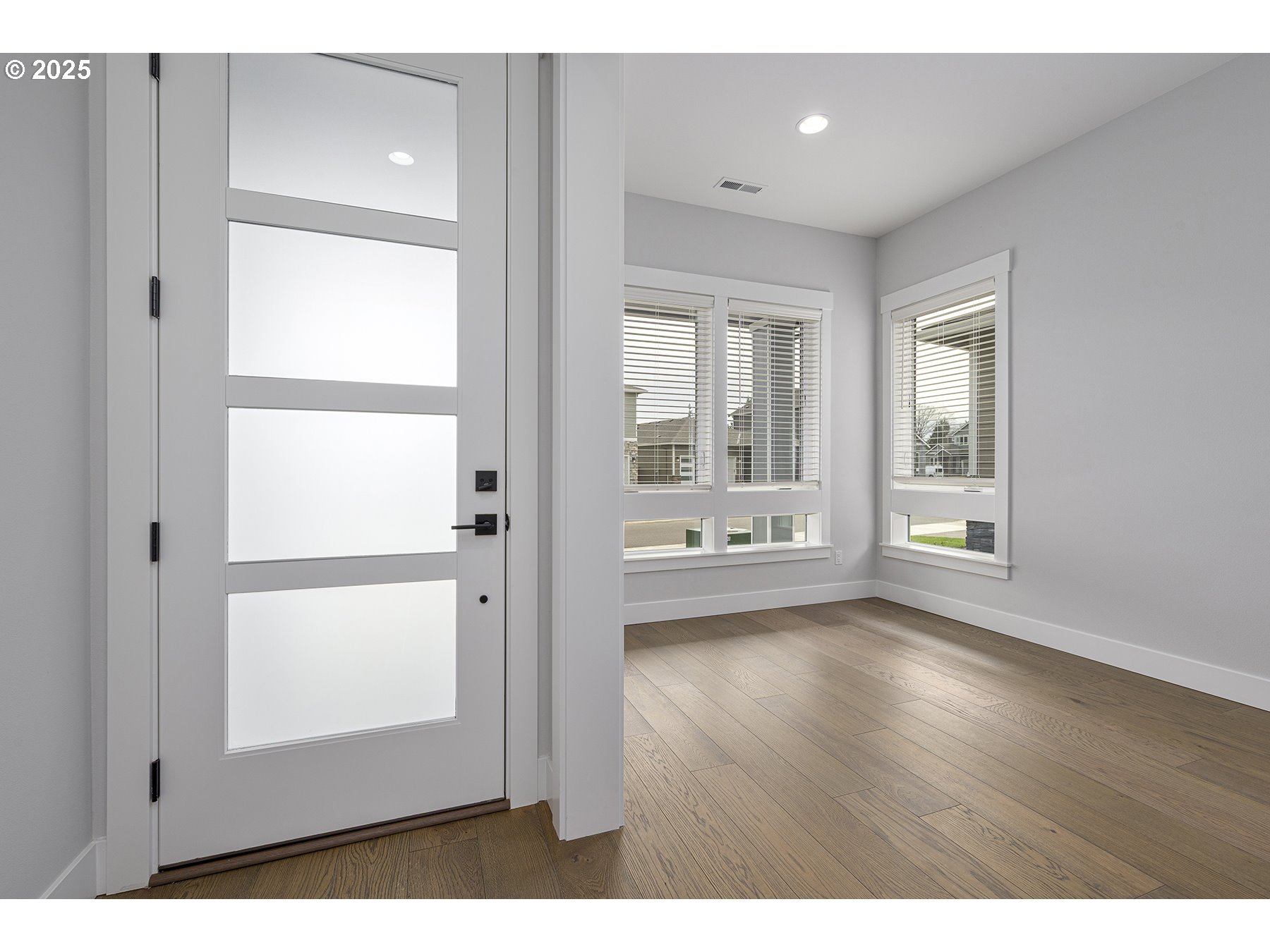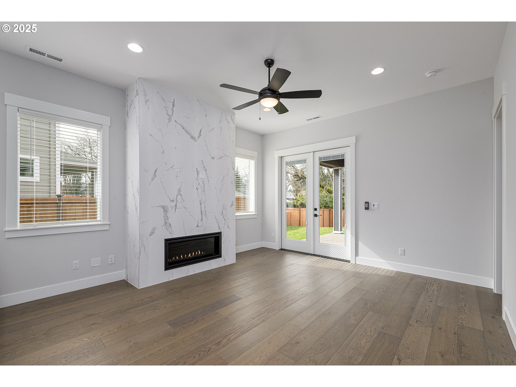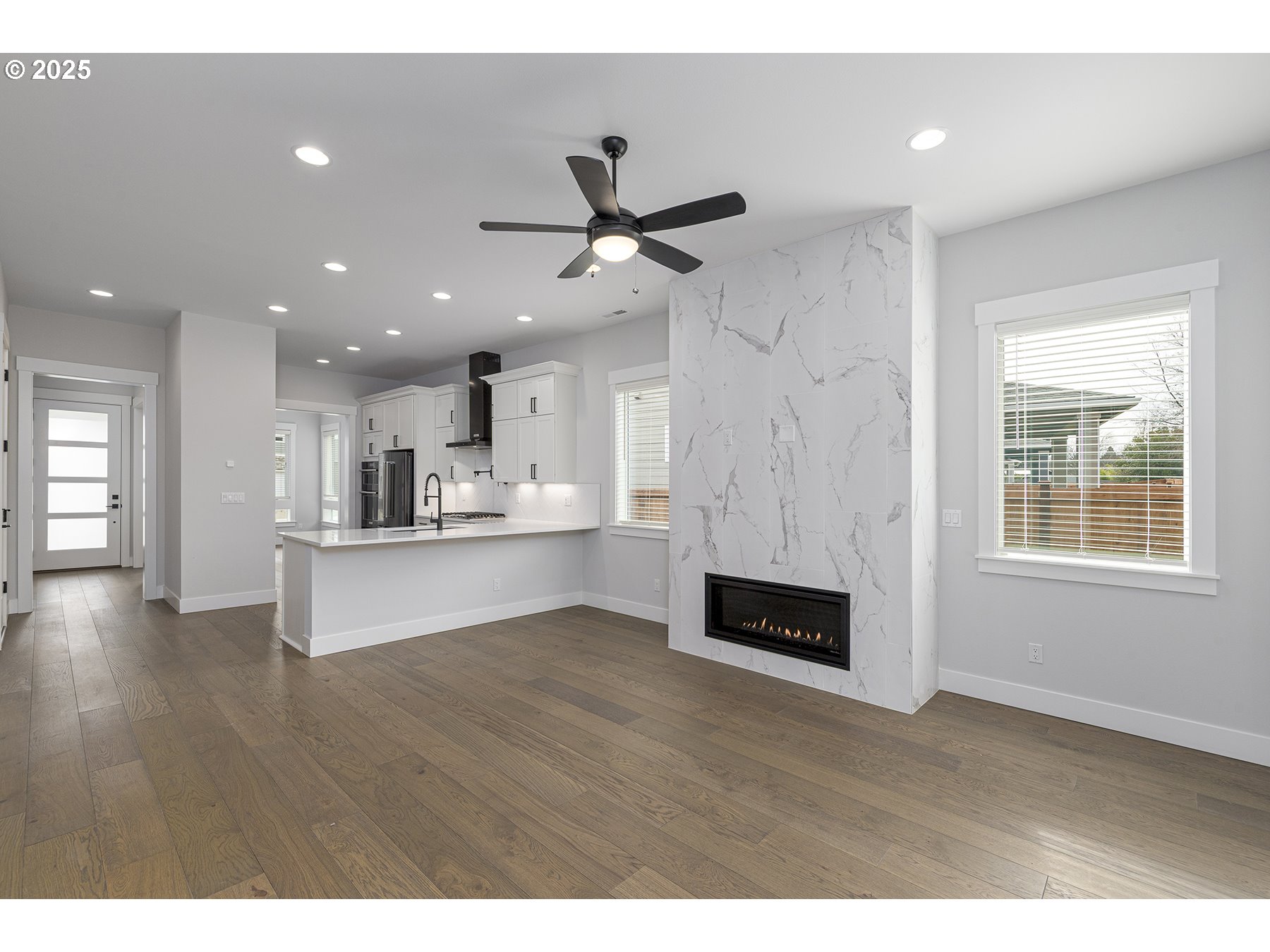 The Columbia floor plan is the perfect blend of modern design and functional living, providing an airy and open concept layout that encourages both relaxation and socialization. As you step through the front door, you are immediately welcomed by the open sightlines that lead from the foyer into the expansive family room. This central living space serves as the heart of the home, where high ceilings and large windows create a bright and inviting atmosphere. The family room flows effortlessly into the dining area and kitchen, ensuring that no matter where you are in the main living space, you feel connected to everything happening around you. The living room is centered around a beautiful gas fireplace that will make for a cozy oasis during the cold winters. The master bedroom is tucked away towards the back of the home with its own, separate hallway giving the room tons of privacy. It also features a massive walk-in closet that adds a significant amount of storage space to the home.This home has a large, fenced-in backyard that features an attached, covered patio that provides some much needed shade during the warm summer months. The front of the home also has a covered patio that makes the perfect nook to relax and enjoy the neighborhood views. The home is located just around the corner from the brand-new, private playground and beautiful shared green space that is great for kids and dogs to run around. The community also features paved sidewalks that are great for walking and biking. The community is built on two private streets that prevent through traffic and enhance the overall safety of the neighborhood.