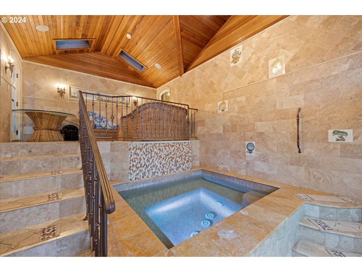 (503) 893-8874Iconic European Inspired, Oswego Lake Front estate, with every amenity. Unlike any other home on the Lake this one offers 2 separate ADU/apartments within the detached garage structure. Offering total accessibility with elevator access from the garage (and apartment) to the main house and another elevator within the home to each level. The incredibly private entrance feels as if you're entering into a French Villa with a casual elegance and multiple spaces for respite and entertaining. Gourmet, chef's kitchen with imported appliances, great room and formal dining that opens to the courtyard which looks as if it is out of a movie scene. Main level den/office, ensuite guest rooms, Owners Suite with soaring vaulted ceilings at the top of the turret, bonus/rec room with sound proof music room, lower level family room with full bar, 600 bottle wine cellar, gym, indoor/outdoor spa, Travertine sport court, lakeside outdoor kitchen, firepit and pool all on a level double lot. The attention to detail that went into the construction and level of finish work in this home is staggering, complete with a full earthquake retrofit when it underwent full renovation in 2008. This is truly one of Oswego Lake's most unique homes.