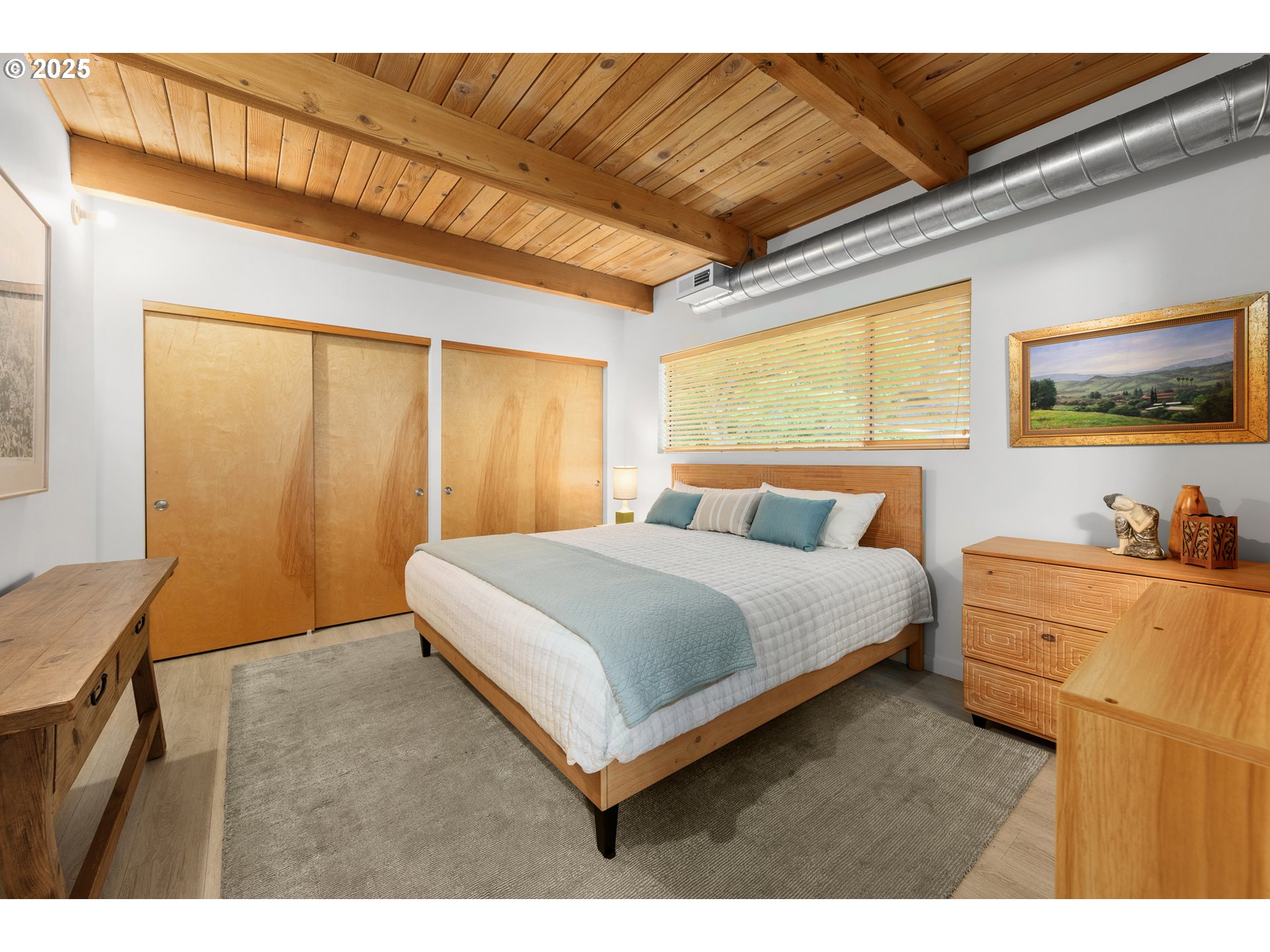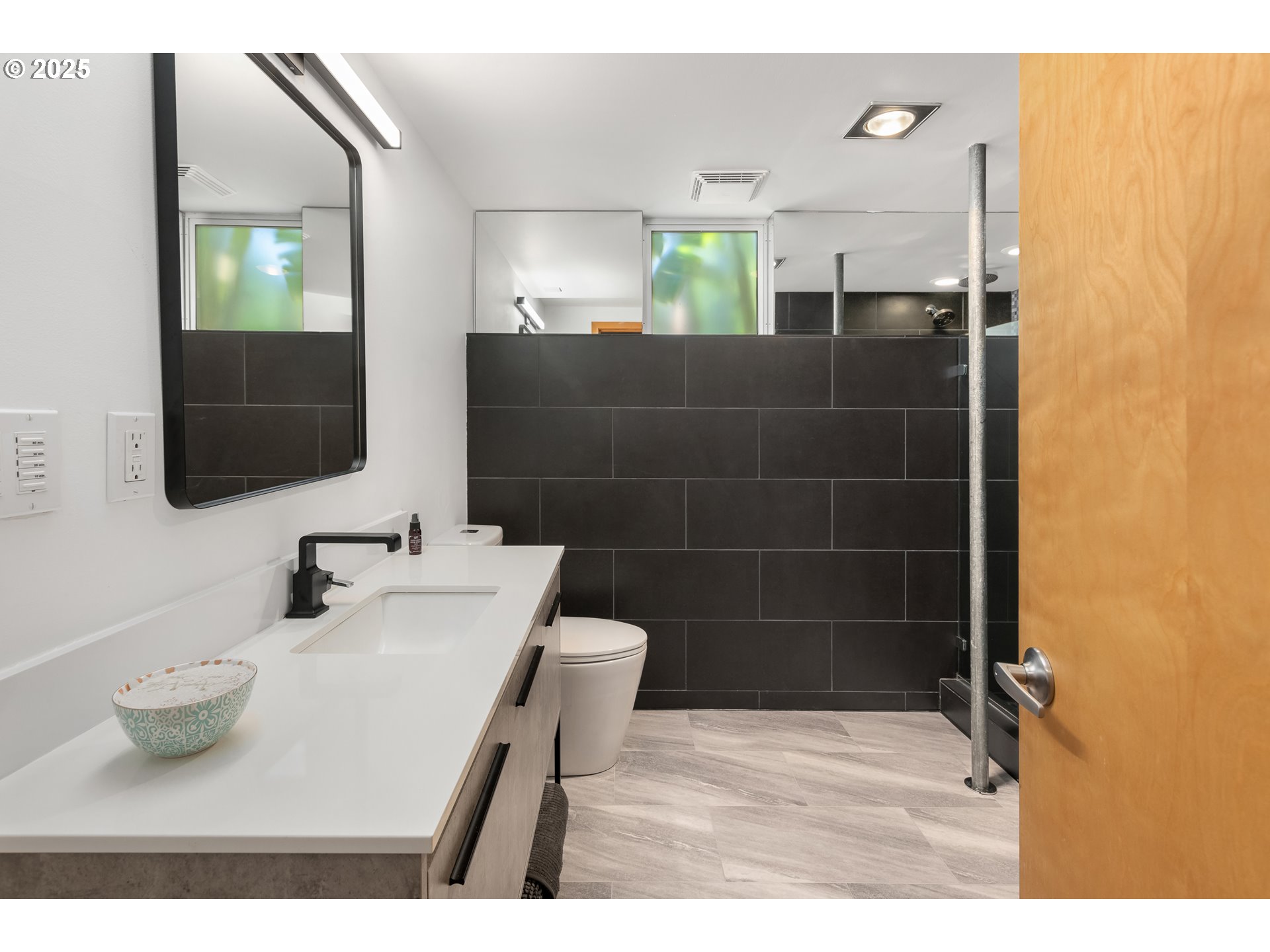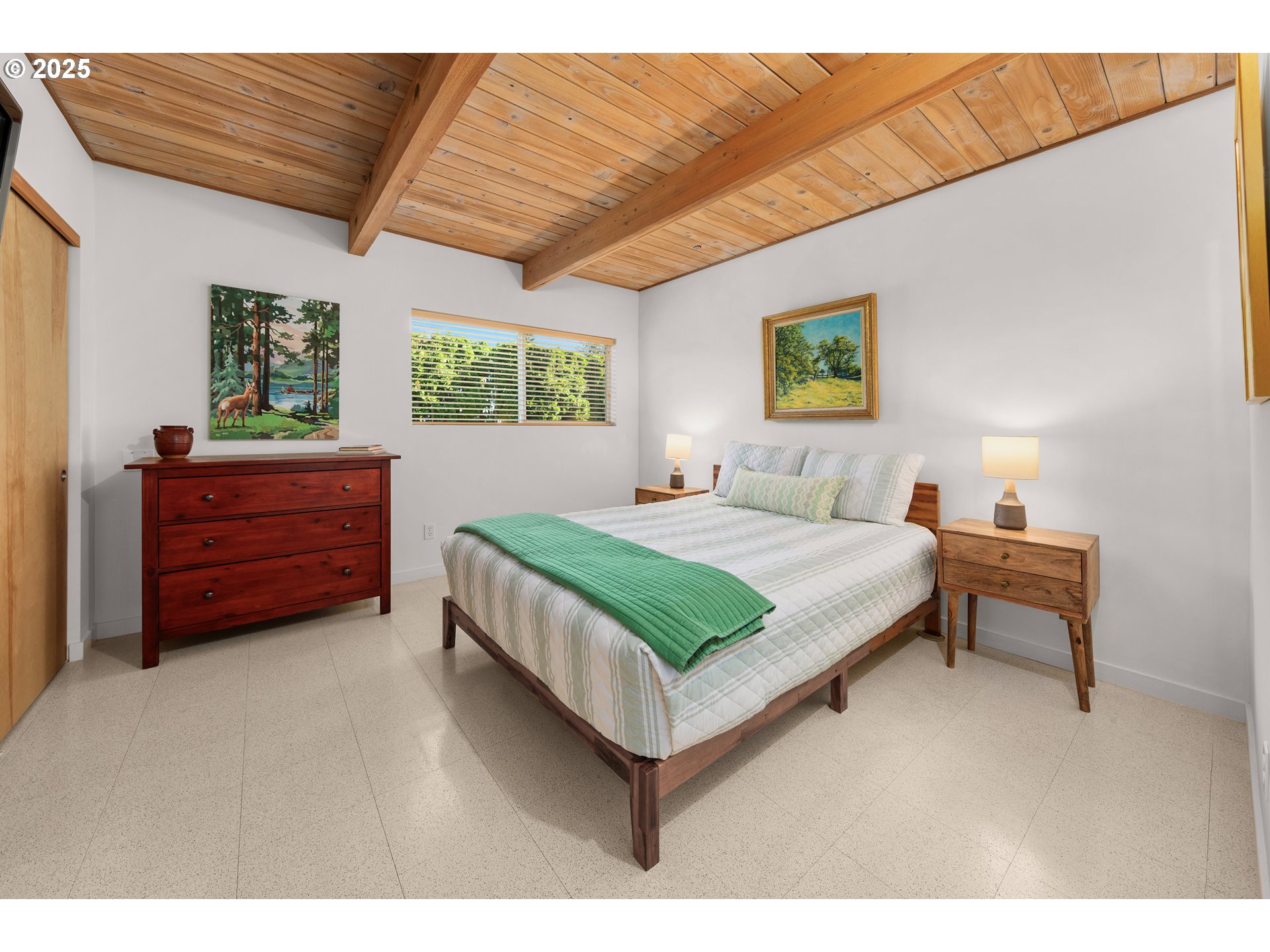 Private oasis with views in Lake Oswego! This updated mid-century modern gem offers both serenity and style. Just two short blocks from New Seasons and a few minutes from Lakeridge High School, parks, restaurants, and the new rec center, it's situated near the most desirable amenities in the city. Multiple options for home offices, making working from home a breeze. A four-foot-wide front door opens to a light-filled living space, where a wall of picture windows frame beautiful views of the hills to the north and Mt. St. Helens beyond. The open-concept main level highlights natural materials- an exposed wood ceiling, clean lines, and a striking nearly 17-foot waterfall island with 2 dishwashers. A glass door leads to a spacious deck overlooking the fully fenced, manicured backyard bordered by mature arborvitae. The setting is private, peaceful, and designed for both entertaining and relaxation. Two main-level bedrooms include en suite baths. The daylight basement offers a second living area with wet bar and backyard access. A large laundry room includes built-ins and a closet, while three separate storage areas ensure space for everything from garden tools to paddleboards. New roof, newer HVAC, updated baths, leased solar with low utilities, and more. Set on a lush 10,000 sq ft lot in a prime location, within 5 minutes of Lake Oswego Recreation and Aquatics Center and LO Public Golf Course (0.9 miles), Lakeridge High School (1.3 miles), Luscher Farm (1.5 miles), Hazelia Field with dog park (1.1 miles), George Rogers Park and the Willamette River (1.1 miles), Aspen Park (0.1 miles) Freepons Park (0.4 miles), and close to a hub of shops and cafes. Swanky and cool, it offers the benefits of condo-style living without the fees.