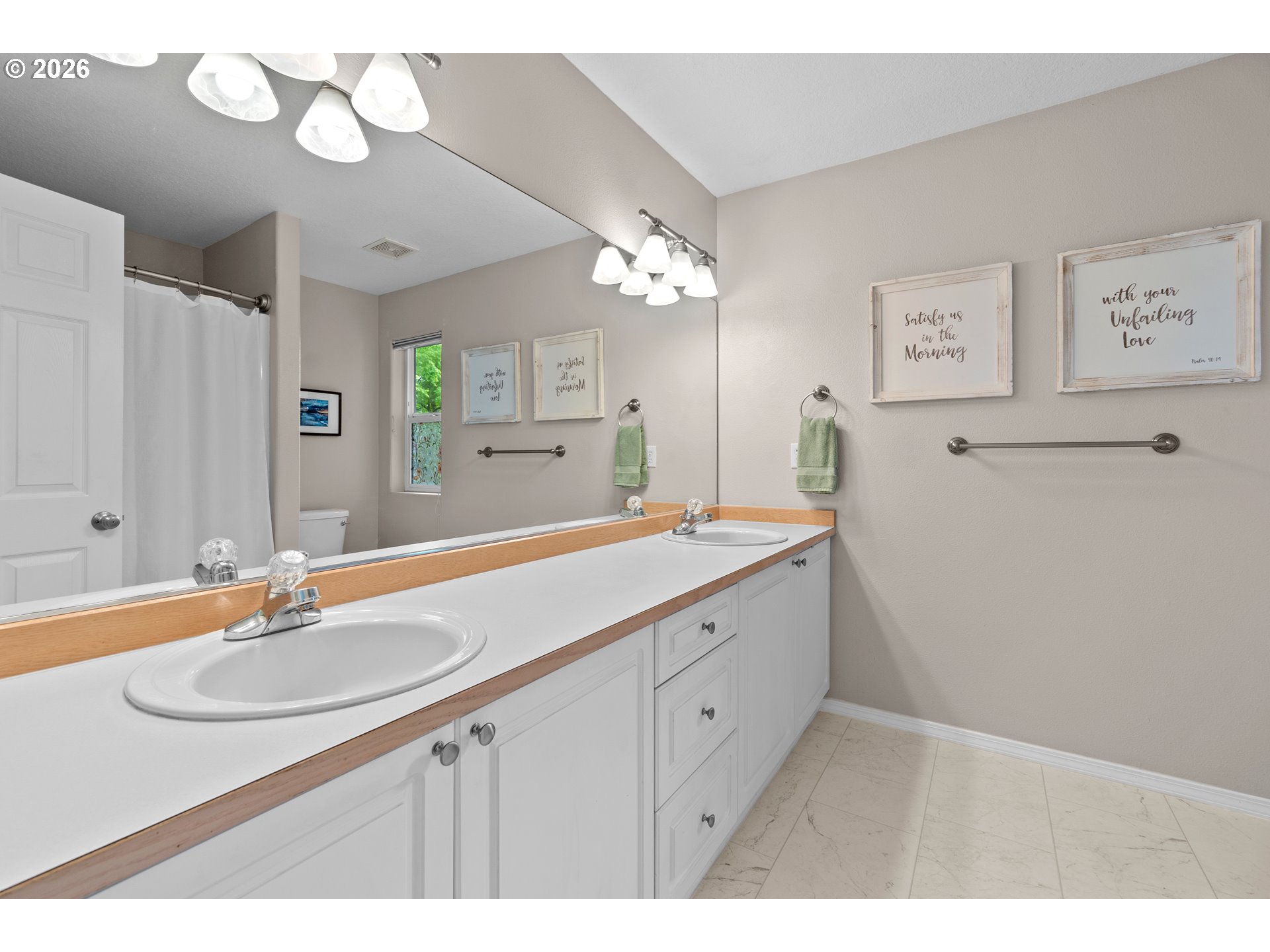 Charming Clackamas home with bonus loft and a bright, functional floor plan. This 3-bed, 2.5-bath property sits on a beautifully landscaped lot and offers warm, inviting living spaces throughout. The formal living room features a gas fireplace and opens to the dining area and an airy kitchen with bar seating, pantry storage, and a sunny garden window overlooking the yard. Upstairs, the family room provides flexible bonus space, along with the private primary suite featuring an extra-deep closet. Two additional bedrooms and a full bath complete the upper level. The fully fenced backyard is designed for both play and relaxation, with a large deck, lawn area, raised garden beds, and mature seasonal landscaping. A two-car garage plus extra driveway parking for off street guest parking. Located just moments from Sunnyside Rd, shopping, and only two blocks from Ashley Meadows Park, this home offers comfort, flexibility, and an excellent Clackamas/Happy Valley location. See our virtual tour links for more information!