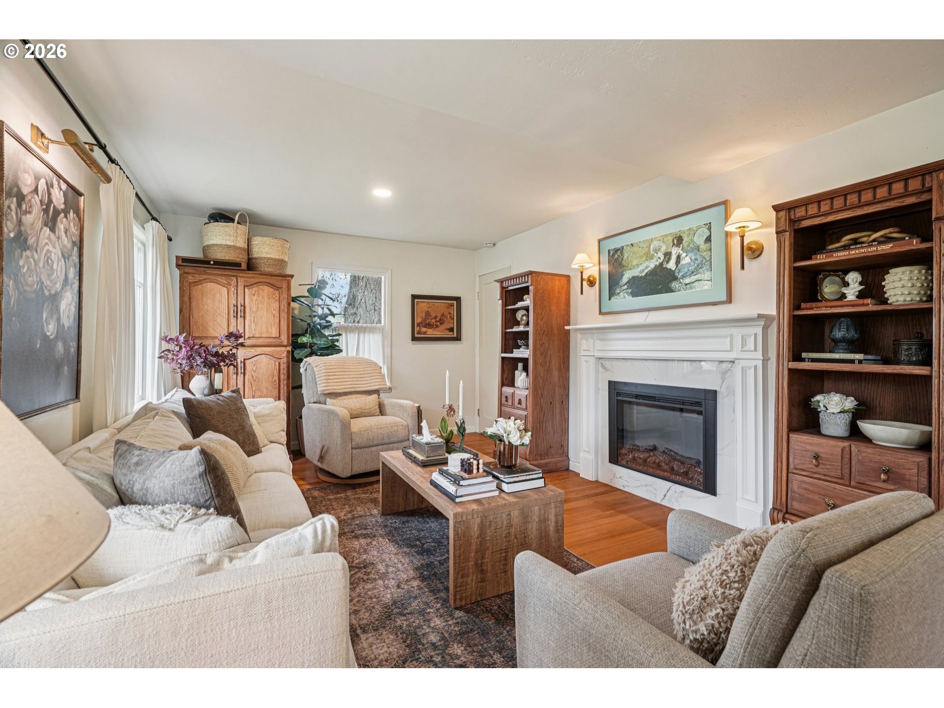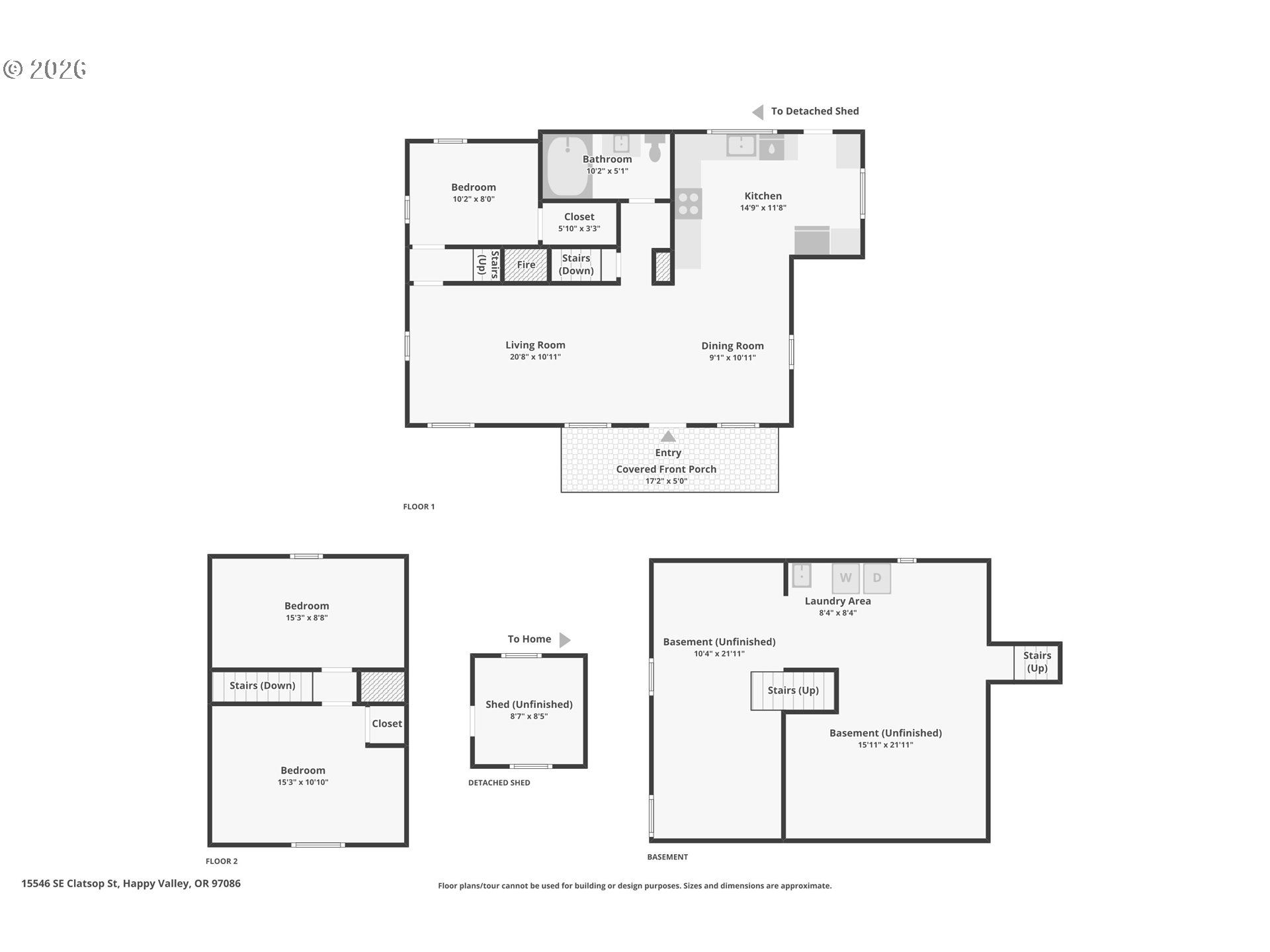 Welcome to 15546 SE Clatsop Street, a charming and well maintained home nestled in a quiet, desirable neighborhood. Offering approximately 1,200 square feet of finished living space plus an additional 700 square feet of unfinished basement, this home provides both comfort today and room to grow tomorrow. Step inside to a bright and inviting layout featuring beautiful hardwood floors and a cozy electric fireplace—perfect for relaxing evenings at home. The remodeled bathroom adds a modern touch, while the kitchen shines with sleek quartz countertops that combine style and durability. The primary bedroom has been thoughtfully enclosed from the stairway, creating a true private bedroom space for added comfort and functionality. The spacious lot spans approximately 0.45 acres, giving you plenty of room to enjoy the outdoors. Whether you're gardening, entertaining, or simply unwinding, the expansive yard offers endless possibilities, complete with a convenient tool shed for extra storage. Located close to parks, shopping, dining, and major commuter routes, this property blends peaceful living with everyday convenience. A fantastic opportunity to own a home with character, updates, and space to make your own. Outside, pride of ownership shines through with mature landscaping, fully fenced backyard, a gravel driveway, additional parking area and a quintessential cottage-style presence that enhances the home’s curb appeal. Don't miss out on this rare opportunity! Mortgage savings may be available for buyers of this listing.