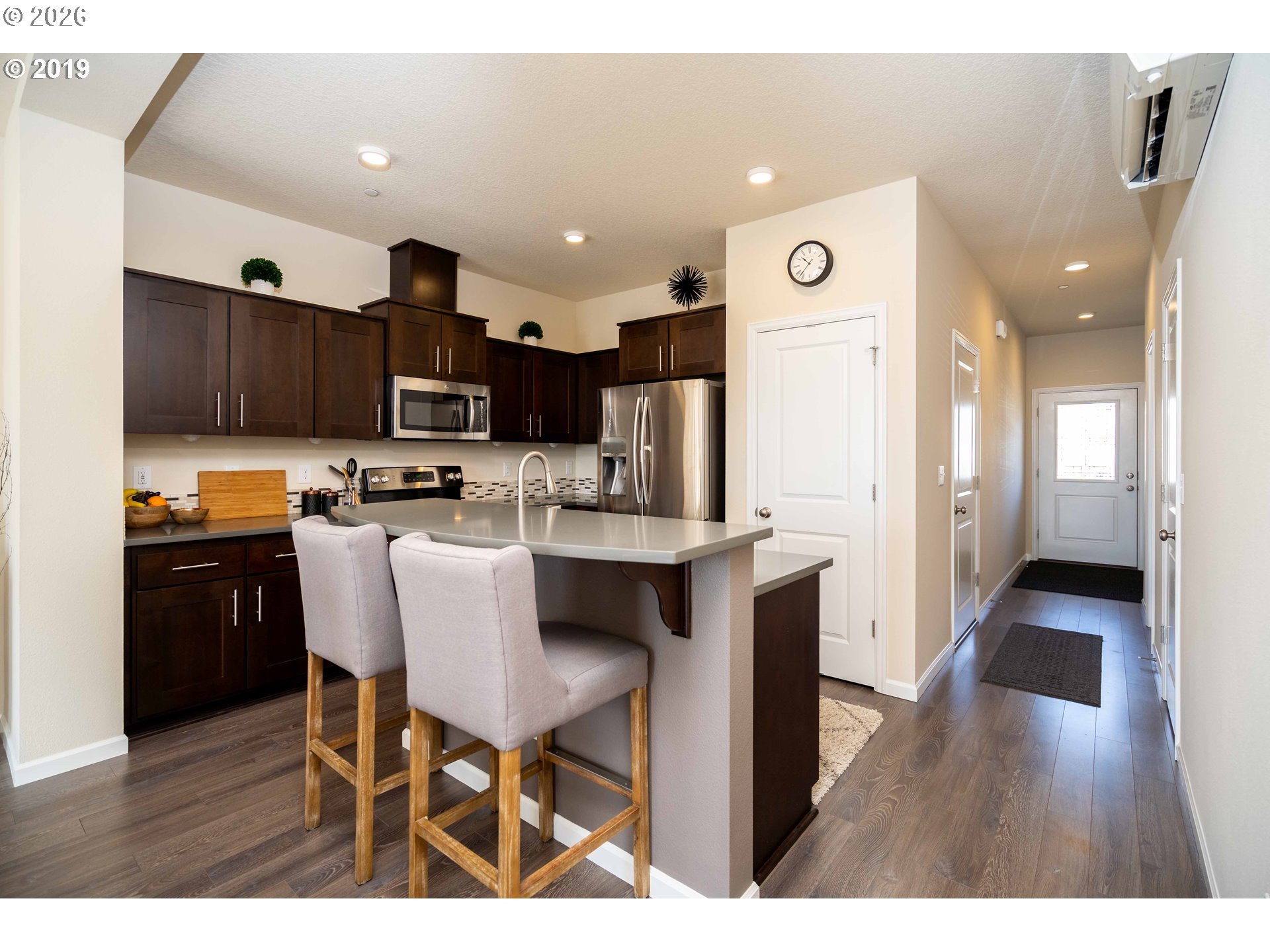 Great location! 5 minutes to 1-205.One block from restaurants, shopping. In Highly rated North Clackamas School district. Beautiful 3 story, 3BD/2.5BA townhome w/large bonus room. Modern updated kitchen w/quartz countertops, Island, SS appliances, pantry, gas fireplace, tankless water heater. Balcony view of mountains. Welcome Home!