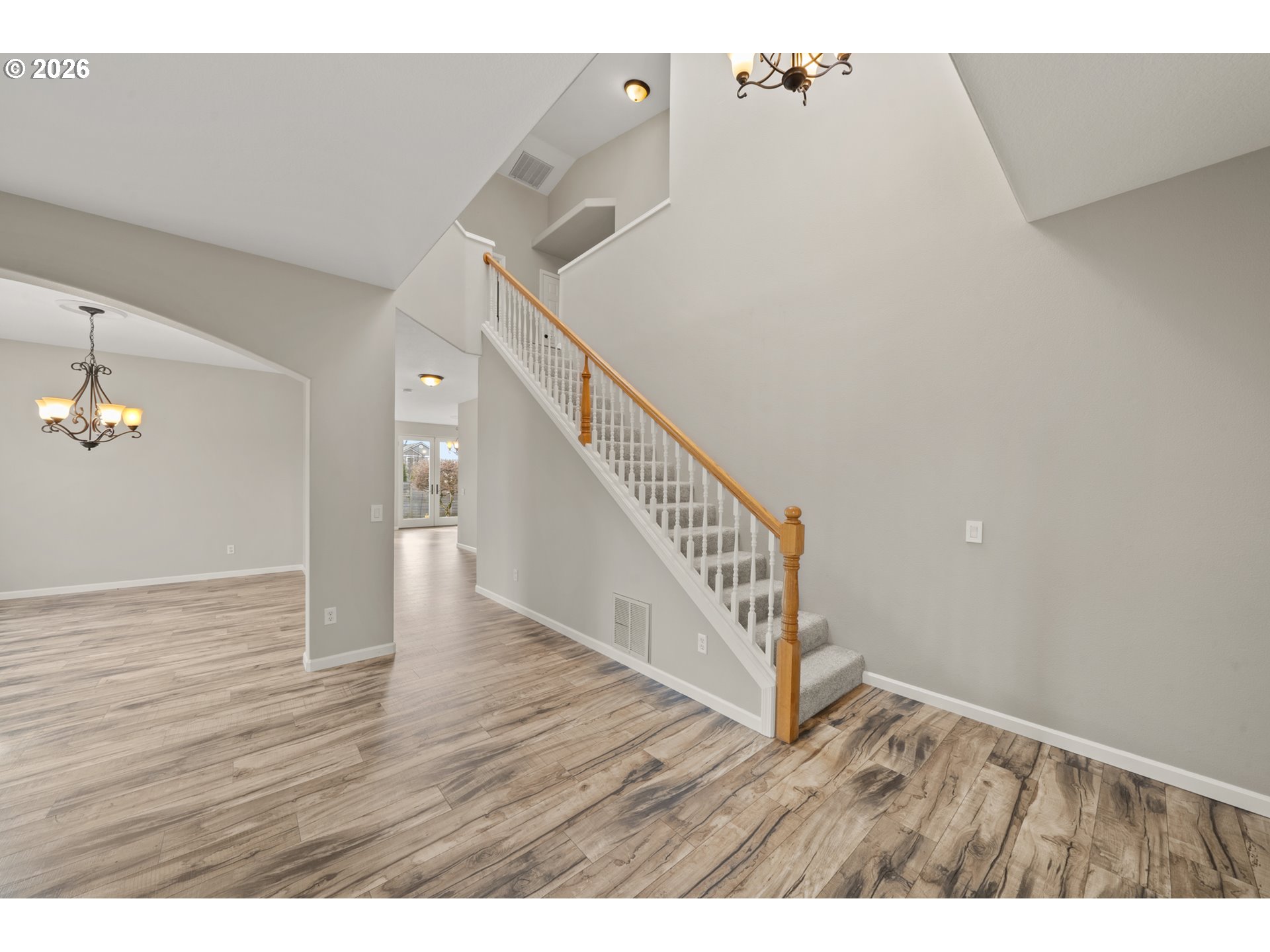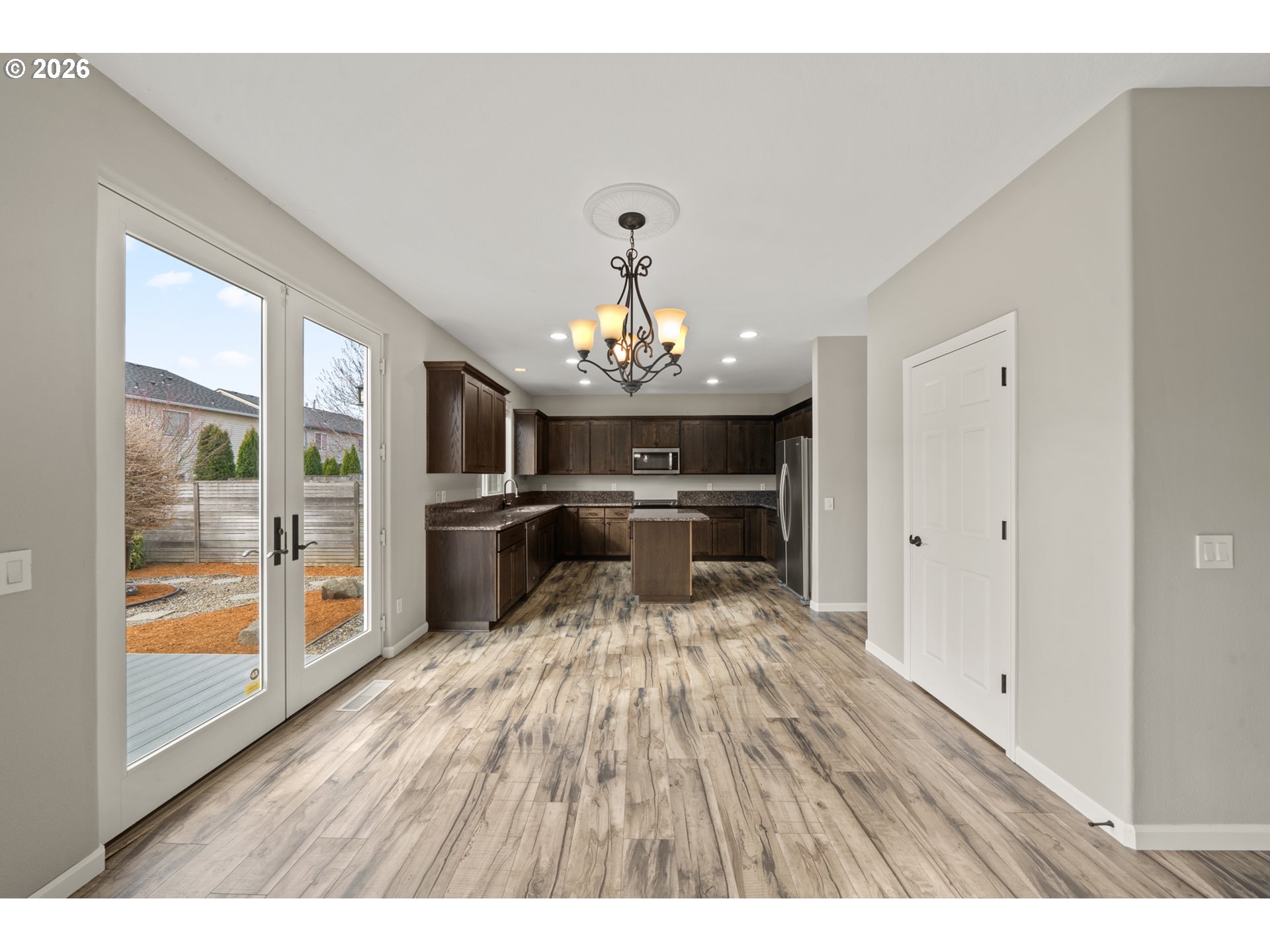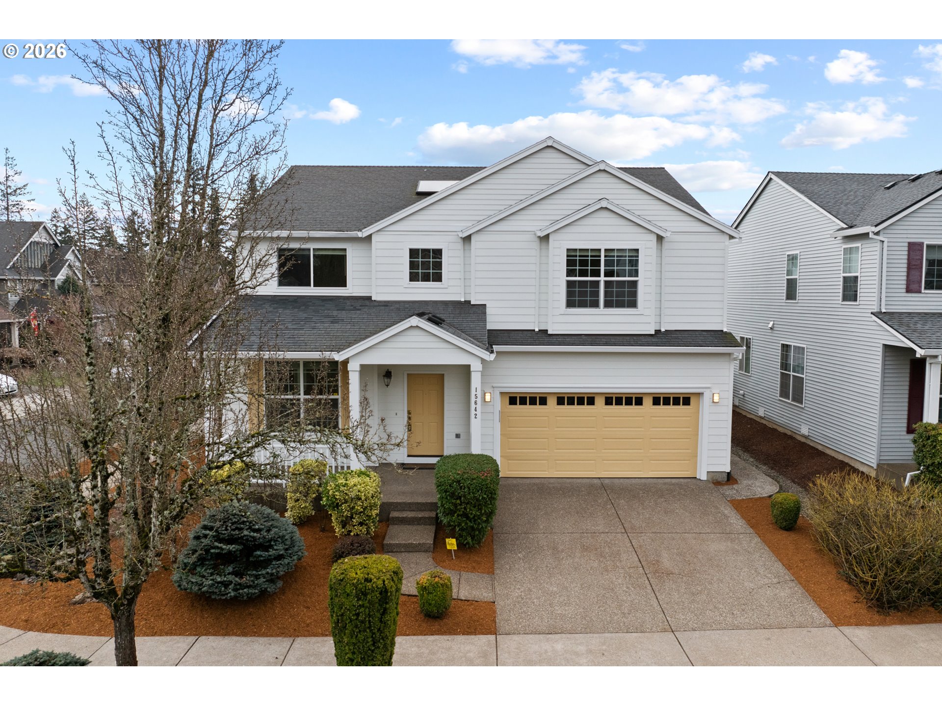 Experience modern suburban luxury in this meticulously maintained corner lot home in the heart of Rock Creek. New flooring throughout flows through a light-filled and open-concept floor plan centered around a sleek gas fireplace and a chef's kitchen. Recent upgrades include rich espresso cabinetry, granite countertops, stainless steel appliances, and a large center island with extra seating. Upstairs, the primary suite serves as a true retreat with an ensuite bath and newly redesigned closet offering high-end organization and style. French doors open to a dedicated separate office, perfect for a quiet workspace or flex space. The private, fully fenced outdoor oasis features a composite deck and a low-maintenance, professionally landscaped yard. Ideally situated just steps from Oregon Trail Elementary, the Happy Valley Station food carts, and Scouters Mountain Nature Park, this is a sophisticated, move-in-ready lifestyle in one of the area's most sought-after locations.