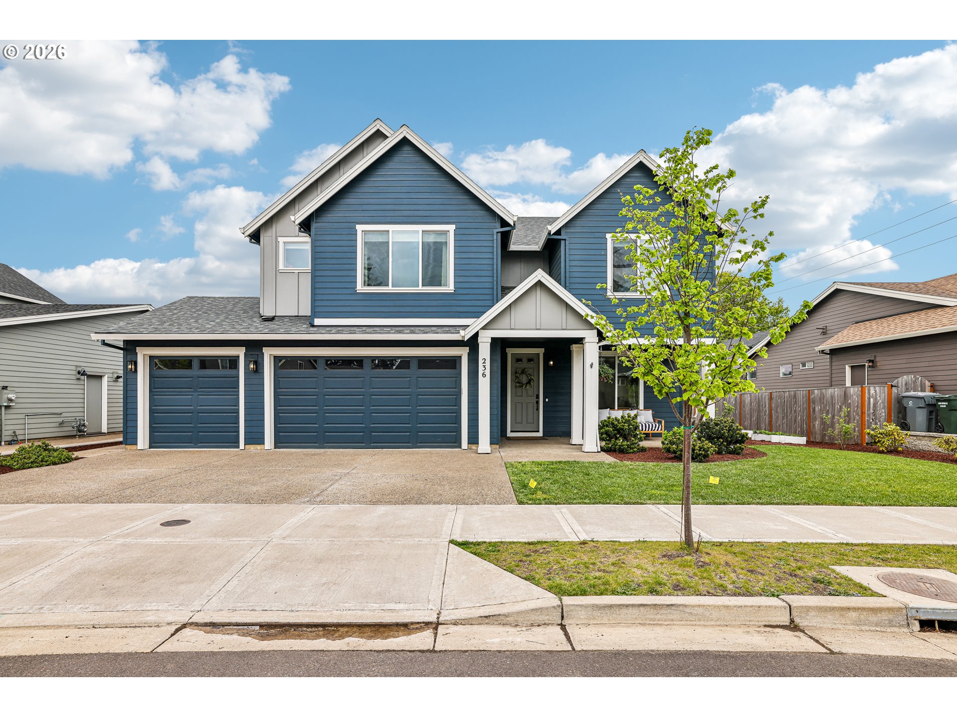 Beautiful single-level 3-bedroom home with an oversized 3-car garage, perfectly positioned at the end of a cul-de-sac! The popular Amethyst plan offers a bright, open-concept layout with 9-ft ceilings and a spacious great room anchored by a tile-surround gas fireplace—ideal for both everyday living and entertaining.The kitchen shines with stainless steel appliances, quartz countertops, and seamless flow into the dining and living spaces. The inviting owner’s suite features a private bath and a generous walk-in closet, creating a comfortable retreat.Enjoy the curb appeal of a modern farmhouse exterior, plus the convenience of front and back landscaping already completed. An oversized driveway provides plenty of room for parking, toys, or extra storage. Smart home features add modern functionality, and best of all—no HOA.