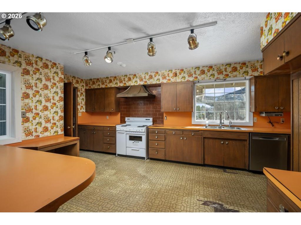 Dishwasher, FreeStandingRange, PlumbedForIceMaker, RangeHood, SolidSurfaceCountertop