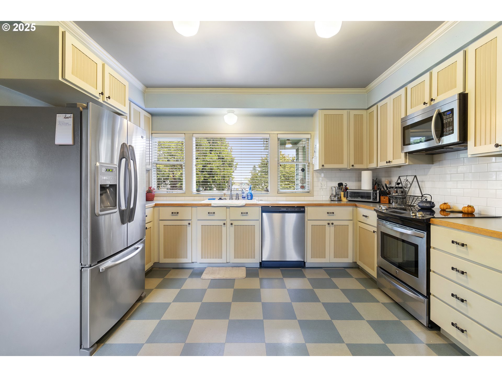 Step into timeless character and country charm with this beautiful 1900-built farmhouse, offering the perfect blend of historic detail and modern updates. Situated privately on a large, level .4-acre lot, this inviting 3-bedroom, 2-bath home sits back from the road, with a peek-a-boo view of Mt. Hood from the kitchen windows framed by tall old-growth trees. Inside, you’ll find original built-ins indicative to the era with window bench seats maximizing natural light and cozy seating, fir wood floors and beamed ceilings. The updated country kitchen and dining area blend rustic charm with modern convenience, offering stainless steel appliances, pantry, and upgraded electrical and plumbing. A laundry room with washer/dryer hookups connects to an enclosed sun porch with beautiful windows, extra storage, and space for indoor plants — plus a pet cubby door for furry friends. The main-level bath includes a claw-foot tub, corner sink, and original built-ins, while the upstairs bathroom has been remodeled with a skylight and subway-tiled walk-in shower. Additional space includes a partially finished basement and a detached shop, ideal for storage, hobbies, or projects. Outdoor living shines with raised garden beds, trellises draped in mature wisteria, stone laid patio with a firepit, and an above-ground pool (included). The U-shaped driveway with parking area provides easy access and ample space for RVs, boats, or multiple vehicles. The fully fenced yard offers privacy, open space, and garden potential. This 1900 farmhouse combines timeless character with thoughtful updates — a rare find that feels like home. Sold As-Is. Developer's packet in documents. Middle-Housing opportunity? Buyer to do due diligence.