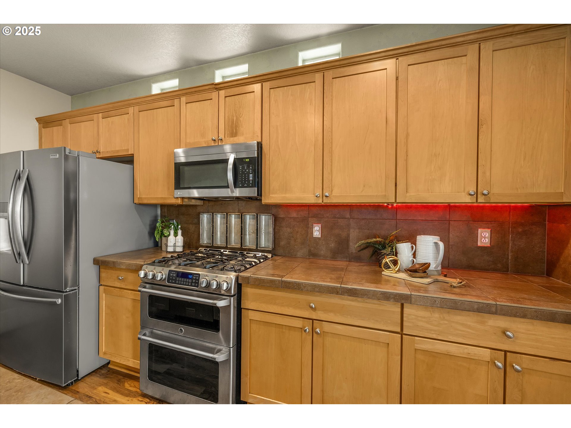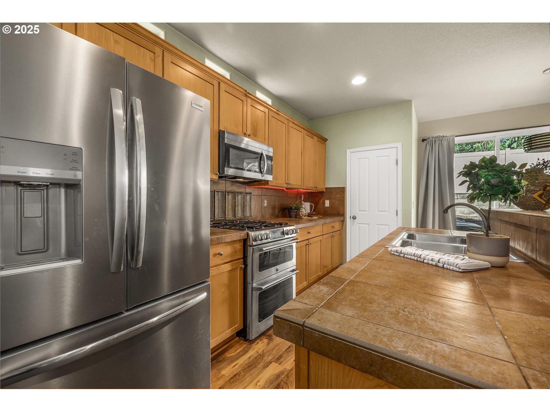 Dishwasher, FreeStandingGasRange, FreeStandingRefrigerator, GasAppliances, Island, Microwave, Pantry, Tile