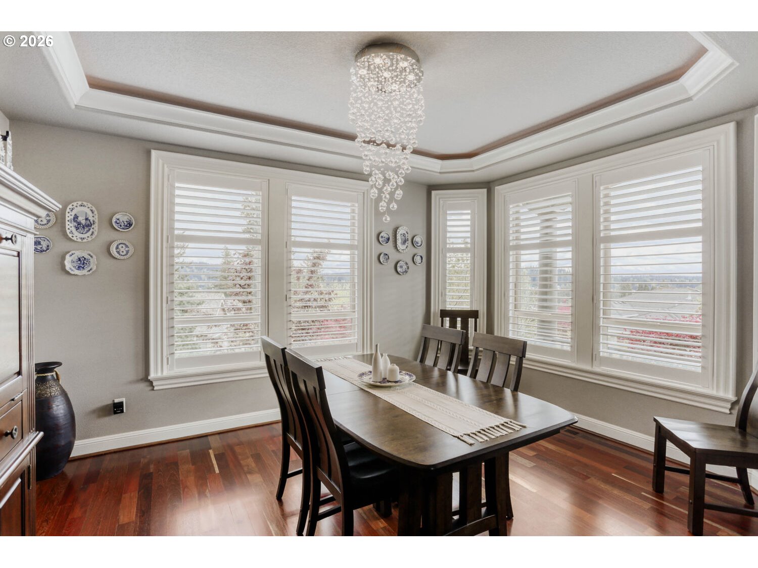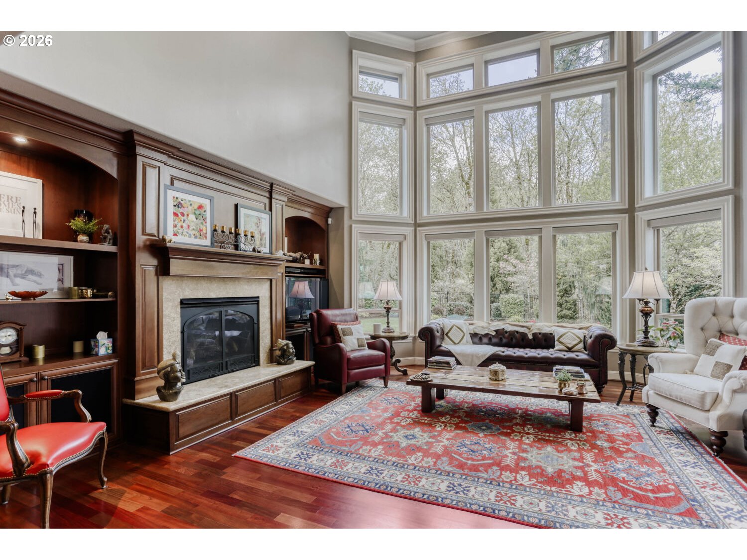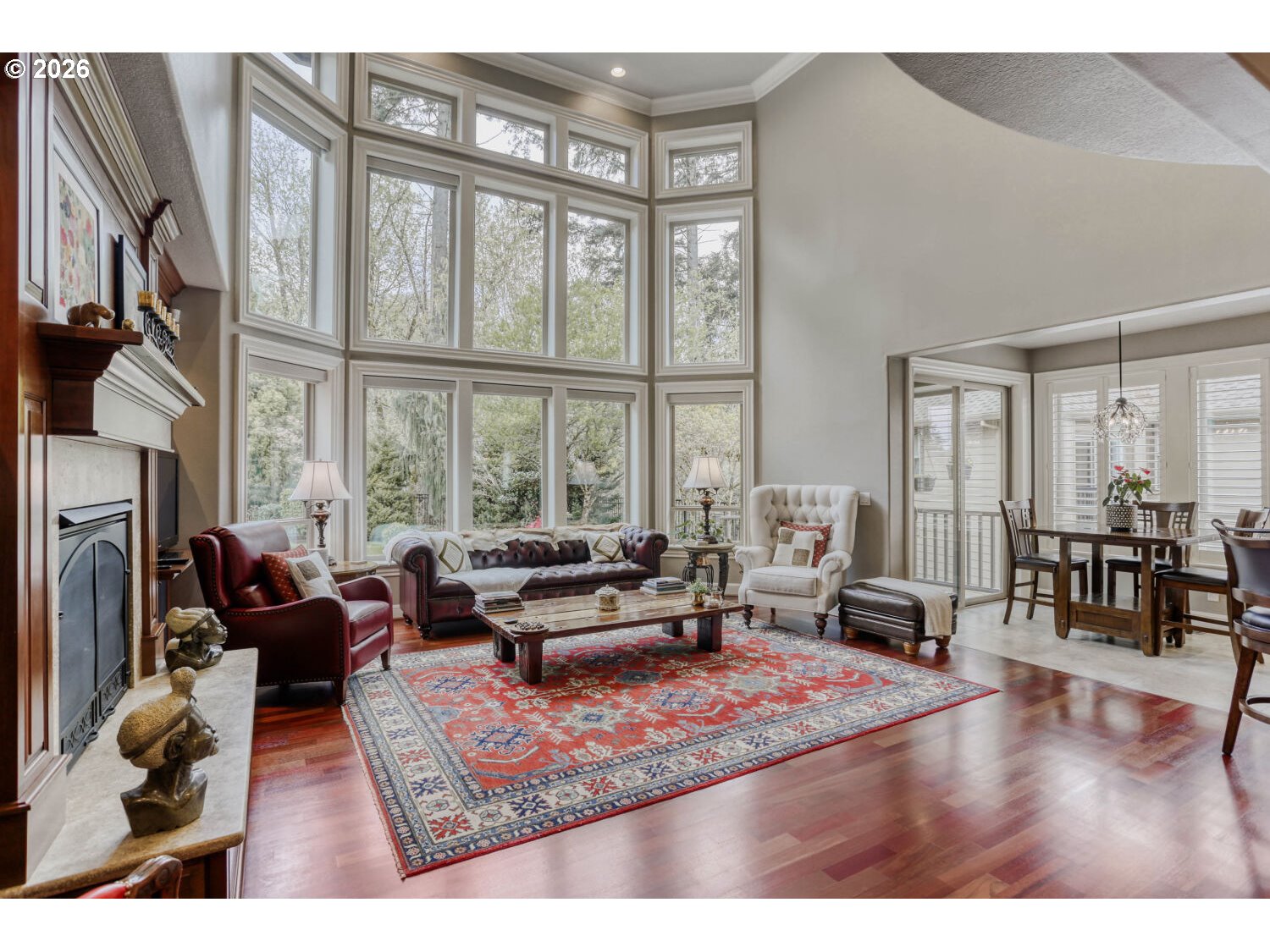 No sign on the property. Tucked against a private wooded greenbelt in the heart of Happy Valley, this Street of Dreams award-winning custom home is a rare blend of craftsmanship, design, and quiet prestige. From the moment you arrive, the hand-crafted entry and timeless architecture set the tone; this is a home built without compromise.Inside, soaring ceilings and rich Brazilian Cherry floors create a warm yet refined backdrop. Natural light pours through expansive windows, framing serene territorial views and drawing your eye outdoors. Mornings begin on the covered porch with Mt. Hood in the distance; evenings settle into the peaceful privacy of your own backyard retreat.The gourmet kitchen is designed for both everyday living and elevated entertaining, featuring premium appliances, a generous island, butler’s pantry, and seamless flow to formal and casual dining spaces. Every detail from custom millwork to built-in cabinetry reflects a level of finish rarely found in this price range.The main-level primary suite offers a true escape, with a spa inspired bath, walk-in closet, and direct access to the outdoor living space. Upstairs, spacious bedrooms provide comfort and flexibility, while a main level den offers the perfect setting for work or quiet reflection.Thoughtful features like heated tile floors, central A/C, and a 3-car garage enhance everyday ease, while the location places you just minutes from top amenities, dining, and recreation.This is more than a home, it’s a statement of arrival, where design, setting, and lifestyle come together effortlessly.