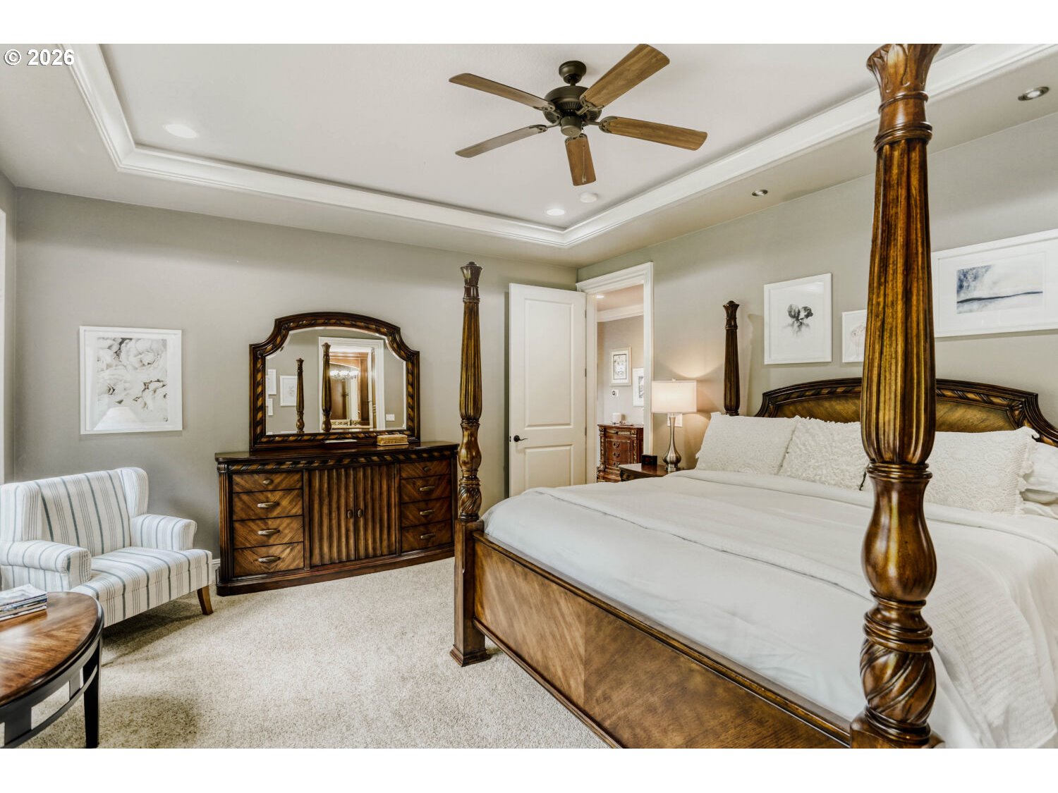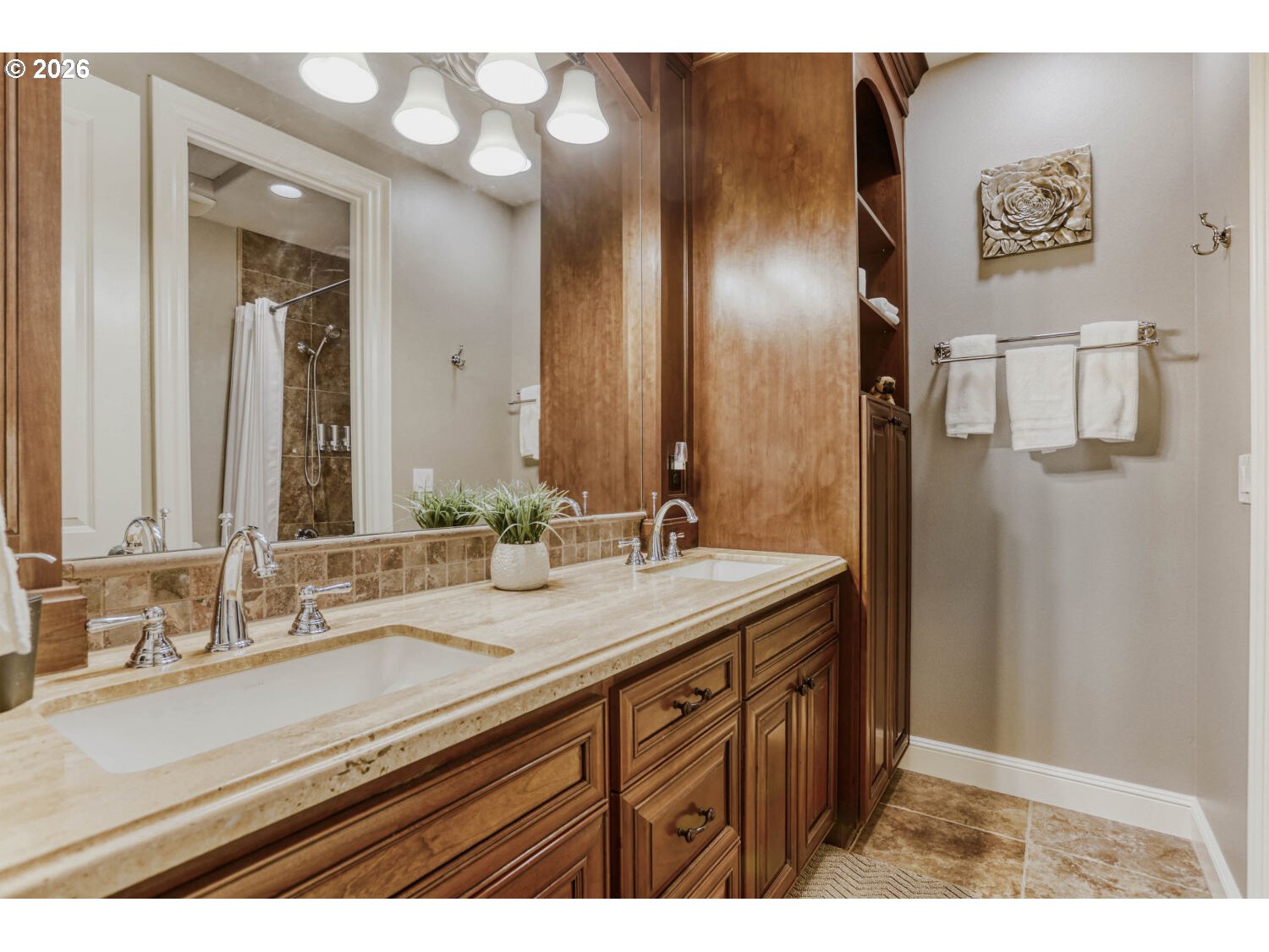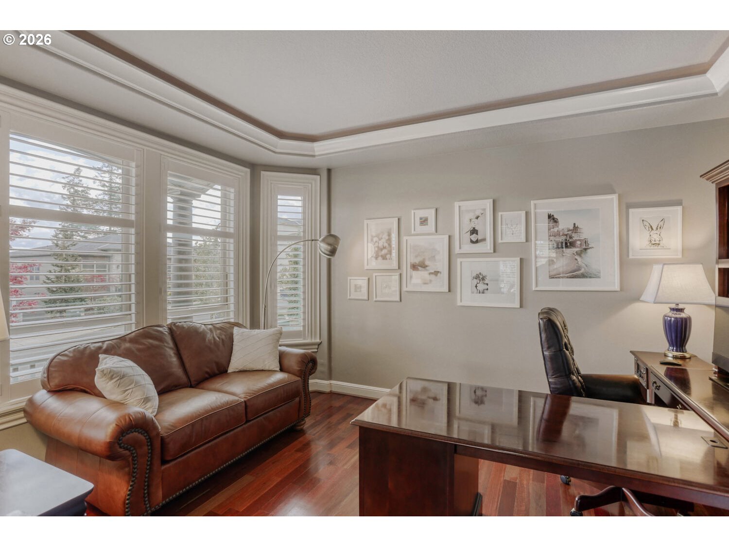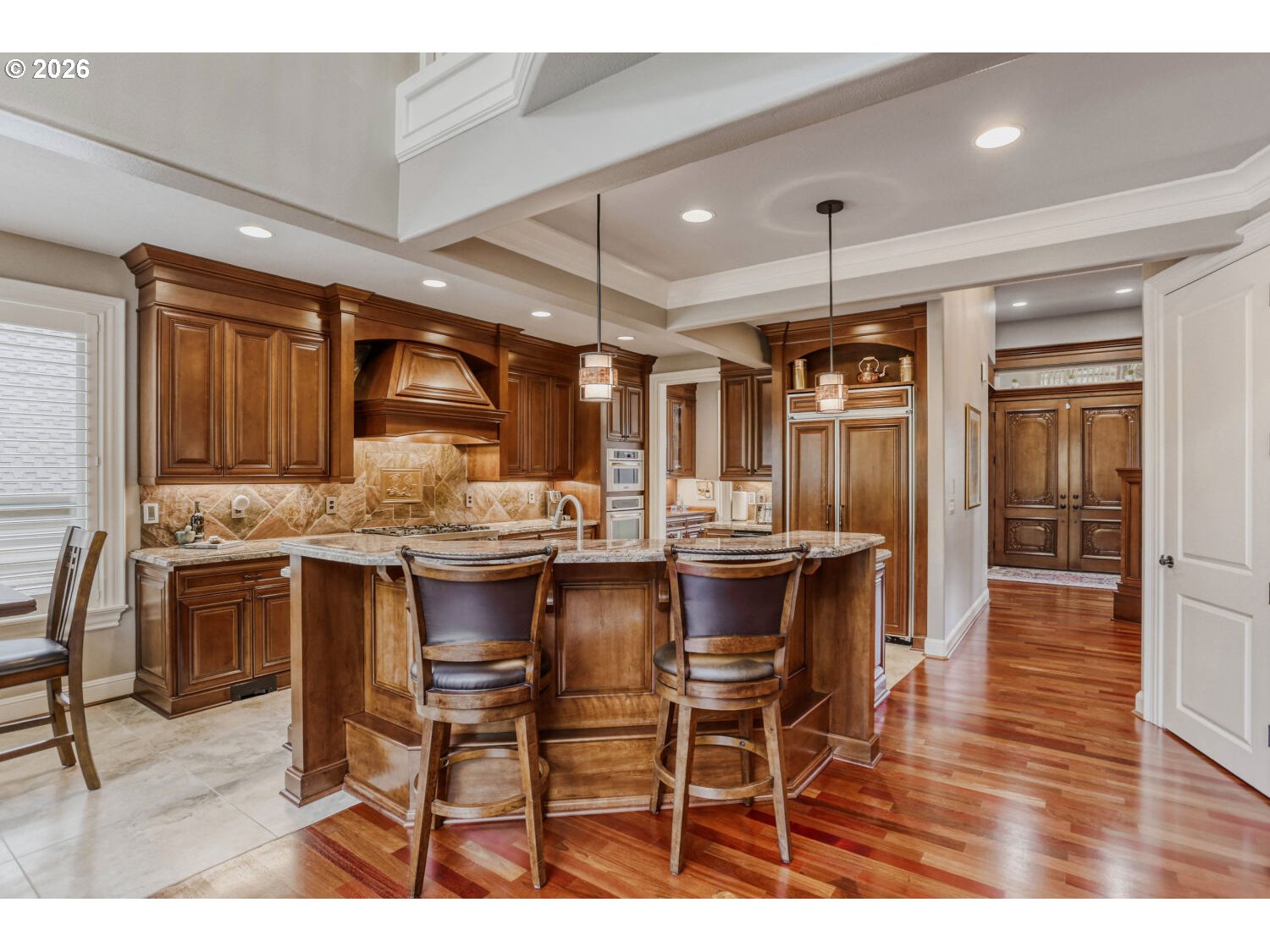 No sign on the property. Tucked against a private wooded greenbelt in the heart of Happy Valley, this Street of Dreams award-winning custom home is a rare blend of craftsmanship, design, and quiet prestige. From the moment you arrive, the hand-crafted entry and timeless architecture set the tone; this is a home built without compromise.Inside, soaring ceilings and rich Brazilian Cherry floors create a warm yet refined backdrop. Natural light pours through expansive windows, framing serene territorial views and drawing your eye outdoors. Mornings begin on the covered porch with Mt. Hood in the distance; evenings settle into the peaceful privacy of your own backyard retreat.The gourmet kitchen is designed for both everyday living and elevated entertaining, featuring premium appliances, a generous island, butler’s pantry, and seamless flow to formal and casual dining spaces. Every detail from custom millwork to built-in cabinetry reflects a level of finish rarely found in this price range.The main-level primary suite offers a true escape, with a spa inspired bath, walk-in closet, and direct access to the outdoor living space. Upstairs, spacious bedrooms provide comfort and flexibility, while a main level den offers the perfect setting for work or quiet reflection.Thoughtful features like heated tile floors, central A/C, and a 3-car garage enhance everyday ease, while the location places you just minutes from top amenities, dining, and recreation.This is more than a home, it’s a statement of arrival, where design, setting, and lifestyle come together effortlessly.