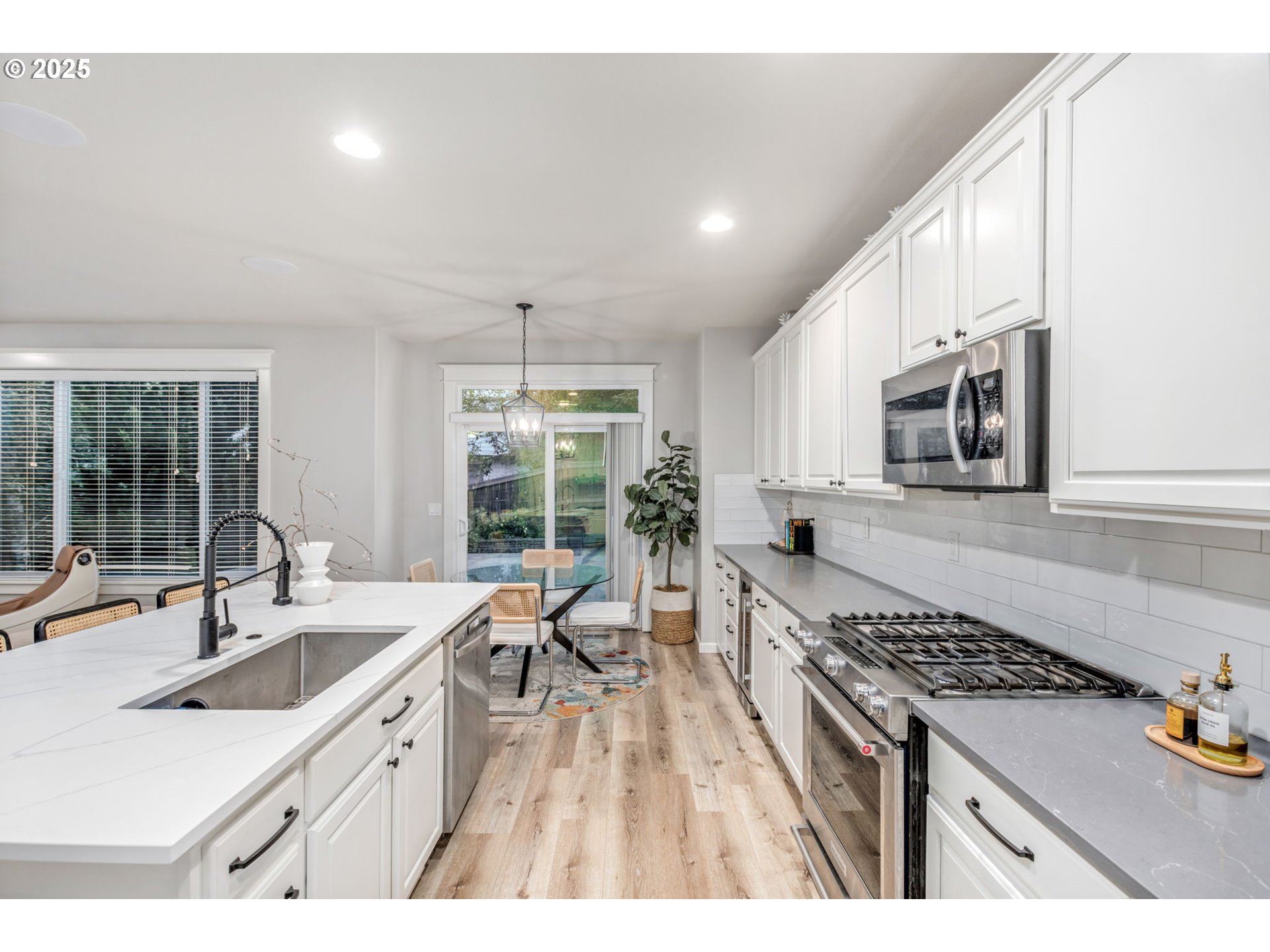 Step into this wonderfully bright and modernized home in the heart of Happy Valley. Don't miss out on the walking trails that leads to a playground directly behind this rare lot! The open and spacious floor plan is bathed in natural light, offering ample room for your family's needs. With four generous bedrooms, both family and living rooms, a formal dining area, and a versatile loft, there is plenty of space to accommodate everyone. The primary bedroom boasts a huge walk-in closet and an en-suite bathroom, providing a private retreat within your home. The loft area is an ideal space for a cozy sitting area, a reading nook, or a home office. The beautiful open kitchen is a chef's dream, featuring stunning quartz countertops, a pantry, a wine fridge, gas appliances, and a charming breakfast nook with slider access to the backyard. Step outside to the large patio in the fenced backyard, perfect for entertaining or relaxing. Located within walking distance from the Happy Valley Town Center, you'll have easy access to shopping and dining options. 5 mins from Mt. Talbert/Scouters Mountain/Hidden Falls Nature Park, 10 mins to Eagles Landing/Sah-Hah-Lee Golf Course & 20 mins to PDX! A/C installed & EV Charging ready! See floorplan & 3D Matterport tour uploaded! OPEN SAT 12/06 (1-4PM)