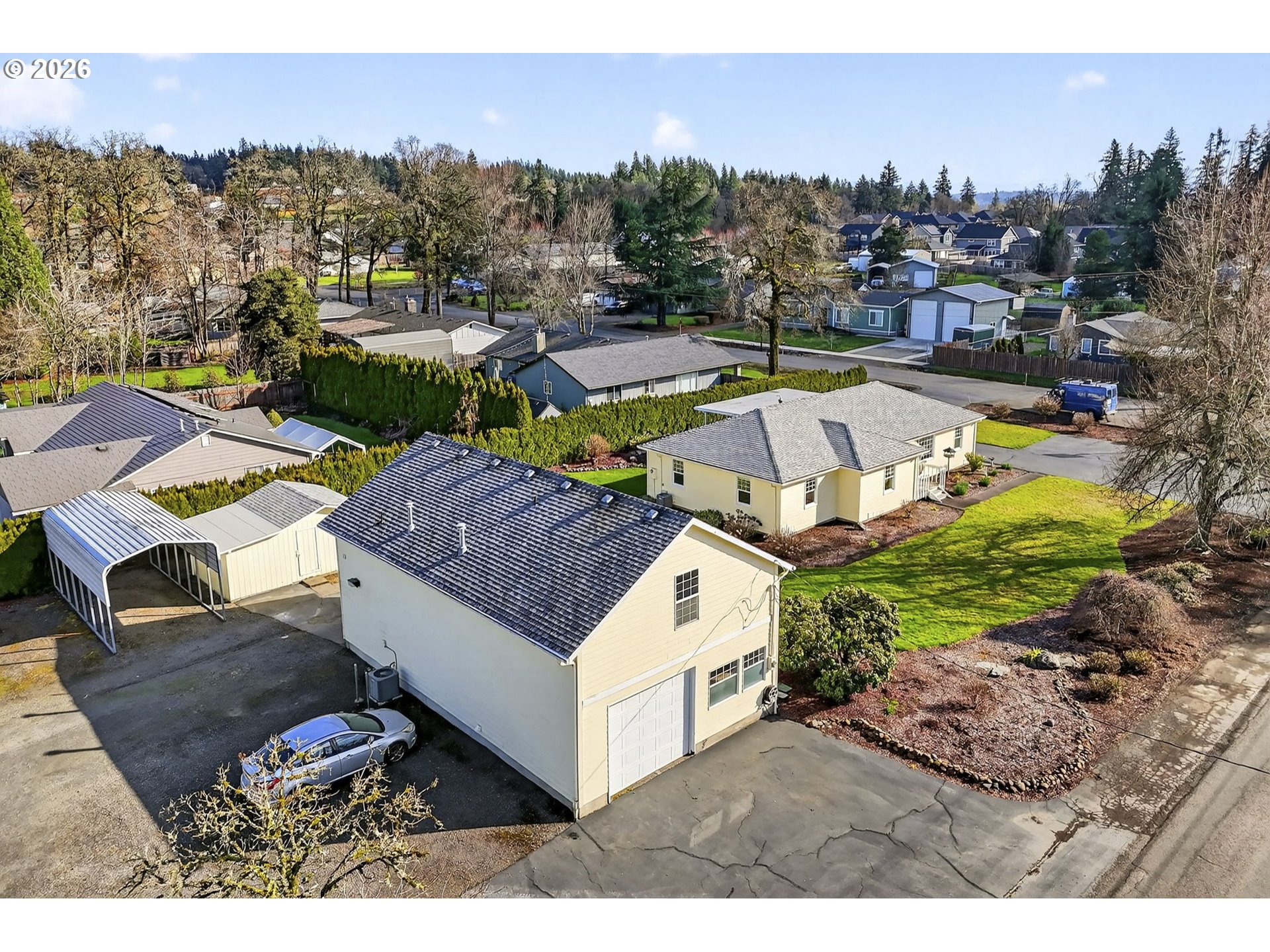 (503) 893-8874Charming Home with Income-Generating ADU, Huge Shop, and Room for All Your Toys!Looking for space, flexibility, and extra income potential? This charming property truly has it all! The main house. 1567 SqFt features 3 large bedrooms and 1.5 baths, plus a comfortable living room and a formal dining room perfect for family dinners or gatherings with friends. Located on a .48-acre corner lot, this property offers endless possibilities. There’s a massive 24x42 shop with garage doors on both sides—perfect for projects, storage, or hobbies. Above the shop, you’ll find a 1,008 sqft ADU, 1 bedroom and 1 bathroom, ideal for guests, extended family, or rental income, complete with a new furnace and AC (installed in 2024) and a tankless hot water heater.Bring your RV, boat, or any other toys—there’s plenty of parking thanks to the spacious driveway and carport, plus designated RV parking. A large storage shed adds even more convenience. This property offers the perfect blend of comfort, function, and opportunity—all on one beautiful lot!