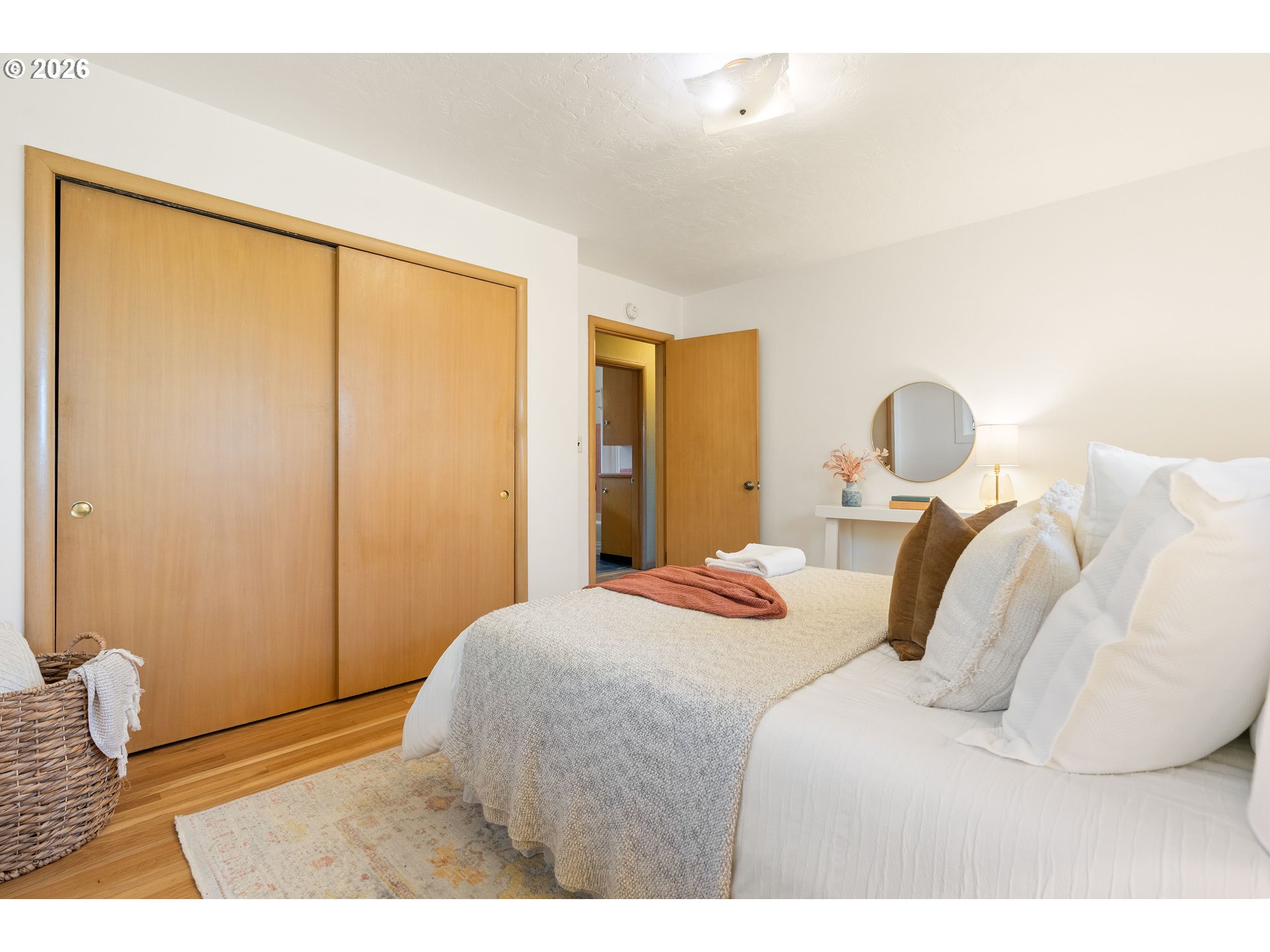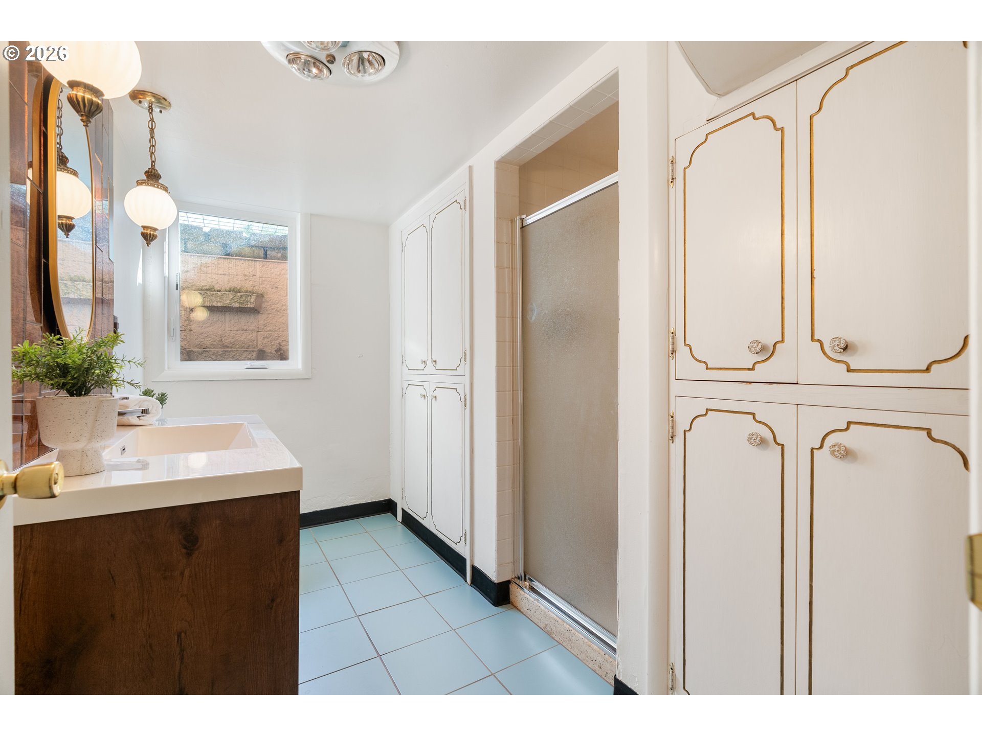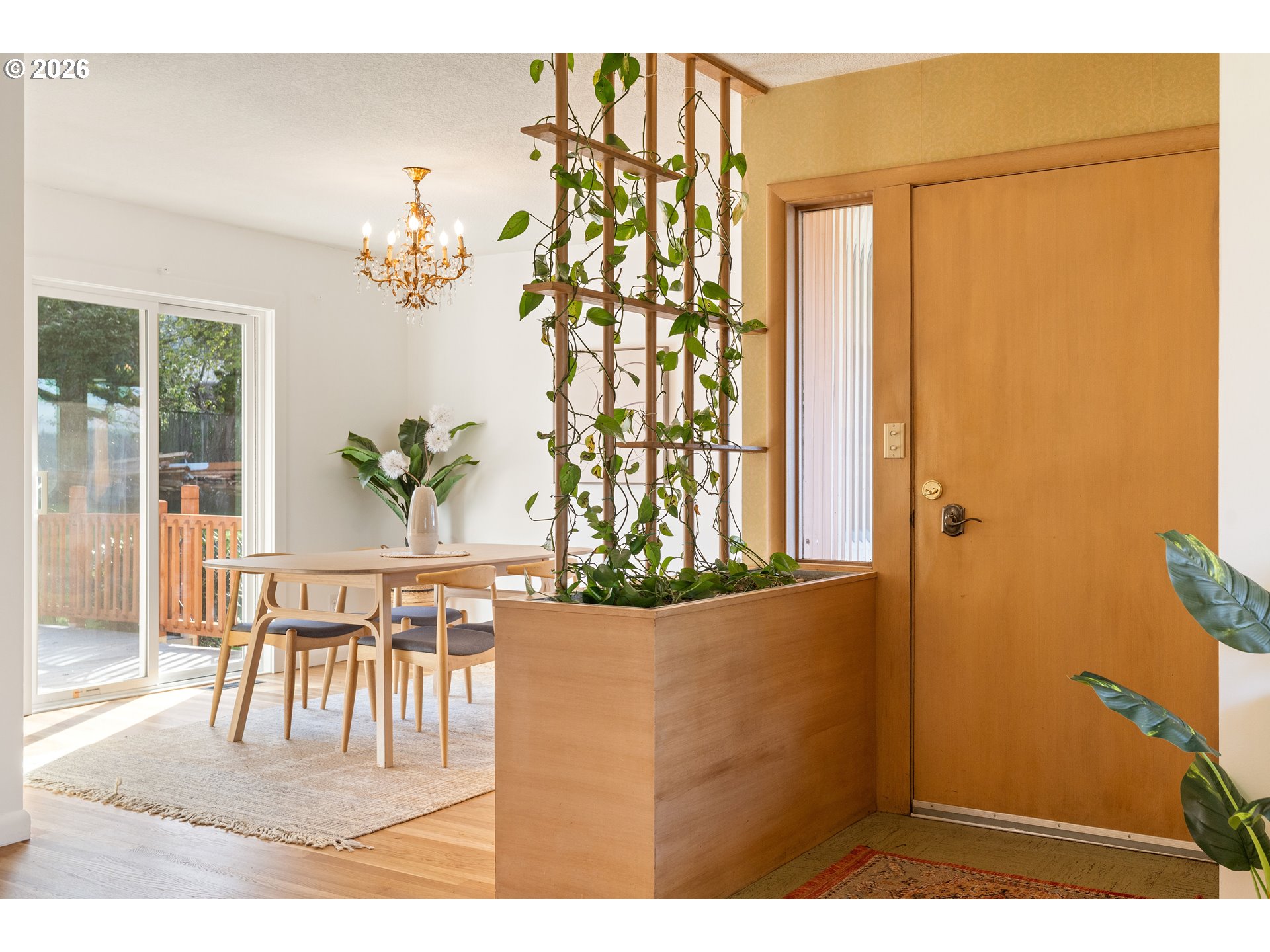Everyone loves a mid-century home, and for good reason. Built with old growth timber, functional layouts, and beautiful wood floors, these homes offer warmth and character that is hard to replicate.This classic ranch sits on a large lot and welcomes you with a spacious driveway, charming front porch, and built-in flower bed. A breezeway connects the home to the detached two-car garage. Inside, the entry features a built-in planter, climbing vines, original wood divider, and coat closet.The living room is anchored by a quintessential 50s brick fireplace and filled with natural light from west- and south-facing picture windows. Enjoy views of the Southwest Hills across the Willamette River. A formal dining room and cozy kitchen nook provide flexibility, while the kitchen stays true to its era with charming wallpaper and original cabinetry, complemented by updated countertops, sink, and backsplash.With five bedrooms, three on the main and two downstairs, this home offers excellent flexibility. The lower level includes a spacious family room, updated bathroom, laundry room, and a fifth bedroom or office. Original built-ins add both charm and function, and the classic pink tile in the bathroom preserves its mid-century character.Major updates include new PEX plumbing, sewer and water lines, water heater, and electrical panel with garage subpanel. The home also features central A/C, radon system, EV charger, foundation strapping, and sump pumps.Additional improvements include new windows and trim, solar tubes, updated basement lighting, egress windows, fenced back patio, new gutters, newer driveway slab, exterior paint (2023), and a powered garage door opener.A rare opportunity to own a mid-century home with thoughtful modern updates.