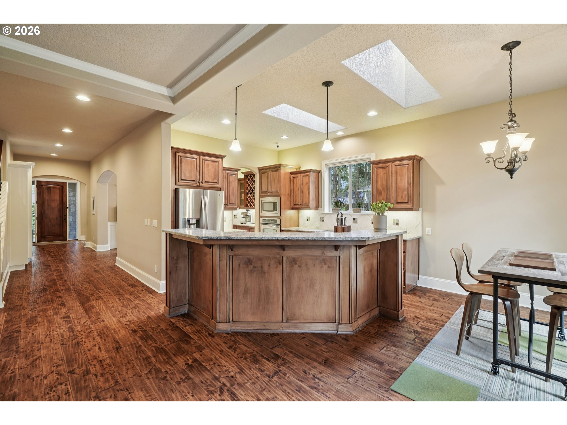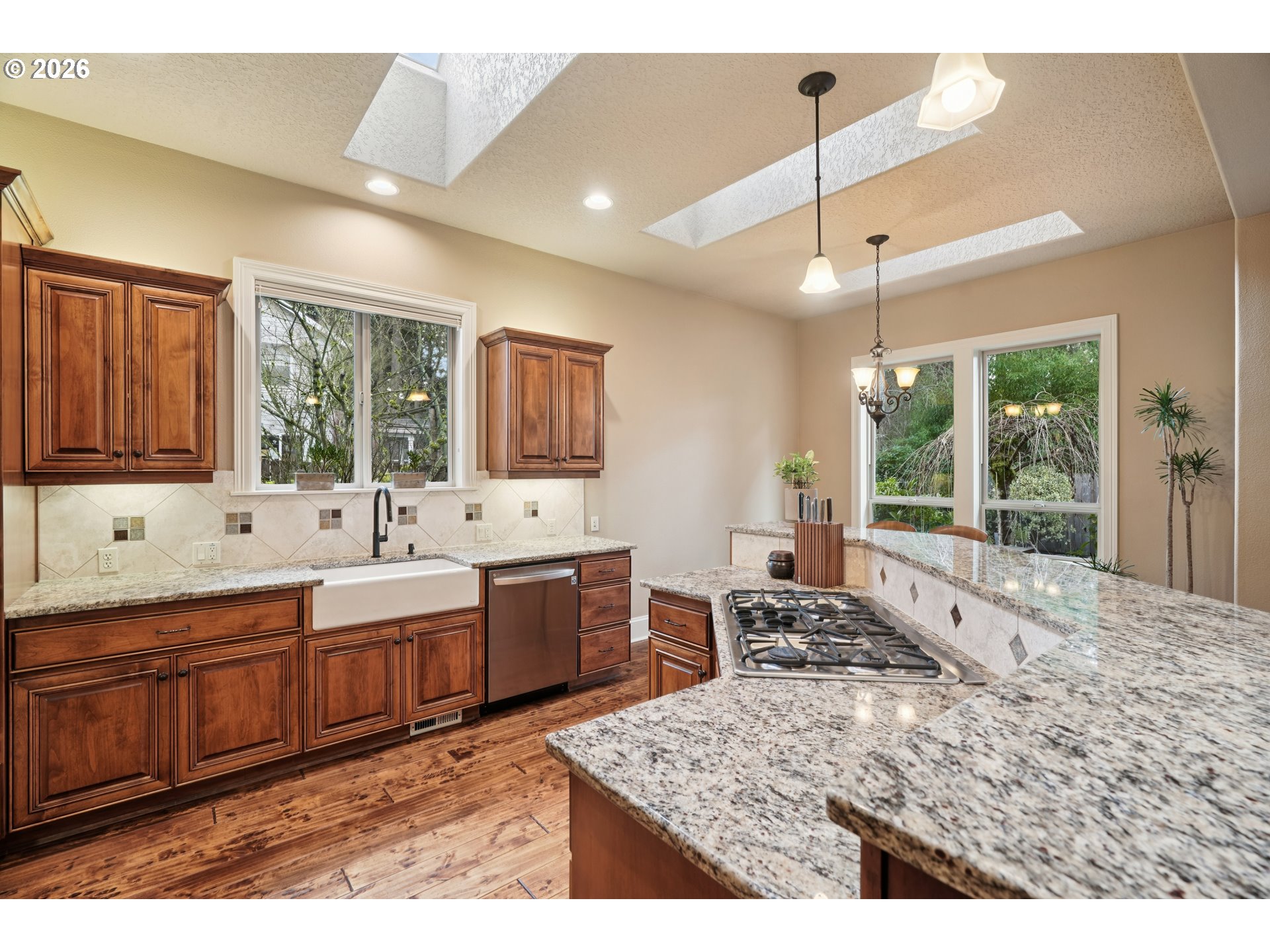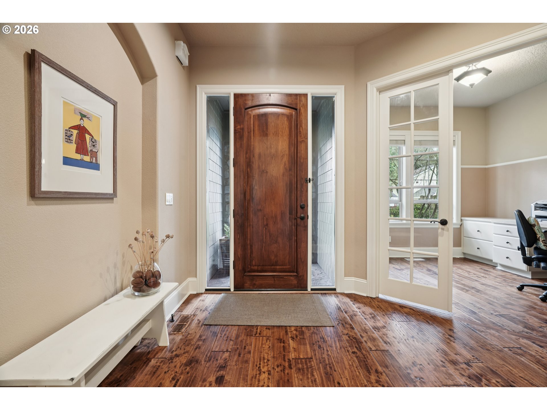 Experience Pacific Northwest living at its finest in this beautifully designed Renaissance home featuring a luxurious primary suite on the main floor. The expansive great room floor plan offers seamless flow and abundant natural light, complete with custom built-ins that add both charm and functionality. The spacious kitchen is a chef’s dream with a walk-in pantry, separate butler’s pantry, and generous prep space—perfect for entertaining. A versatile den with built-ins and elegant French doors provides an ideal home office or flex space. Retreat to the main-level primary suite featuring a relaxing soaker tub, double sinks, and a spacious walk-in shower—your own private sanctuary. Upstairs, you’ll find two additional bedrooms plus a loft/workspace with built-ins, offering flexibility for guests, hobbies, or remote work. Designed with functionality in mind, this home offers abundant storage throughout, ensuring everything has its place. A well-appointed laundry room with utility sink adds everyday convenience. Situated on a large corner lot, the outdoor living space includes a covered patio, raised garden beds, and a tranquil water feature—perfect for year-round enjoyment. Enjoy a prime location just moments from Lake Grove shops and restaurants, next to Waluga West Park, 5 minutes to Waluga Park with easy access to I-5 and Hwy 217 for a convenient commute. Access to THREE Oswego Lake Easements: Goodin, Springbrook Recreation, and Summit Court.