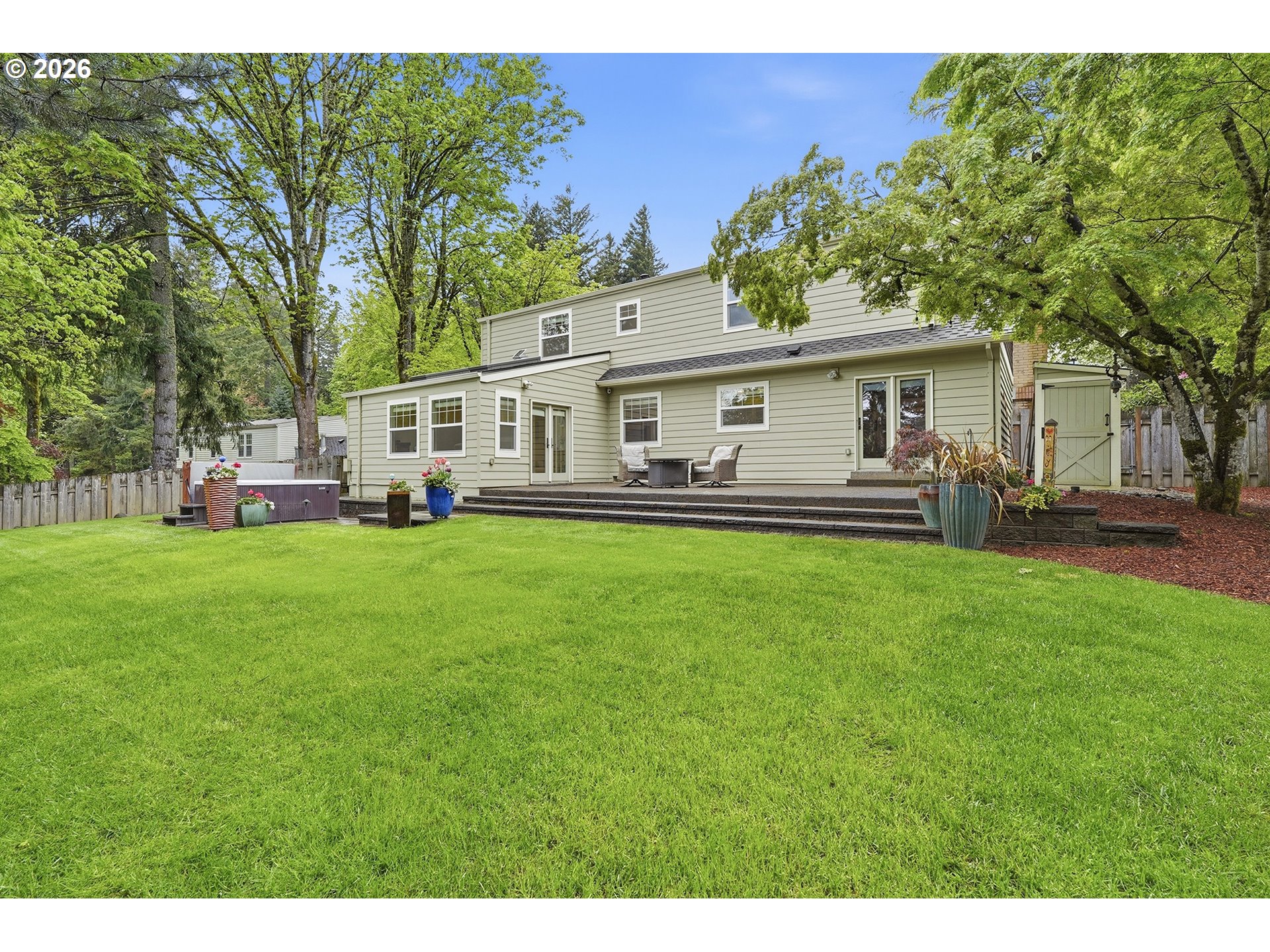 Welcome to this charming Craftsman style home in the desirable Mountain Park community. The cozy living room features a gas fireplace, built ins, and beautifully refinished hardwood floors. A separate formal dining area leads to a spacious kitchen with an adjoining family room and a versatile sunroom filled with natural light. Upstairs are three secondary bedrooms and a spacious primary suite with a beautifully remodeled ensuite bathroom and two walk-in closets. The private backyard includes a flat fenced yard, patio, and hot tub, perfect for relaxing and entertaining. Located just half a mile from Westlake Park and minutes to Oswego Towne Square, the home also offers access to Mountain Park scenic trails and nearby amenities. Spacious living areas, abundant natural light, and inviting outdoor spaces create a home designed for long term enjoyment.