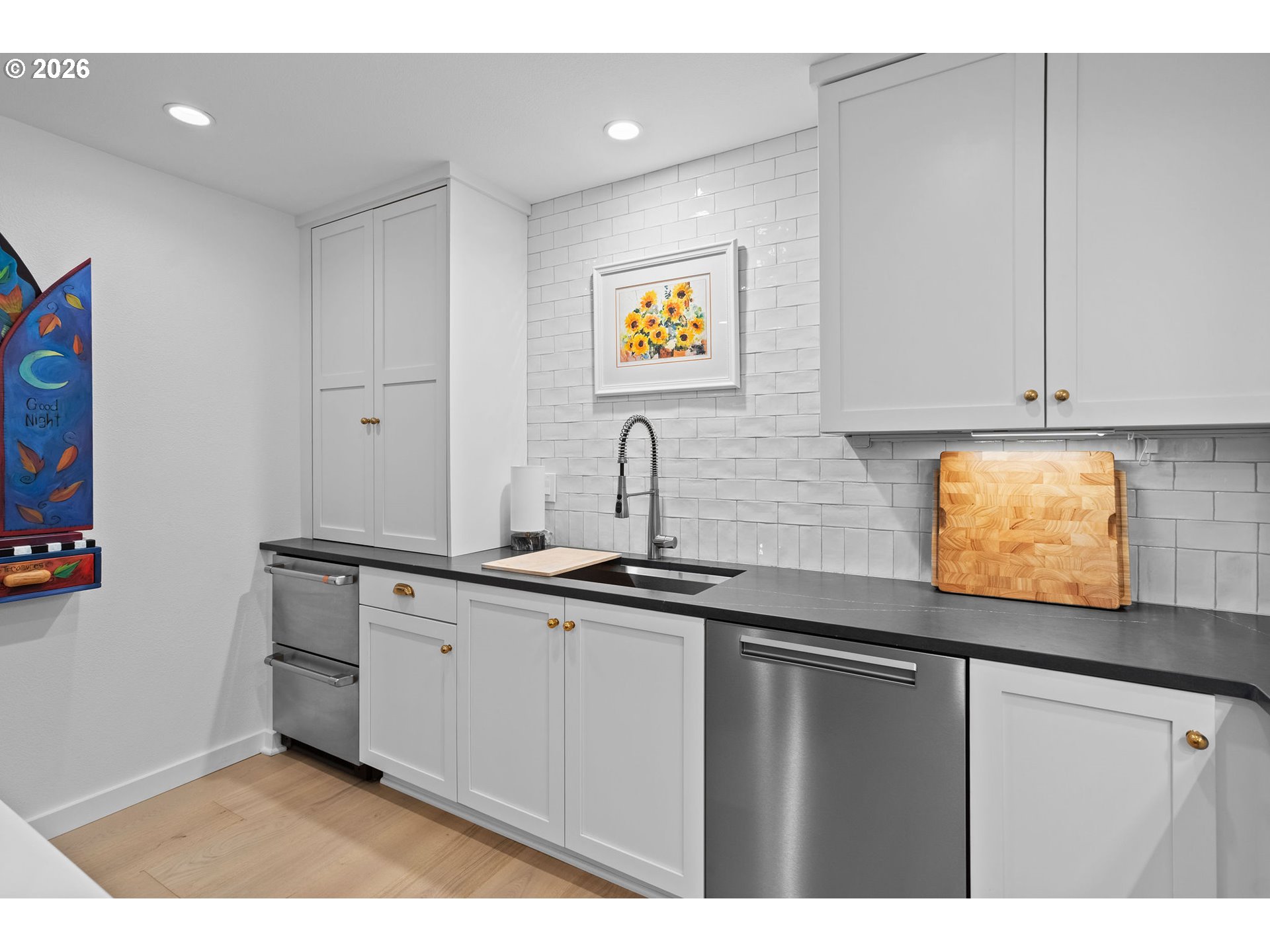 (503) 893-8874If you’re looking for a fully remodeled, move-in-ready condo in Lake Oswego with modern amenities, high-end finishes, and zero upgrades needed, this is the one.Located in the Lake Oswego Terraces, this top-floor, end-unit offers rare privacy, views of the Willamette River and Mt. St. Helens, all from within this 2023 luxury renovated condo designed for today’s lifestyle. The chef-designed kitchen features a 10-foot quartz island, Zellige tile backsplash, under-cabinet lighting, and high-end Café and Miele appliances including an induction cooktop, stainless steel fridge, and built-in beverage cooler and don’t miss the hidden custom coffee bar with 2 drawer fridges to complete the culinary experience.Throughout the home, you’ll find wide-plank light oak hardwood floors, upgraded recessed lighting, designer fixtures, motorized living room shades, and two brand-new mini-split HVAC systems for year-round comfort.Both bedrooms feature large closets and sliding glass doors that lead to a 46-foot covered balcony perfect for lounging. The primary bath includes Kohler shower fixtures, towel warmer, marble vanity, and tile flooring. The guest bedroom includes a Murphy bed with built-in storage, easily doubling as a home office or flex room.If you’re looking for a condo that is move in ready and checks all the boxes, you’ve found it. This unit also includes washer/dryer, roller window screens and linen drapes, a private secured entrance, deeded covered parking and private storage. The HOA covers 2 swimming pools, fitness center, water, sewer, trash, exterior maintenance and landscaping, a meeting room and common areas.Located close to George Rogers Park, downtown Lake Oswego, dinning, restaurants, movie theater, riverfront walking trails, shopping and more. If you’ve been looking for a move in ready home with luxury amenities – look no further!