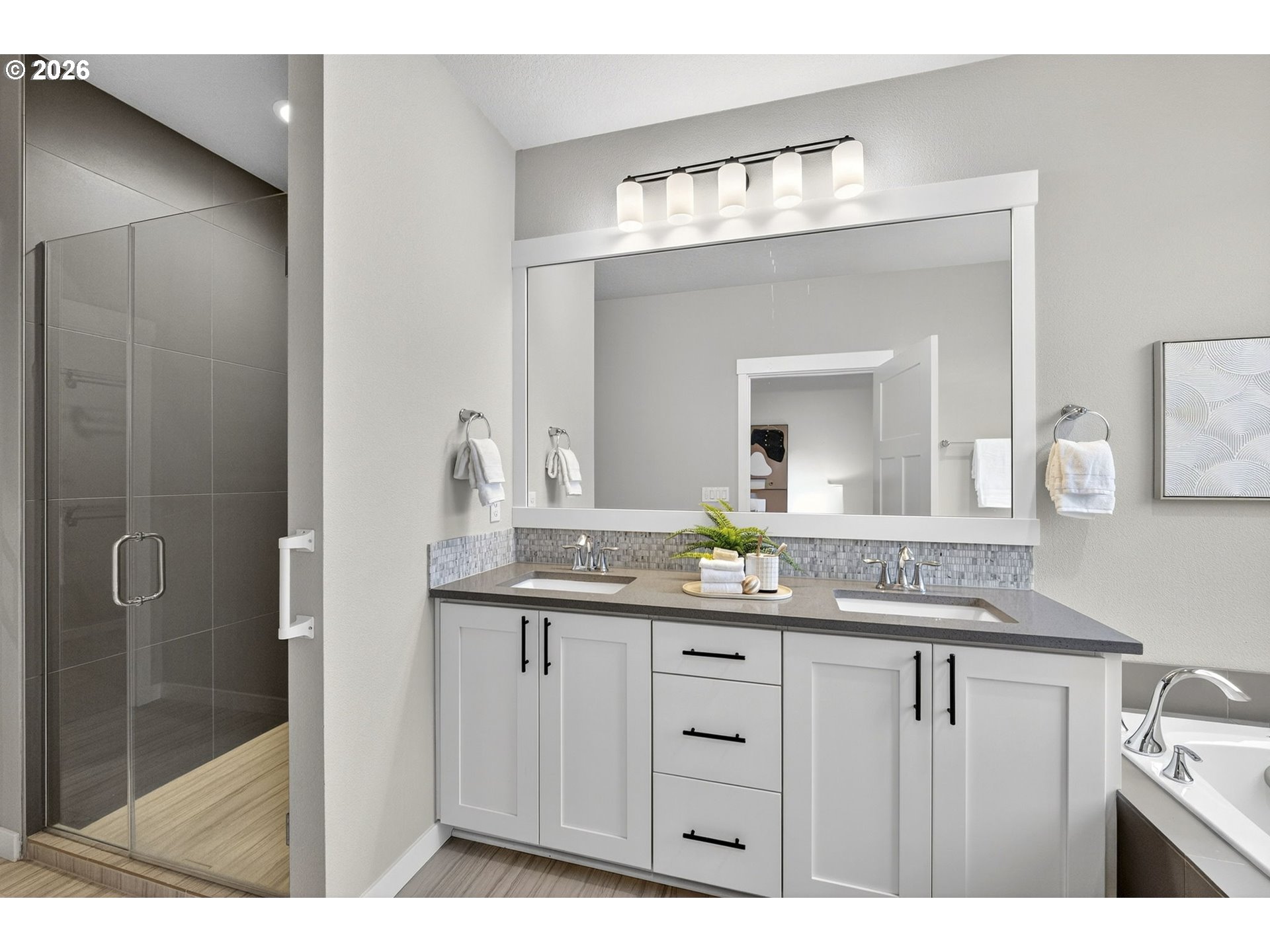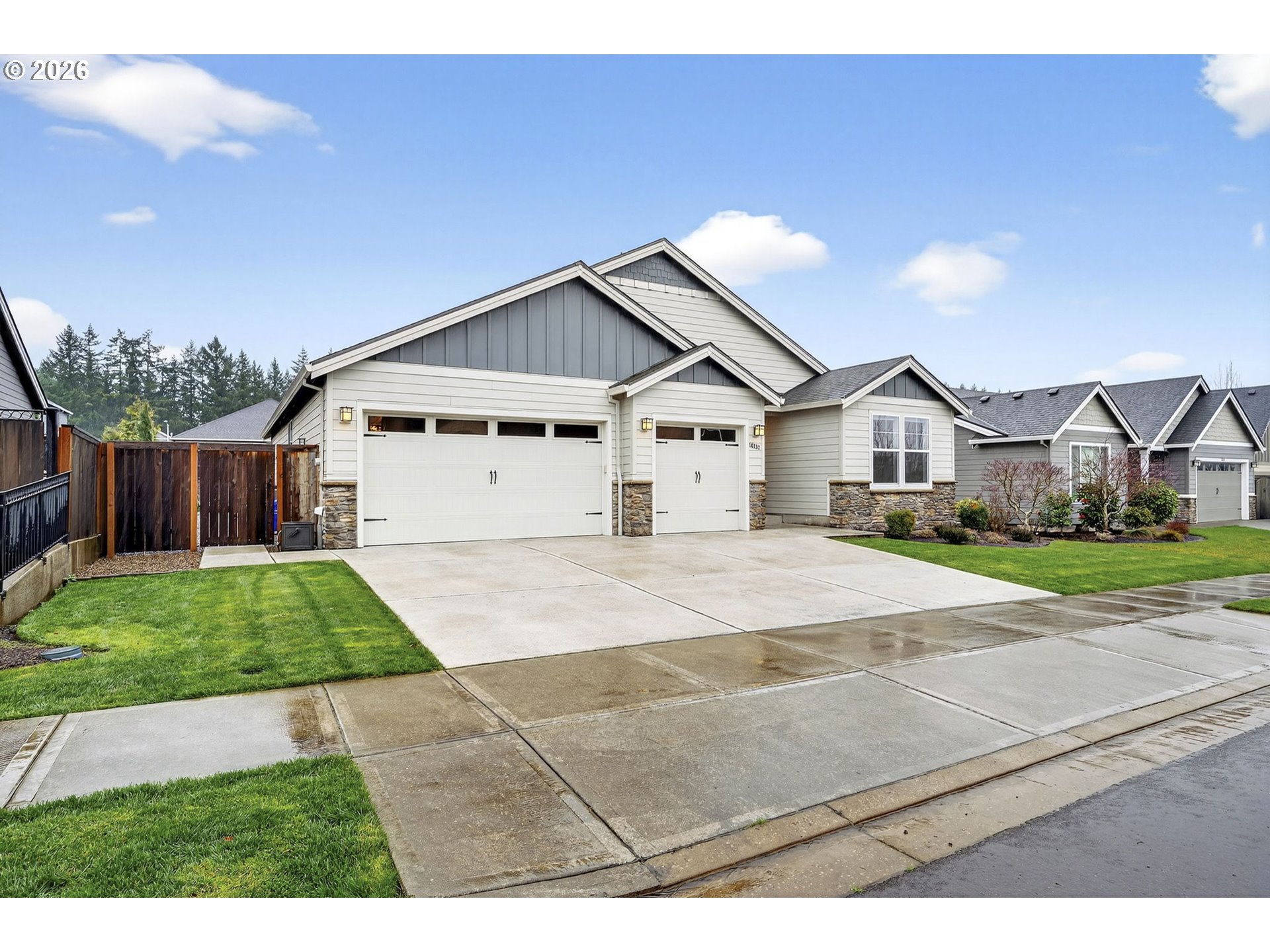 OPEN Sat 3/14 @ 1-3pm! Enjoy the conveniences of single-level living in the desirable Abernethy Landing neighborhood! This well-designed 4-bedroom, 2.5-bath home offers comfortable living space on a generous 0.20 acre lot. The open-concept great room creates the perfect gathering space, featuring a cozy gas fireplace, beautiful built-ins, storage and abundant natural light. The kitchen is ideal for entertaining with quartz countertops, shaker-style cabinetry, stainless steel appliances, gas cooktop, an eat-at island and pantry. The spacious primary suite offers a relaxing retreat with a soaking tub, dual sinks, walk-in shower and large walk-in closet. Three additional bedrooms provide flexibility for guests, office or hobbies. The 3 car garage (complete with epoxy floor!) allows for ample storage & parking. Conveniently wired and ready for a whole home generator in case of inclement weather. Outside, the fully fenced backyard offers room to garden, play or entertain - equipped with a full sprinkler system. Located near parks, schools and everyday amenities with easy access to shopping and commuting routes. A wonderful opportunity to enjoy comfort, space and modern living in a sought-after Oregon City community! All appliances & W/D with pedestals are included. HOA $40/mo.