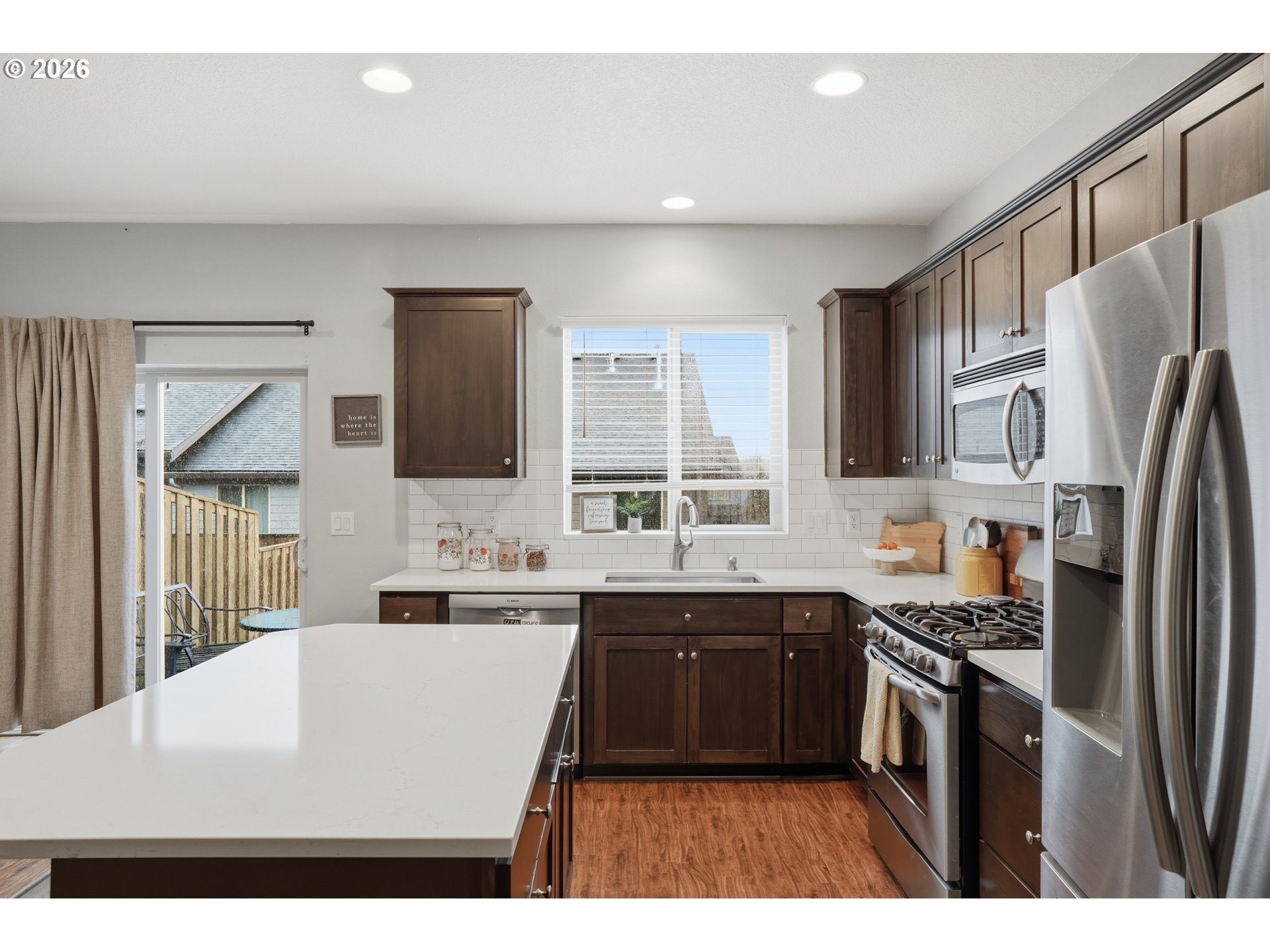 Welcome to Windswept Waters! This beautifully maintained, end-unit townhome in Damascus blends comfort, functionality, and everyday convenience. Inside, you’ll find warm laminate flooring across the main level, recessed lighting, and a welcoming gas fireplace that creates the perfect cozy gathering space. The updated kitchen shines with quartz countertops and stainless steel appliances, ready for your culinary adventures. Upstairs, all three bedrooms, two full bathrooms, and a dedicated laundry room are thoughtfully arranged for practical living. A versatile loft offers the ideal spot for reading, studying, gaming, or playroom, a customizable space to fit your lifestyle. Not to mention the spacious primary bedroom features a walk-in closet and private ensuite. Stepping outside, you are welcomed by a private, fully fenced, back patio to enjoy and can’t forget the added convenience of a one car garage. Community amenities include a playground, dog park, and basketball court. HOA covers external maintenance, including the front yard irrigation system.