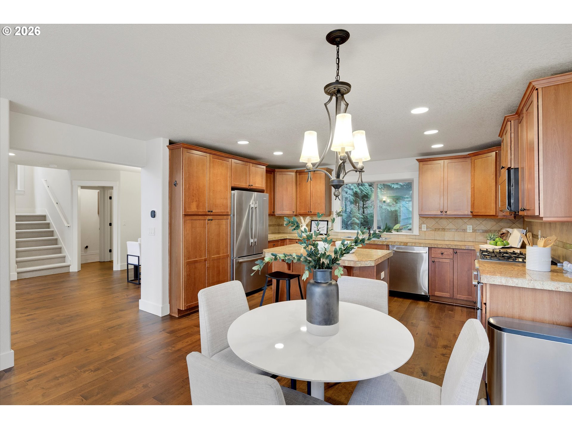 (503) 893-8874This inviting home features high ceilings and abundant natural light throughout, creating a bright and open atmosphere. Recent upgrades include engineered hardwood flooring, new carpet and tile, updated appliances, fresh interior and exterior paint, and a roof replaced in 2015. Additional improvements include a new exterior deck and stairs, hot water tank, and air conditioning. Generously sized rooms and a peaceful setting make this home both comfortable and welcoming.