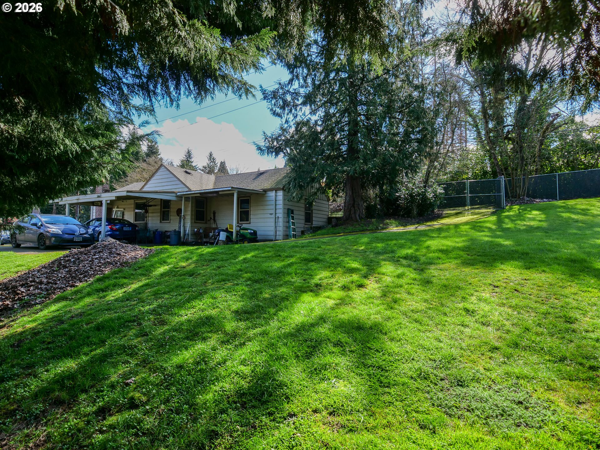 Hey Gardeners! Opportunity knocks on this solid 1940 bungalow on over 1/2 acre. This home has plenty of mid-century charm with solid wood floors, a wood-burning fireplace in the living room with an insert for cozy fires and penetrating heat, a dining area off the kitchen, and a separate laundry area. There's an updated tile bath with tub, and a primary bedroom with an additional 1/2 bath. Enjoy the expansive fenced yard with circular driveway and plenty of room to grow your own food or fruit orchard. If you're looking for a place to create an extended family compound, this is it! The corner lot provides plenty of road frontage for easy access on both Webster and Jennings, creating an excellent future development opportunity.