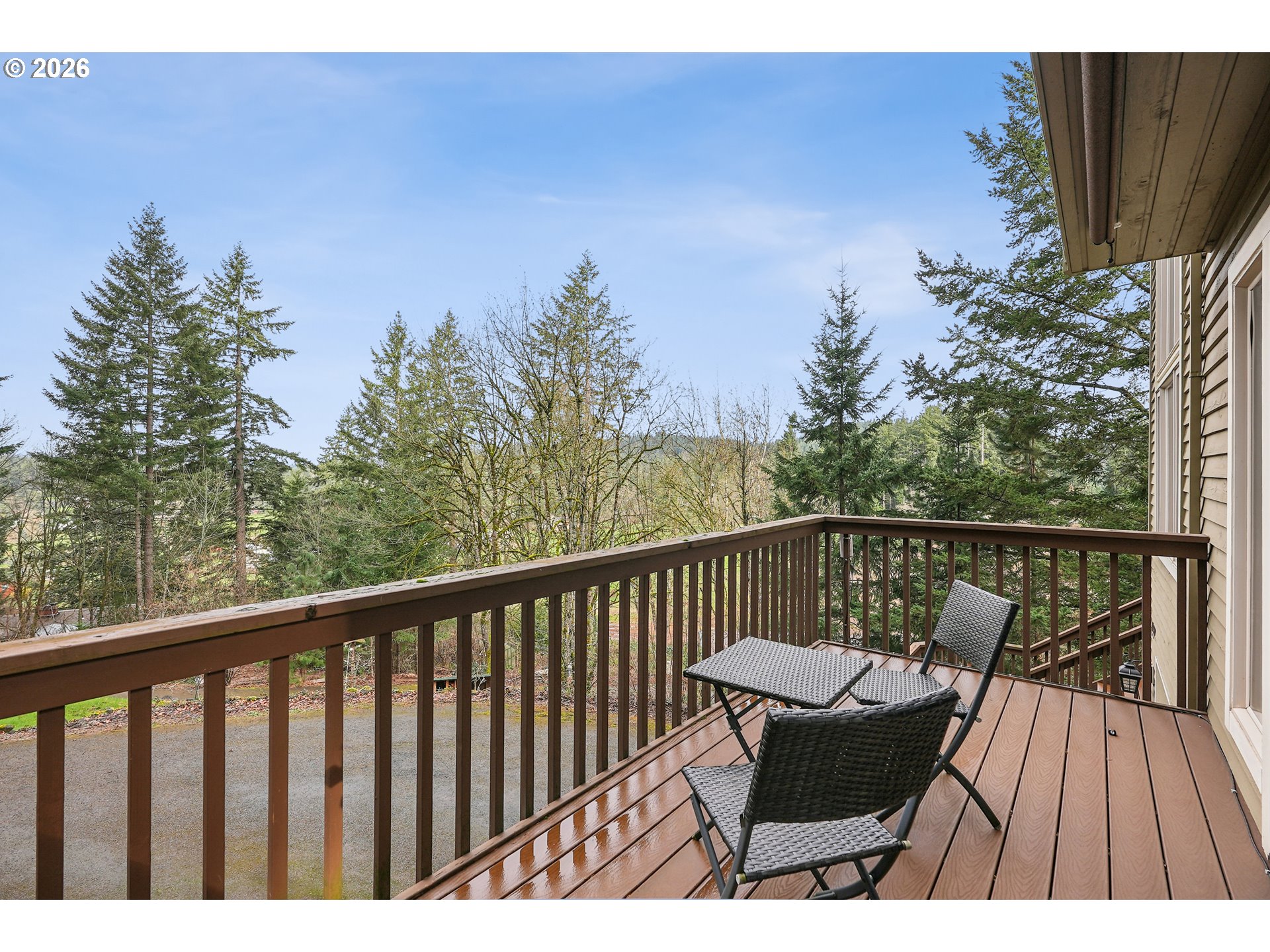 (503) 893-8874Experience breathtaking views of the valley from this custom chalet-style home on secluded 2.5 acres at the end of a private drive. Light and bright throughout, featuring 3 bedrooms, 2.5 bathrooms, and 2 living rooms. Step inside to entryway and formal living area boasting soaring ceilings, wall of windows, and impressive 2-story river rock fireplace with wood-burning insert. Fully updated eat-in kitchen with stainless steel appliances, quartz counters, butcher block island, and garden window with views of serene backyard. Kitchen door provides direct access to wraparound Trex deck with cable railing and planter boxes, an outdoor living space perfect for entertaining or relaxing in nature. Deck also accessible via French doors from formal dining area. Great room living area features built-in desk and French doors leading to another Trex deck perfect for enjoying coffee while taking in forest views and perhaps delighting in a visit from local wildlife. Rounding out the main level is a half-bath with custom wood vanity and accent wall and a laundry room with utility sink and ample storage. Upstairs, you’ll find a loft, 3 bedrooms, and 2 full bathrooms. Primary bedroom offers vaulted ceilings and en-suite bathroom with double vanities, walk-in tiled shower, and walk-in closet. You’re in luck if you need workspace or storage, as property includes insulated and heated 20x40 shop, complete with office. Shop is setup with 110V and 220V outlets. Outside, you’ll also find a fire pit, 2 smaller outbuildings, a chicken coop, and RV parking. Pick fresh fruit from the various apple/pear trees and berry bushes. Attached garage has 2 extra-deep bays, storage galore, and separate electrical panel for generator. 120-gallon propane tank is plumbed to the garage ready for a generator and to the deck to easily connect your gas grill. This 1-of-a-kind property offers the perfect balance of country living and modern comforts while still being conveniently located near town and I-205.