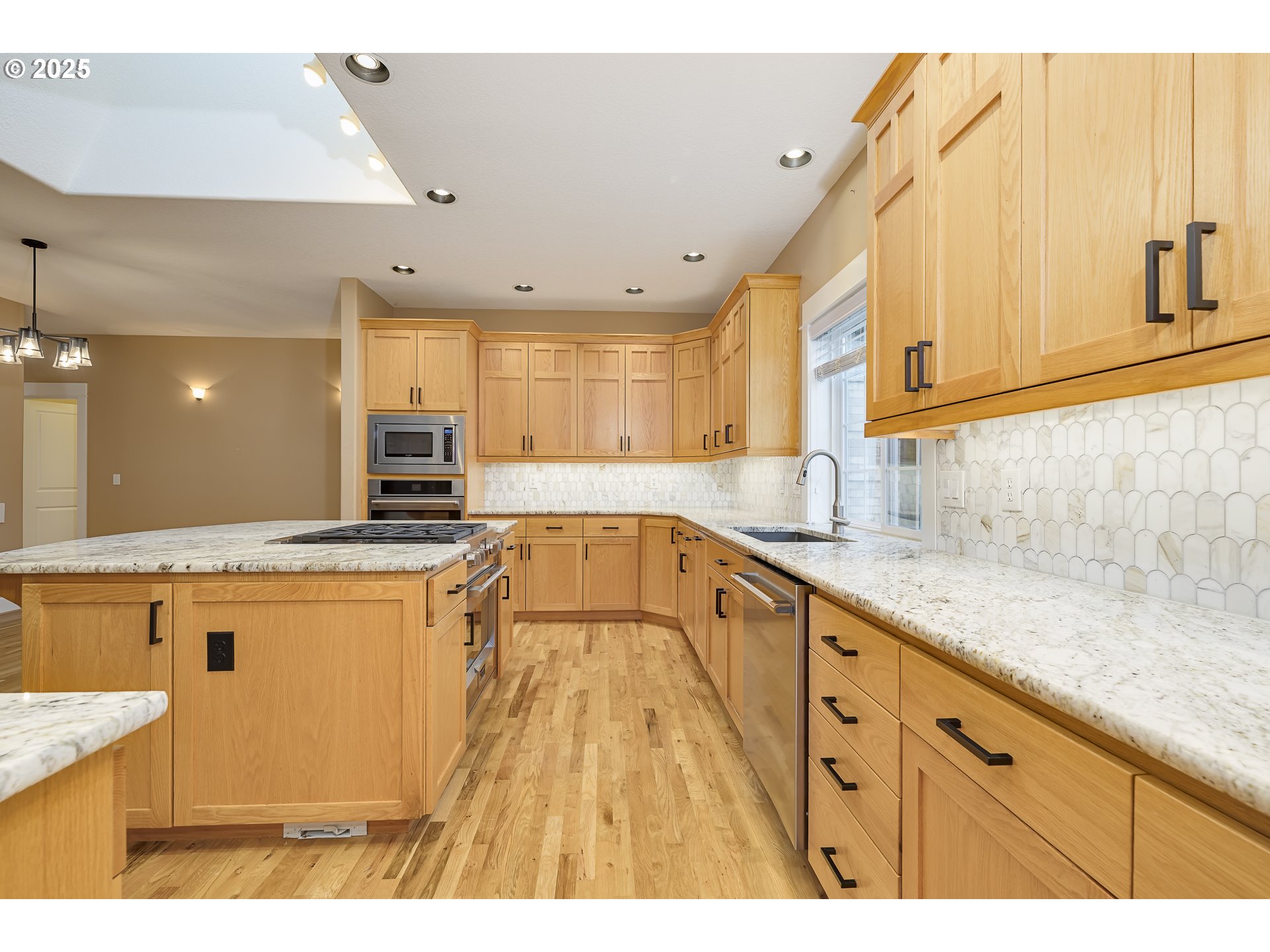 This gorgeous and spacious one level home in desirable McNary neighborhood is looking for new owners. Step through the front door and admire the hardwood floors that lead you into the home. The updated gourmet kitchen features a chef's island with gas stove & down draft vent, granite countertops, built-in microwave and oven, walk-in pantry and a skylight. The formal dining room is the perfect place for entertaining. The private primary bedroom features an updated bathroom with huge walk-in shower, dual sinks and walk-in closet. The other bedrooms and office are located at the opposite end of the house. Cozy up to the gas fireplace in the formal living room, or relax in the family room with sliders that lead onto the covered patio and fully fenced backyard. There's even a central vacuum system! The 3-car garage completes this exquisite home with finished epoxy floors and shelving. Don't miss the gated and covered RV parking along with a sturdy tool shed. Conveniently located to shopping, schools, and transit, this is the perfect house!