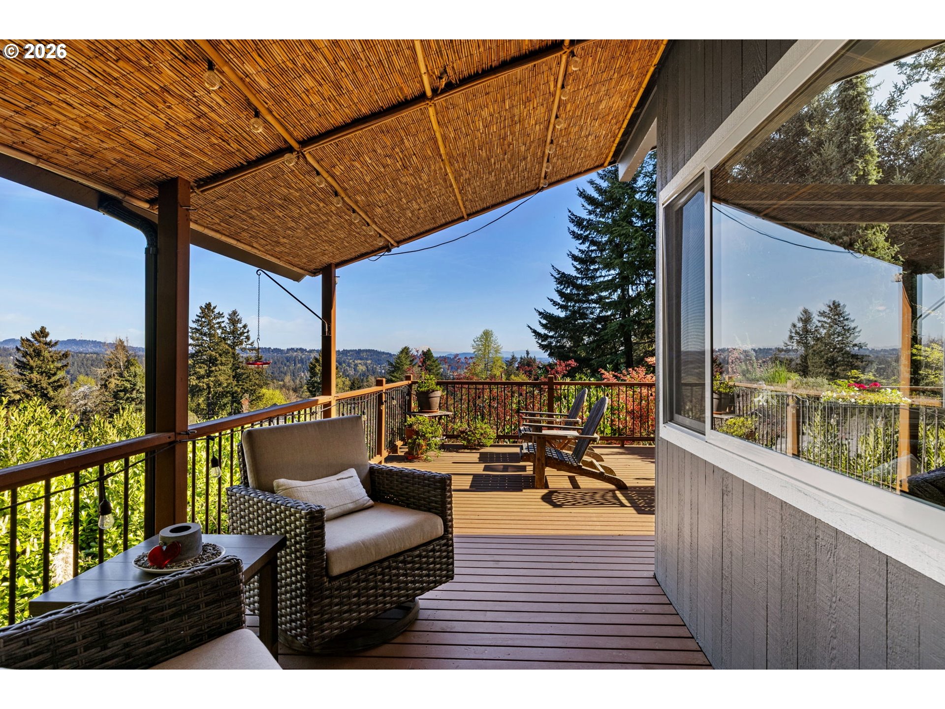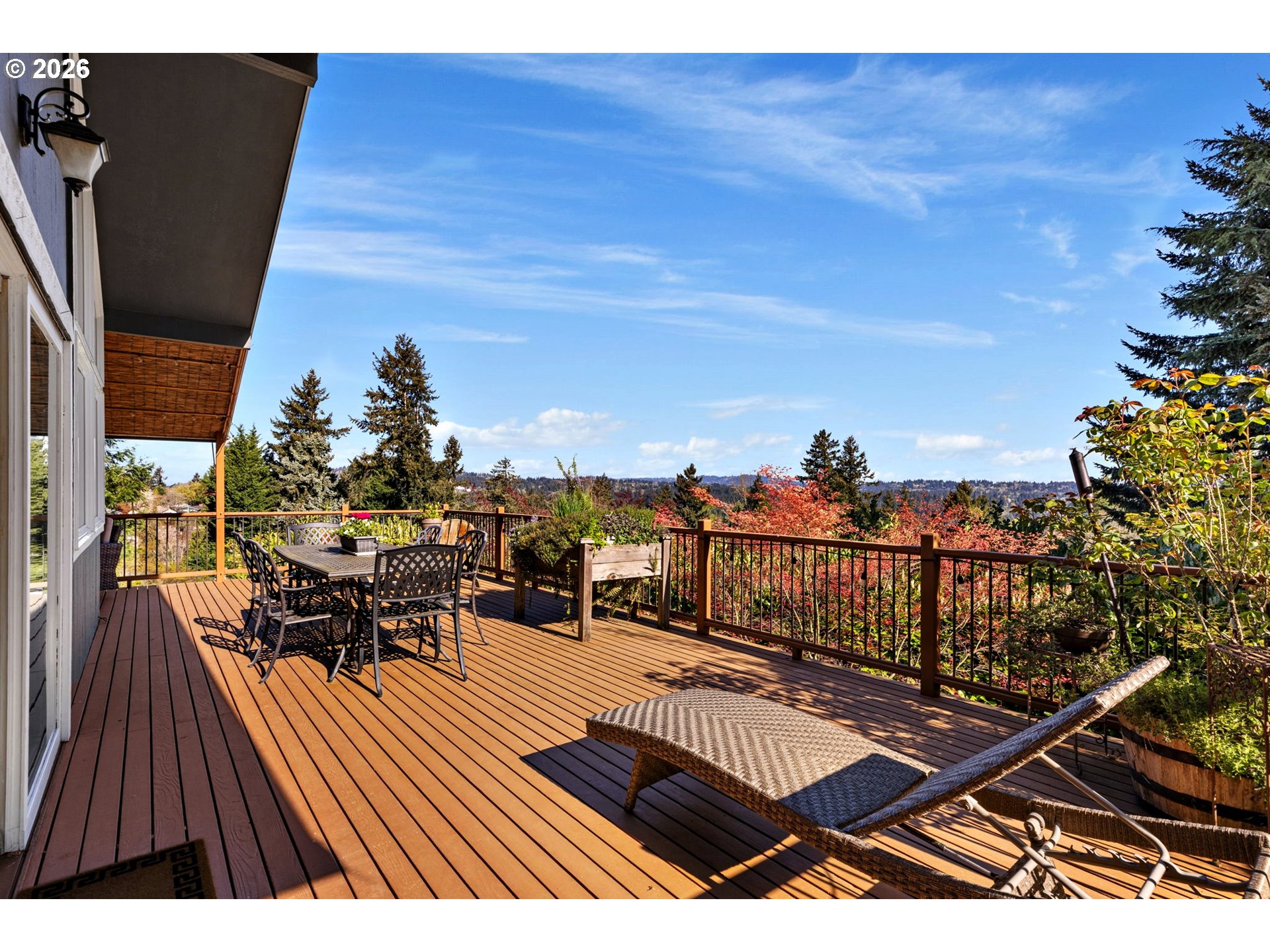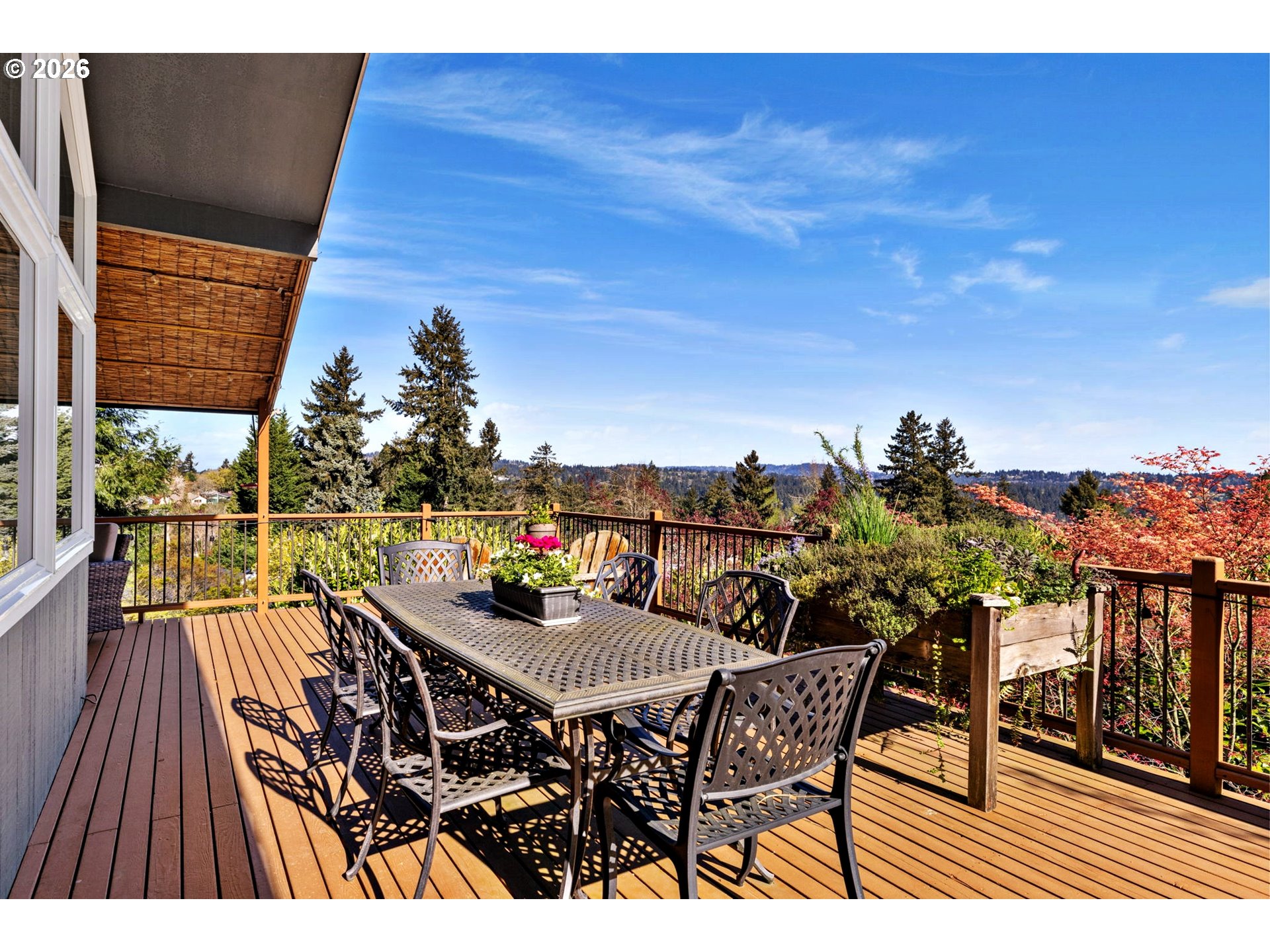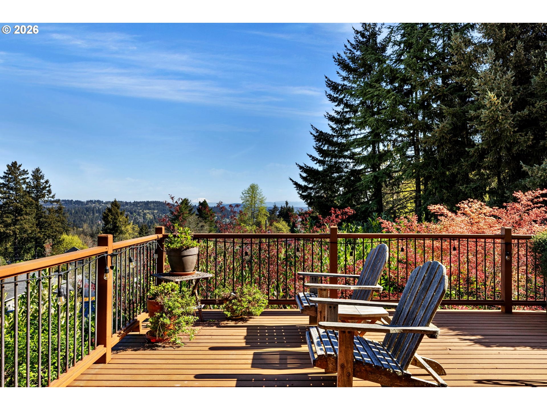 (503) 893-8874Nestled in one of Lake Oswego’s coveted neighborhoods, this striking residence sits at the end of a tranquil cul-de-sac with panoramic views. Soaring ceilings and abundant natural light welcome you. A cozy fireplace and picturesque vistas create an immediate sense of home. Entertain guests in the impressive Great Room, framed by sweeping hills and mountain peaks. The kitchen, ideal for gatherings, features hardwood floors, an eat-in island, a pantry, and stainless-steel gas appliances. The dining area connects to an expansive wraparound deck through glass doors. The vaulted living room offers a flexible space for a studio or reading nook, also with deck access. Three bright bedrooms have hardwood floors. The peaceful primary suite includes double sinks, a shower, a ceiling fan, and a walk-in closet. A second full bath is conveniently located on the main level. Downstairs, a generous bonus room with a fireplace provides space to unwind or for recreation, with direct access to the lower deck and backyard. Two additional bedrooms, another full bath, a laundry area, and a large storage room complete the lower level. Outside, discover areas for garden beds, lawn, and a utility shed. Recent upgrades increase comfort and value, including a roof, gutters, air conditioning, vinyl windows, and refreshed decks.