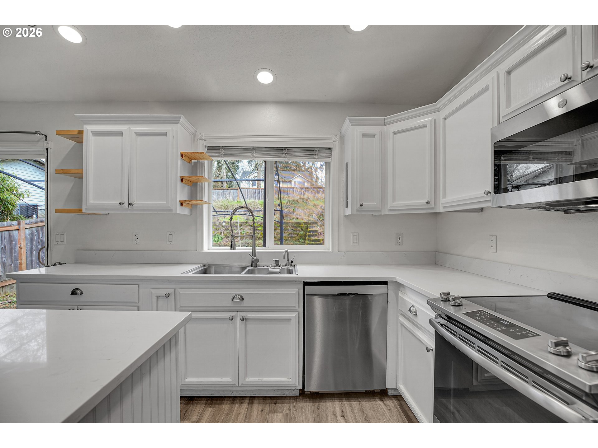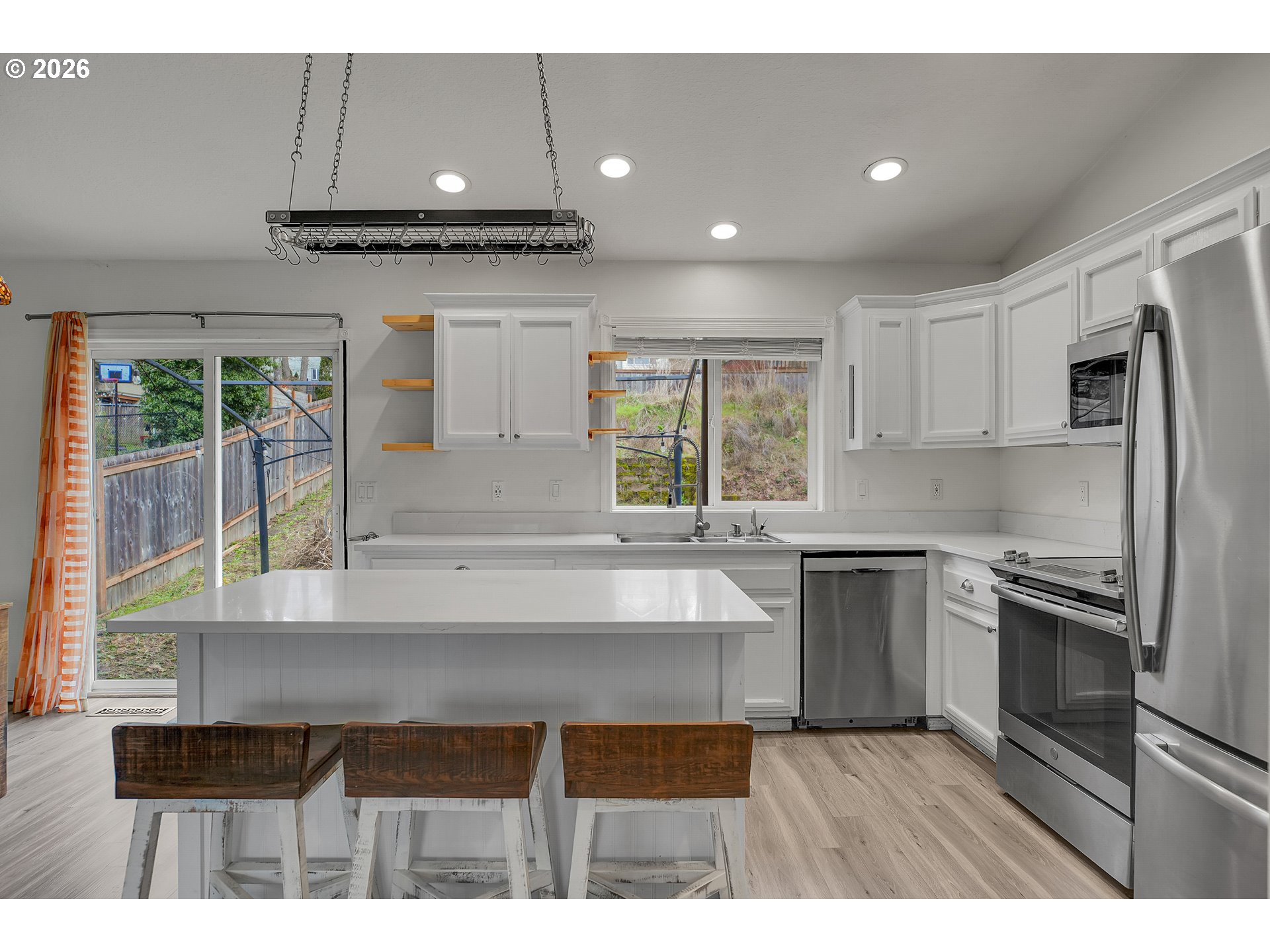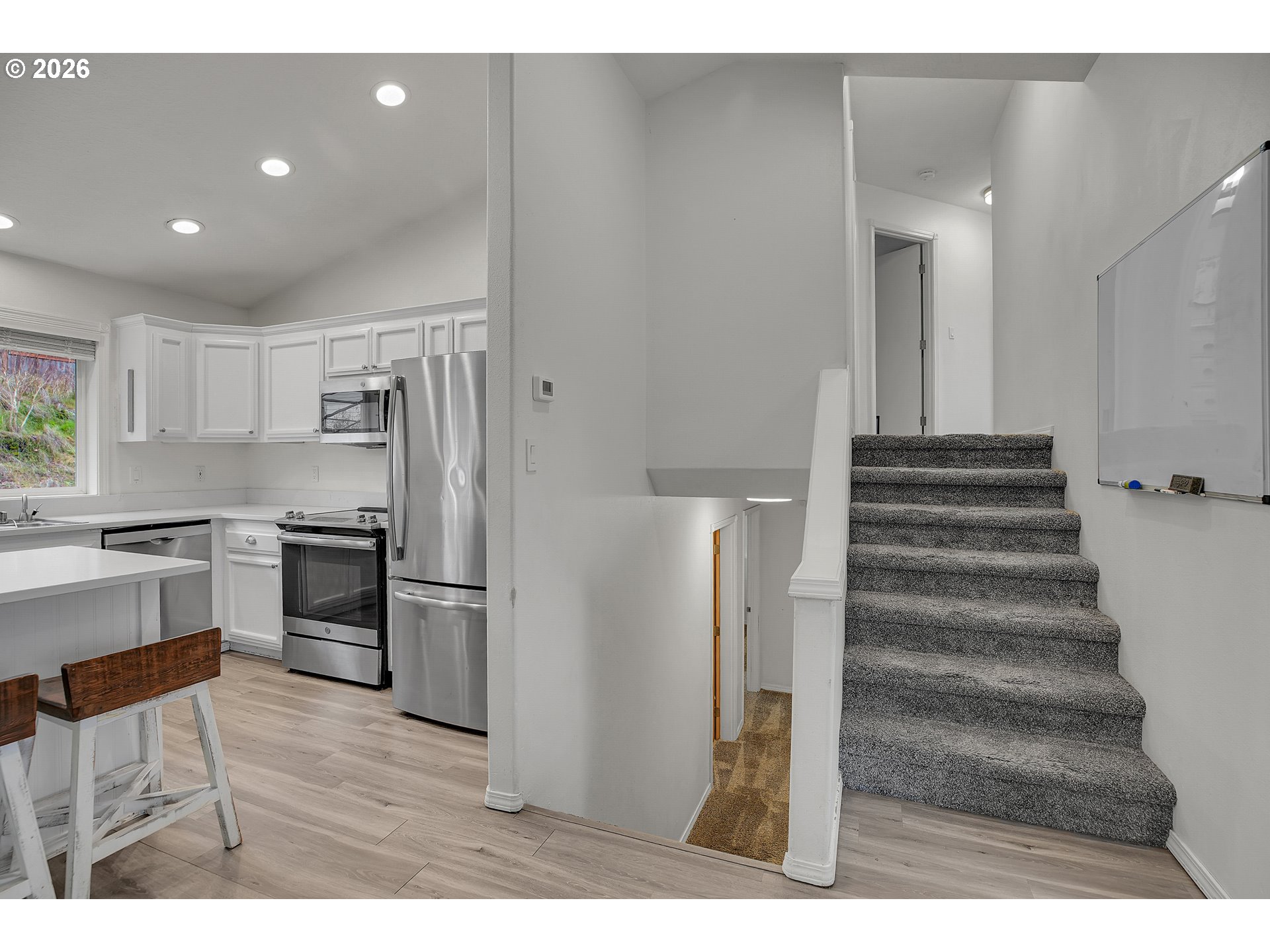 Welcome to this beautifully reimagined contemporary tri-level home offering 4 bedrooms and 2.1 bathrooms. Enjoy open-concept living at its finest, featuring vaulted ceilings, quartz countertops, stainless steel appliances, a spacious island with pot rack, and built-in microwave. Upstairs offers three bedrooms, a full middle bathroom, a primary suite with private bath and walk-in closet. The lower level includes a versatile fourth bedroom—ideal as a guest room or home office—plus a half bath with space to add a shower for additional flexibility. Thoughtfully renovated with modern finishes, this home perfectly blends the “form and function” today’s buyers love. Recent updates include newer carpet, tile, and luxury vinyl flooring and select new doors and windows. Located on a quiet, low-traffic street, the home features a lovely private yard and fenced backyard—perfect for entertaining, gardening, or future expansion. No HOA!