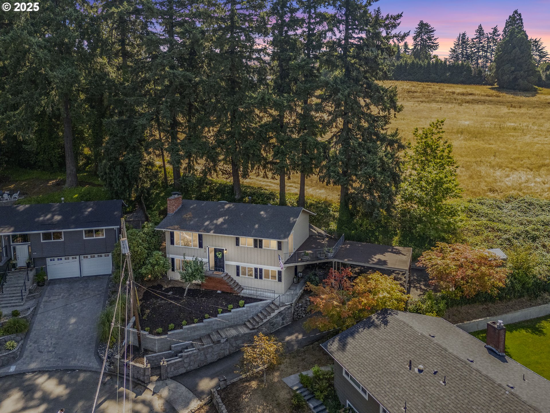 Huge value, privacy, views, and a quiet cul-de-sac define this beautifully remodeled home, ideally located near the new Lake Oswego Aquatic Center, New Seasons, Luscher Farm, and top-rated Lakeridge High School and Hallinan Elementary. This move-in-ready residence offers 4 bedrooms, 2 bathrooms, a formal living room, and a spacious lower-level family room—all at an affordable price. The light-filled living room is anchored by a stunning fireplace and a large picture window showcasing the horizon and beautiful hills. The dining area opens through French doors to a private deck backing to farmland—perfect for sunsets, entertaining, or simply relaxing in peace. The classic white kitchen features newer stainless-steel appliances and generous storage. On this main floor, you’ll find two bedrooms and a beautifully tiled, fully remodeled bathroom, with access to the primary. The lower level expands your living space with a large family room, a cozy fireplace, a versatile flex/bar area, laundry, two additional bedrooms, and another remodeled bathroom. New windows throughout. Potential for dual living options. Truly, a wonderful place to call home and experience the best of Lake Oswego living. OPEN SATURDAY, APRIL 4, 2026.