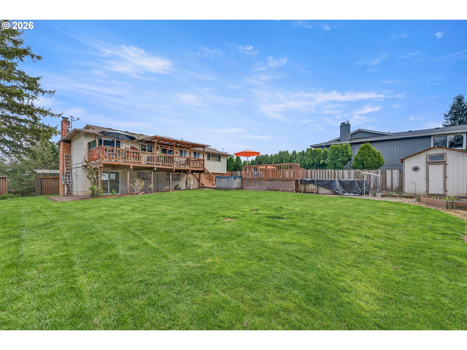 Spacious and well-maintained home offering flexible living and exceptional outdoor amenities in a desirable Milwaukie location. This 4-bedroom, 3-bath residence features a thoughtful layout with inviting living spaces, warm wood flooring, and a cozy fireplace that anchors the main living area.The kitchen is well-appointed with granite countertops, stainless steel appliances, and direct access to the covered deck—perfect for year-round outdoor dining and entertaining. The adjoining dining area is filled with natural light and overlooks the backyard.Downstairs offers additional living space with versatility for a family room, media area, or guest retreat. Generously sized bedrooms provide comfort and functionality, including a spacious primary suite with ample closet space.Step outside to a private backyard designed for enjoyment—featuring a large covered deck, fire pit area, relaxing hot tub and an above-ground pool ideal for summer gatherings. The property also includes a sizable garage with workshop space and abundant storage.Situated on a generous lot with mature landscaping, this home offers a balance of indoor comfort and outdoor living, all within close proximity to shopping, dining, parks, and major commuter routes.