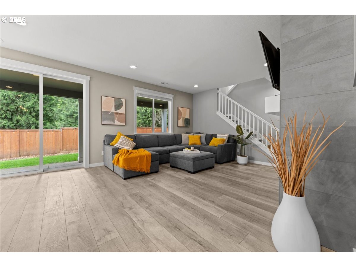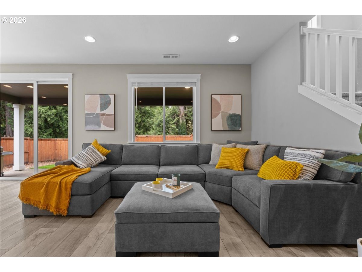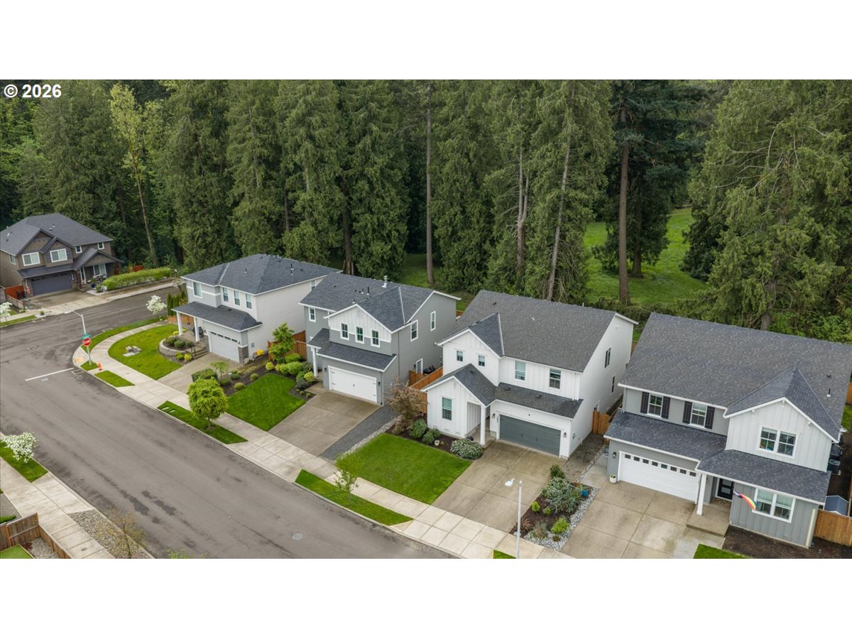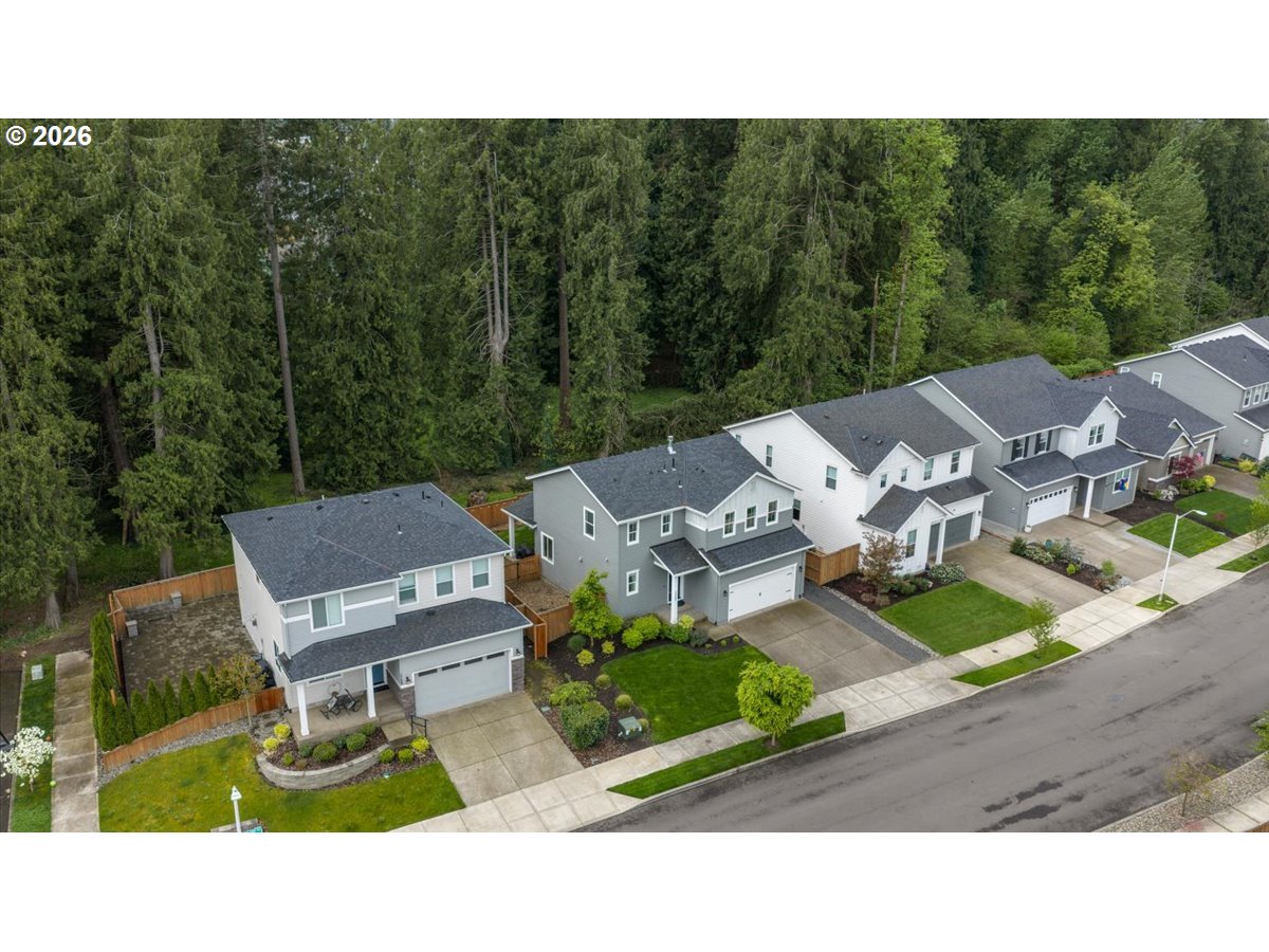 (503) 893-8874Built in 2020 and meticulously maintained, this 3-bedroom, 2.5-bath home offers the perfect blend of modern design, smart home technology, and natural surroundings. From the moment you arrive, the crisp board-and-batten exterior, manicured landscaping and the clean oversized two-car garage set the tone for what's inside. The heart of the home is a thoughtfully designed kitchen featuring sage-toned shaker cabinets with soft-close hardware, quartz countertops, stainless steel appliances, a center island with bar seating, and stylish pendant lighting. The adjacent dining area flows effortlessly through large double sliding glass doors to the covered back patio, where the real show stopper is; a breath taking private, tree-lined backdrop that not every home in the neighborhood can claim. The covered patio with recessed lighting is ideal for year-round entertaining, while the fully fenced, lush backyard stays effortlessly green thanks to a Rachio smart irrigation system that adjusts automatically based on local weather forecasts.Inside, the open-concept living room is anchored by a sleek floor-to-ceiling tiled fireplace, creating a sophisticated focal point that's both modern and inviting. Light wood-look flooring flows throughout the main level, complementing the home's clean, contemporary palette.Upstairs, the primary suite includes a spa-inspired en suite bath with a double vanity, quartz countertops, stylish cabinetry, and a tiled walk-in shower. Additional bedrooms are generously sized with excellent natural light and forest views. A versatile bonus room offers space for a home office, playroom, or flex use. This is the one that has it all; modern construction, thoughtful finishes, smart home features and a backyard to die for.Fun fact: Trimlight LED lighting installed along the roofline which let's you customize your home's look for any season or occasion, all controlled from your phone. Extra fun fact: No HOA!