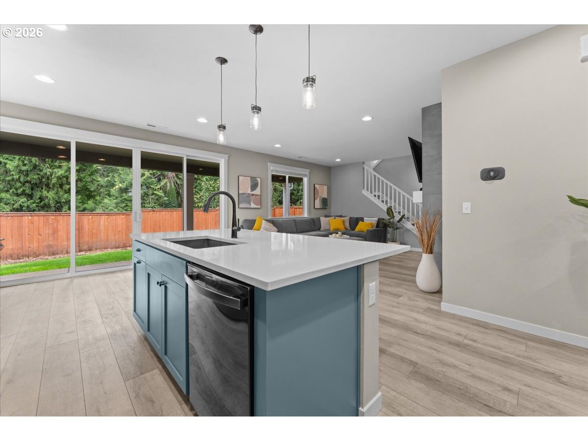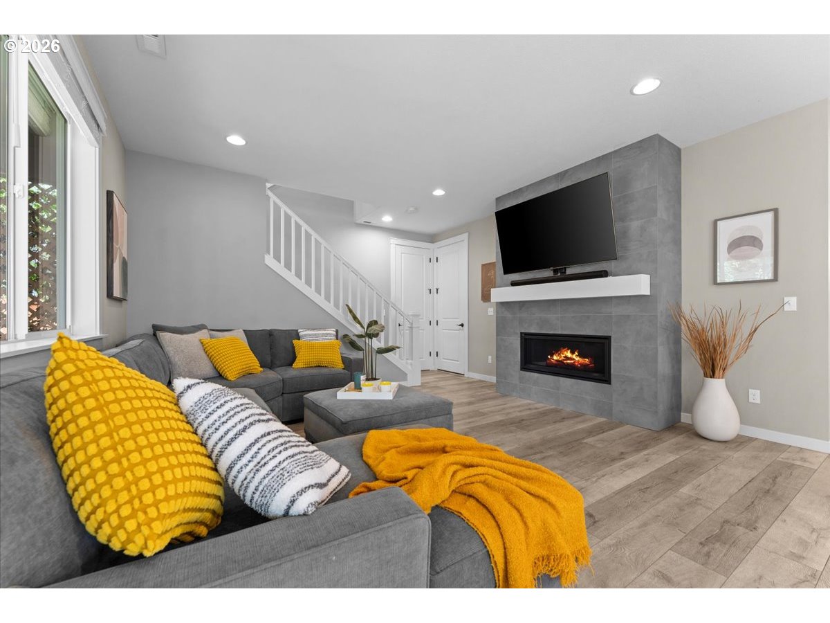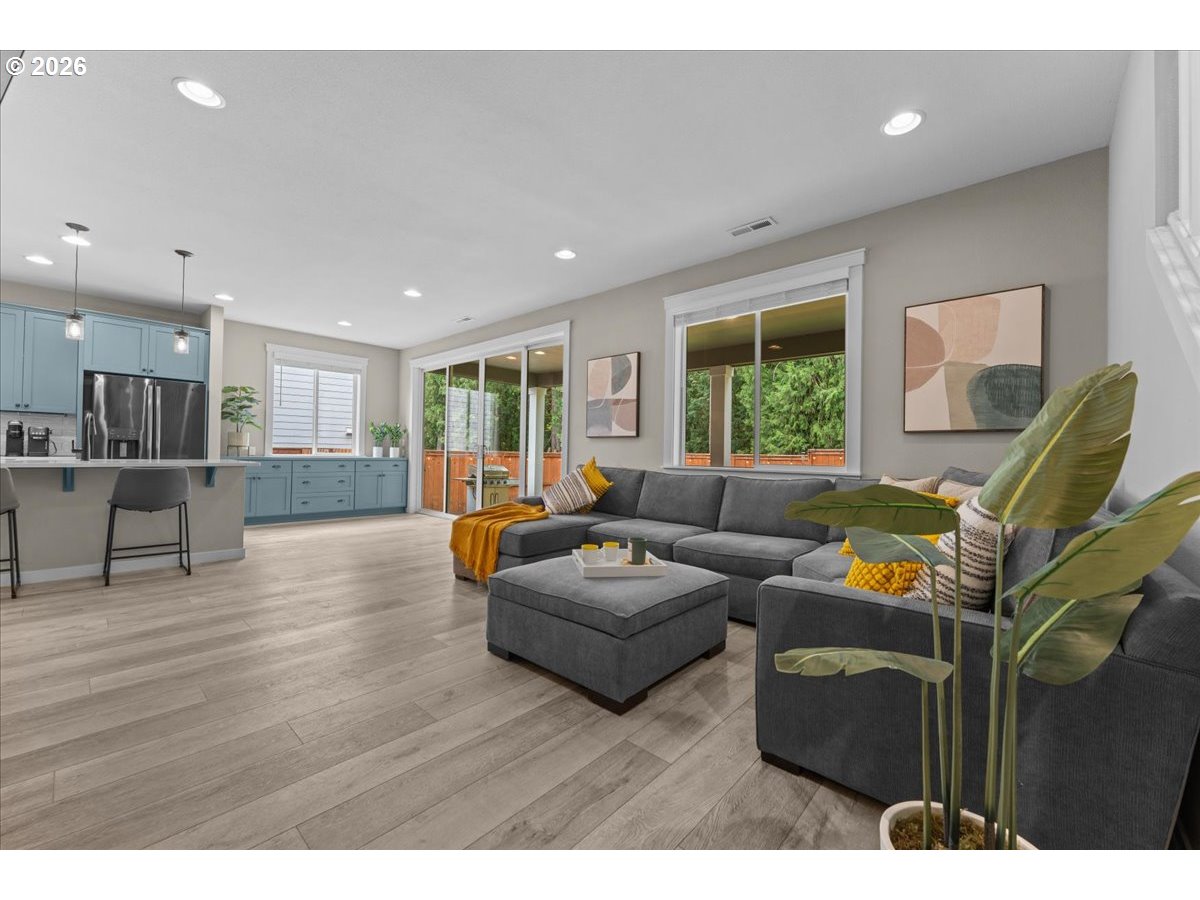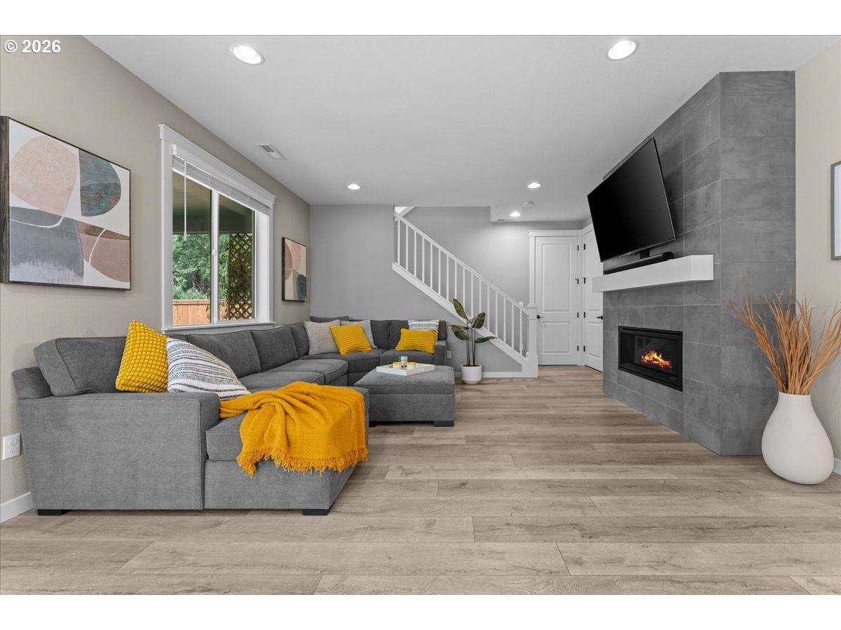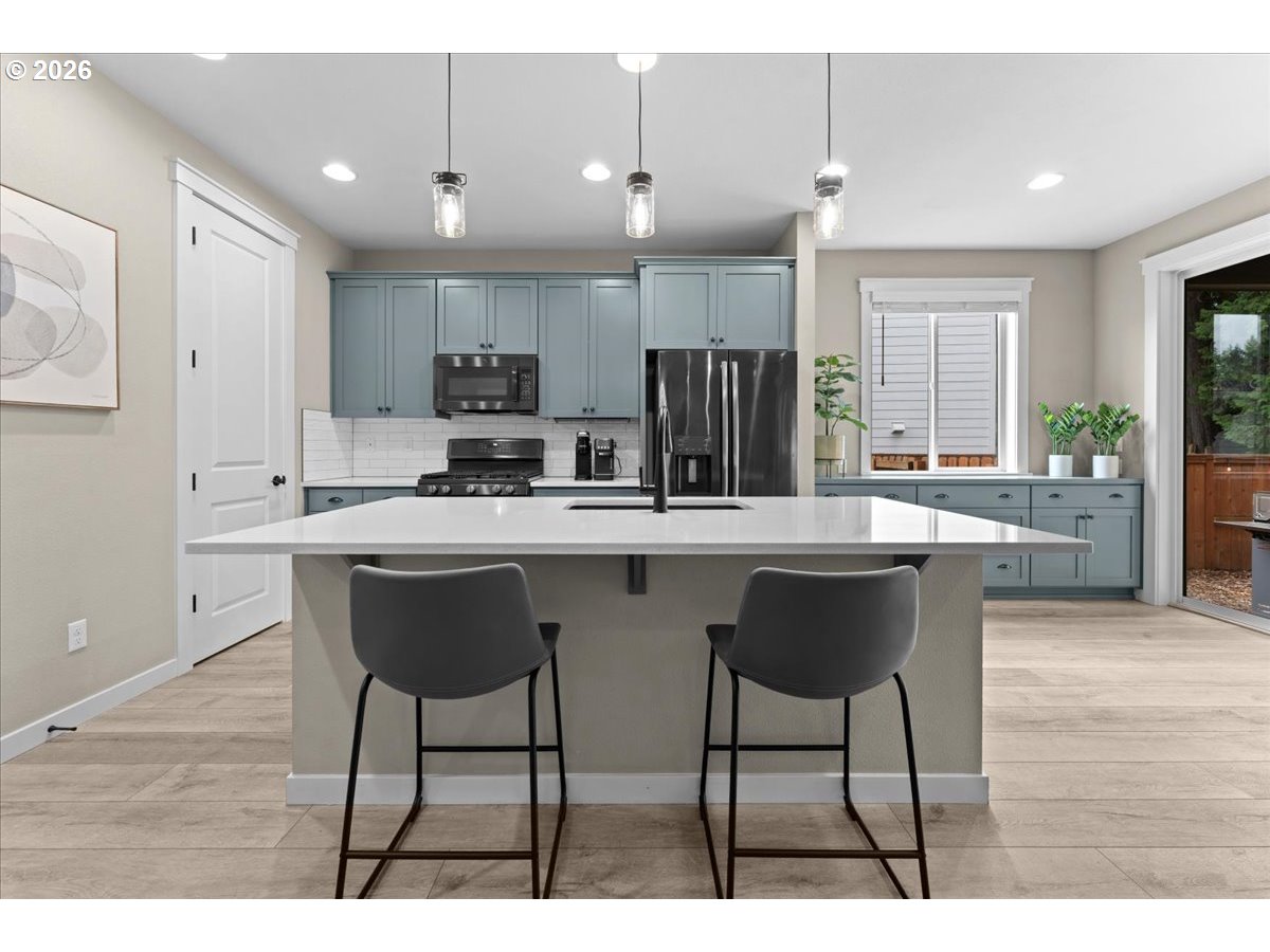 (503) 893-8874Built in 2020 and meticulously maintained, this 3-bedroom, 2.5-bath home offers the perfect blend of modern design, smart home technology, and natural surroundings. From the moment you arrive, the crisp board-and-batten exterior, manicured landscaping and the clean oversized two-car garage set the tone for what's inside. The heart of the home is a thoughtfully designed kitchen featuring sage-toned shaker cabinets with soft-close hardware, quartz countertops, stainless steel appliances, a center island with bar seating, and stylish pendant lighting. The adjacent dining area flows effortlessly through large double sliding glass doors to the covered back patio, where the real show stopper is; a breath taking private, tree-lined backdrop that not every home in the neighborhood can claim. The covered patio with recessed lighting is ideal for year-round entertaining, while the fully fenced, lush backyard stays effortlessly green thanks to a Rachio smart irrigation system that adjusts automatically based on local weather forecasts.Inside, the open-concept living room is anchored by a sleek floor-to-ceiling tiled fireplace, creating a sophisticated focal point that's both modern and inviting. Light wood-look flooring flows throughout the main level, complementing the home's clean, contemporary palette.Upstairs, the primary suite includes a spa-inspired en suite bath with a double vanity, quartz countertops, stylish cabinetry, and a tiled walk-in shower. Additional bedrooms are generously sized with excellent natural light and forest views. A versatile bonus room offers space for a home office, playroom, or flex use. This is the one that has it all; modern construction, thoughtful finishes, smart home features and a backyard to die for.Fun fact: Trimlight LED lighting installed along the roofline which let's you customize your home's look for any season or occasion, all controlled from your phone. Extra fun fact: No HOA!