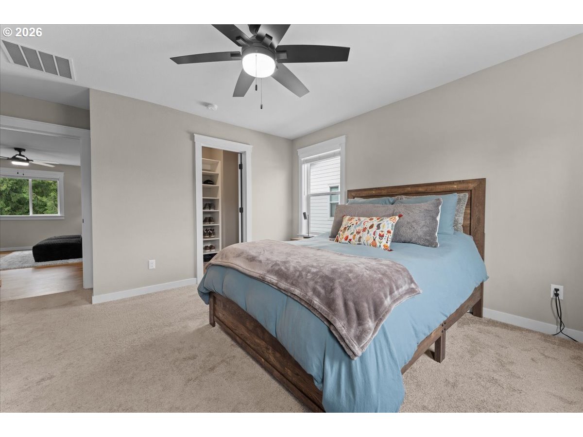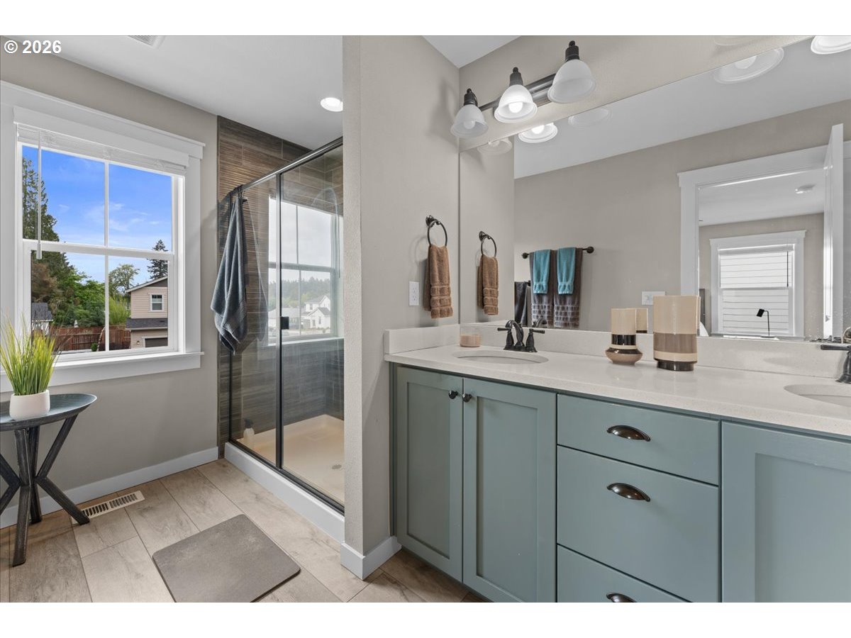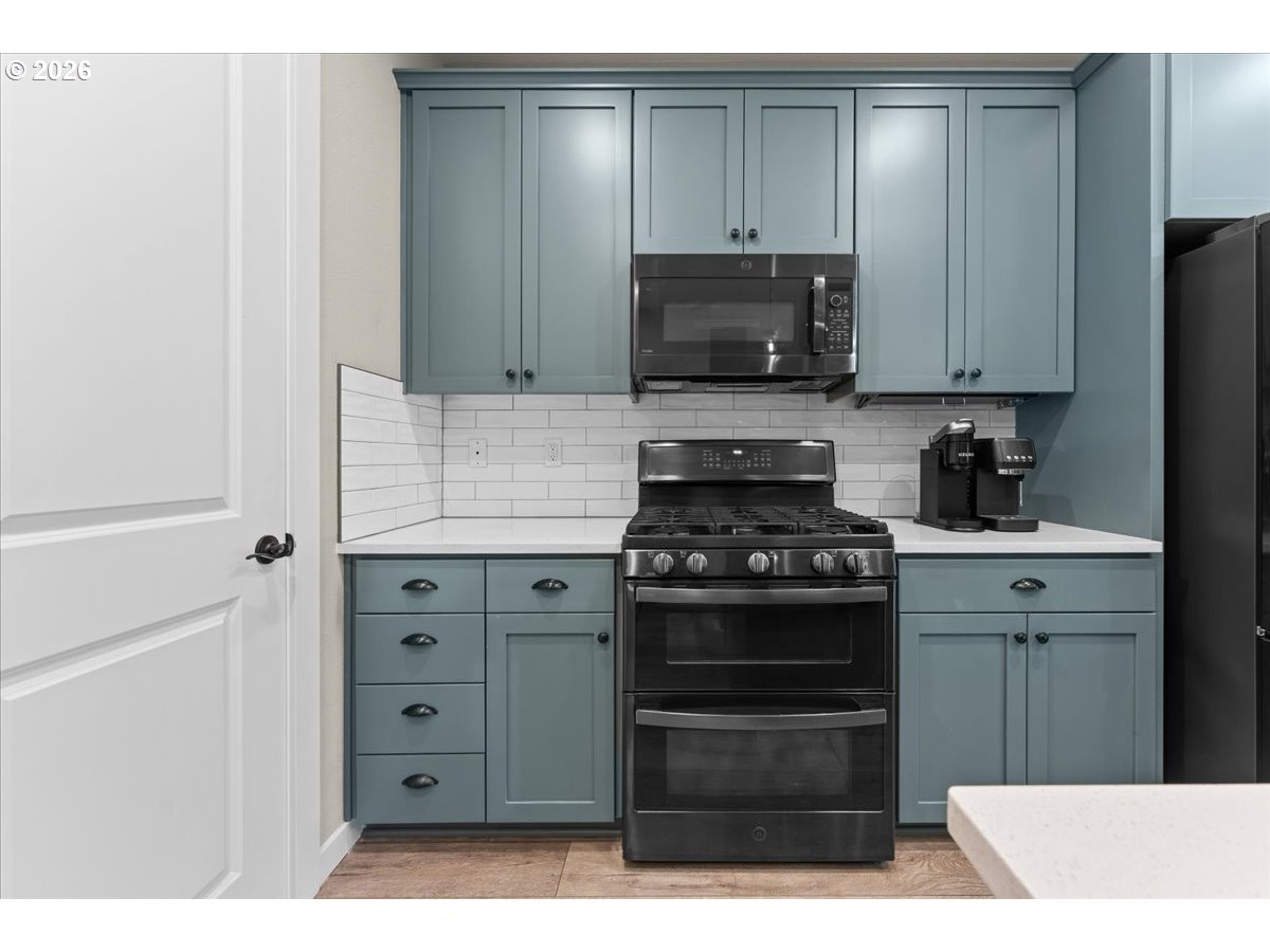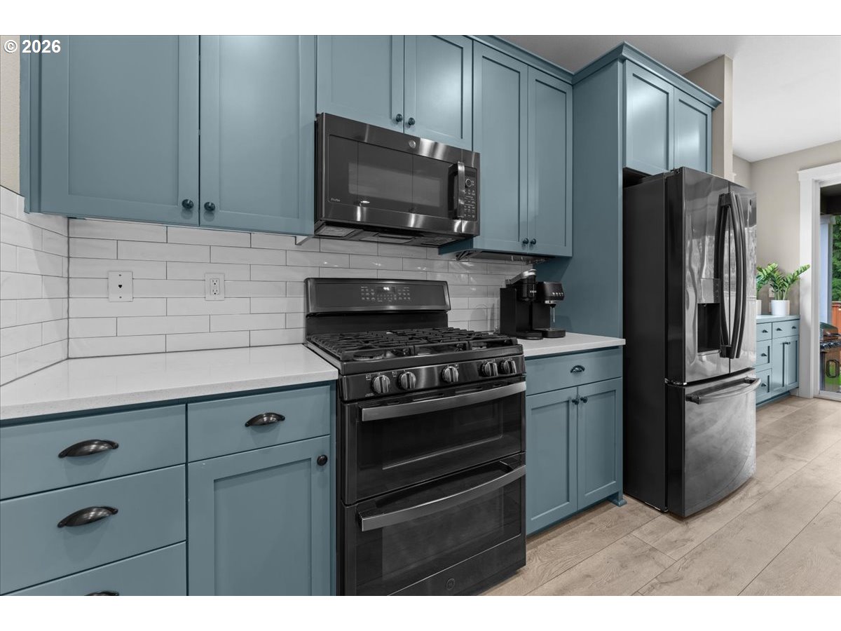 (503) 893-8874Built in 2020 and meticulously maintained, this 3-bedroom, 2.5-bath home offers the perfect blend of modern design, smart home technology, and natural surroundings. From the moment you arrive, the crisp board-and-batten exterior, manicured landscaping and the clean oversized two-car garage set the tone for what's inside. The heart of the home is a thoughtfully designed kitchen featuring sage-toned shaker cabinets with soft-close hardware, quartz countertops, stainless steel appliances, a center island with bar seating, and stylish pendant lighting. The adjacent dining area flows effortlessly through large double sliding glass doors to the covered back patio, where the real show stopper is; a breath taking private, tree-lined backdrop that not every home in the neighborhood can claim. The covered patio with recessed lighting is ideal for year-round entertaining, while the fully fenced, lush backyard stays effortlessly green thanks to a Rachio smart irrigation system that adjusts automatically based on local weather forecasts.Inside, the open-concept living room is anchored by a sleek floor-to-ceiling tiled fireplace, creating a sophisticated focal point that's both modern and inviting. Light wood-look flooring flows throughout the main level, complementing the home's clean, contemporary palette.Upstairs, the primary suite includes a spa-inspired en suite bath with a double vanity, quartz countertops, stylish cabinetry, and a tiled walk-in shower. Additional bedrooms are generously sized with excellent natural light and forest views. A versatile bonus room offers space for a home office, playroom, or flex use. This is the one that has it all; modern construction, thoughtful finishes, smart home features and a backyard to die for.Fun fact: Trimlight LED lighting installed along the roofline which let's you customize your home's look for any season or occasion, all controlled from your phone. Extra fun fact: No HOA!