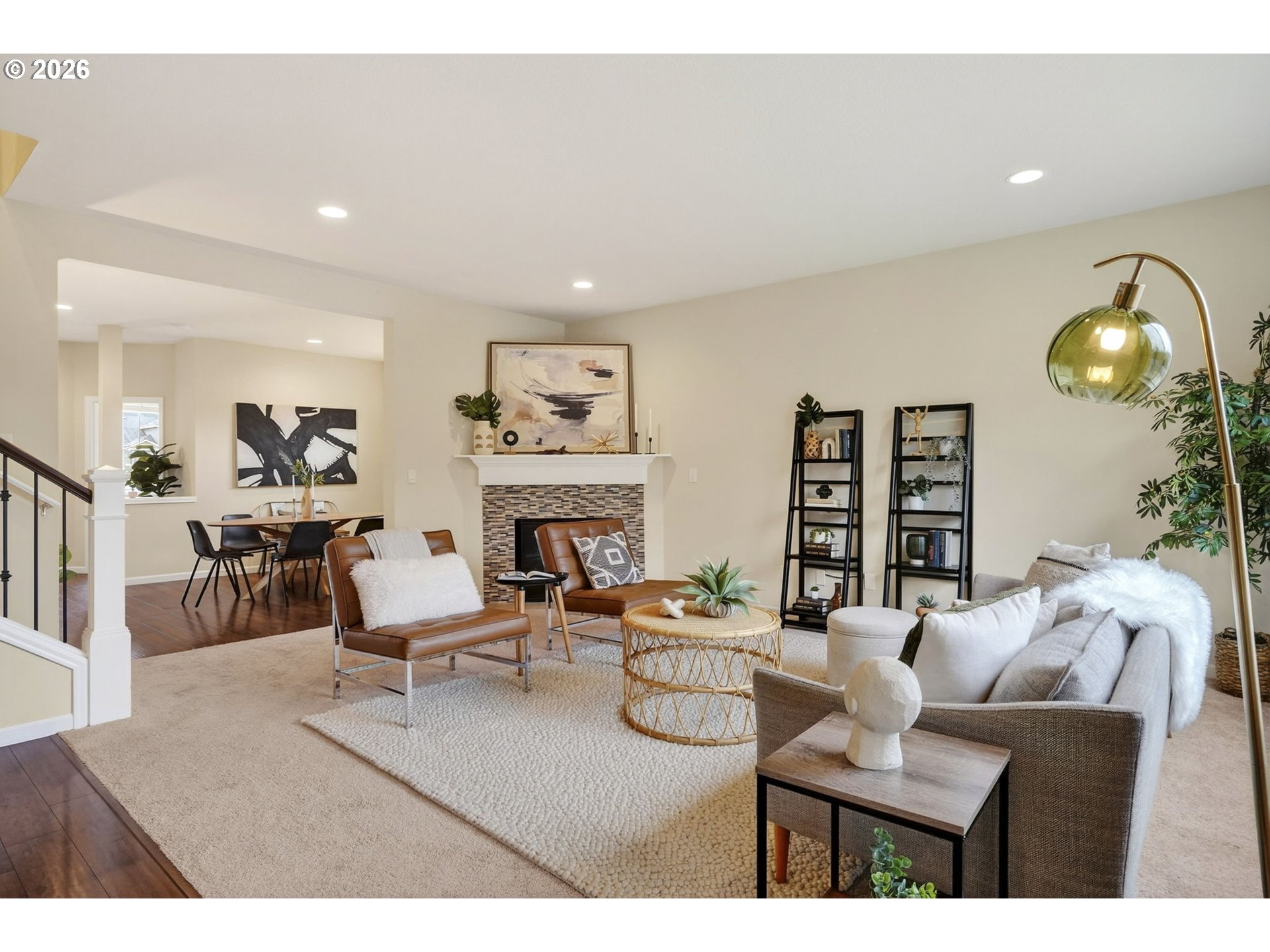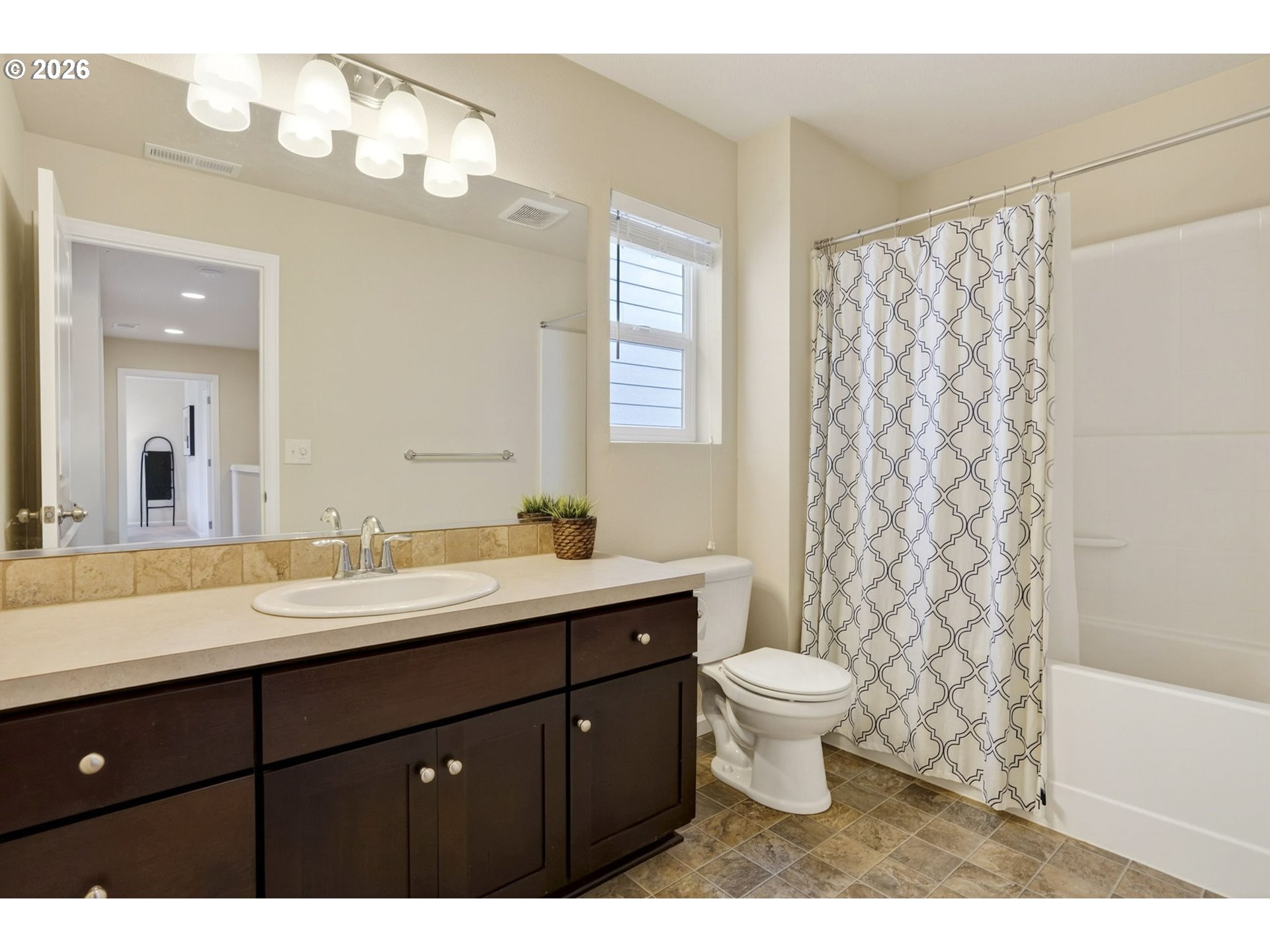 Room to live, work, host, and unwind — this home truly checks all the boxes. With five bedrooms, three full bathrooms, and multiple gathering spaces, it offers the flexibility to fit a wide range of lifestyles. Whether you’re looking for multigenerational living, one (or two) home offices, guest accommodations, or a creative studio, the layout adapts with ease. The main level features two bedrooms and a full bath, ideal for a private office, quiet retreat, or convenient main-floor living option. The open-concept kitchen and living area create a natural heart of the home. Granite countertops, stainless steel appliances, a gas range, pantry, and a generously sized bar with seating make it perfect for both everyday living and entertaining. The dining room, finished with engineered hardwood floors, offers seamless access to the patio for effortless indoor-outdoor gatherings. Just beyond, the inviting living room with a cozy gas fireplace provides the perfect setting for relaxing evenings or lively game nights. Upstairs, the spacious primary suite serves as a true retreat, complete with a walk-in closet, dual sinks with an oversized vanity, private water closet, separate shower, and a soaking tub designed for unwinding at the end of the day. Two additional bedrooms, a third full bathroom, and a conveniently located laundry room add to the home’s thoughtful functionality. A large bonus room offers even more versatility — ideal for a media room, playroom, gym, or game space. Situated in an established neighborhood, this home offers everyday convenience - a quick drive to grocery, shopping and restaurants- while still providing the space you need to spread out, settle in, and make it your own.