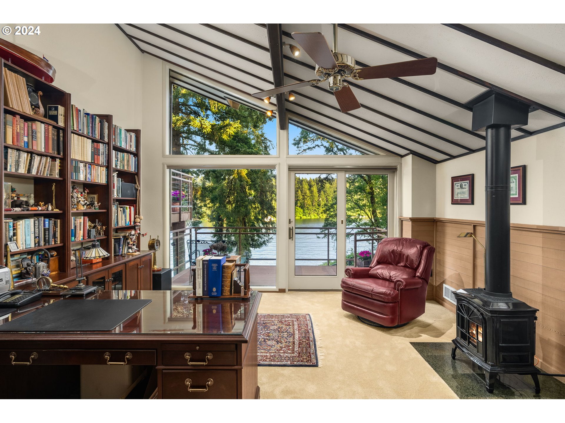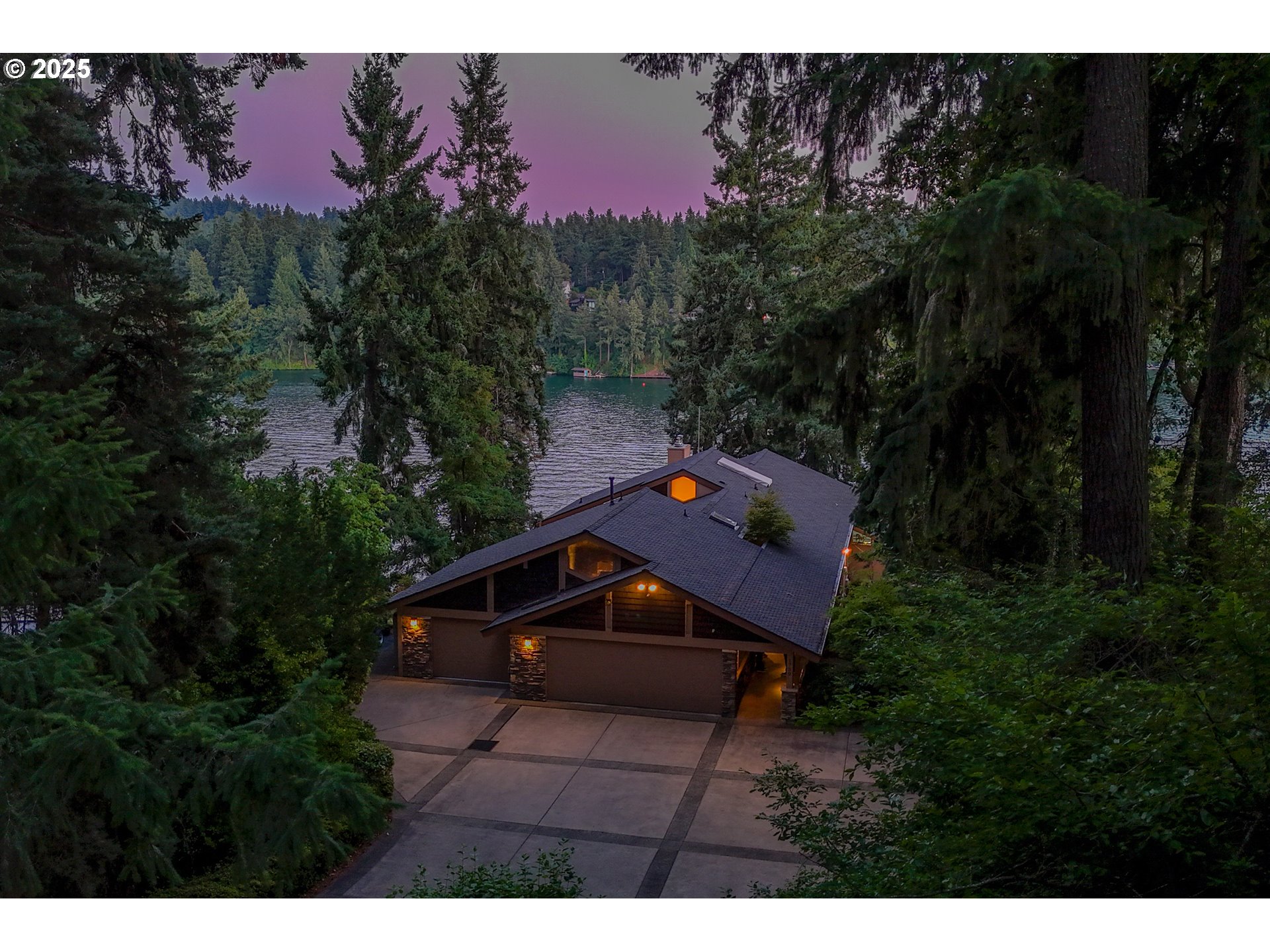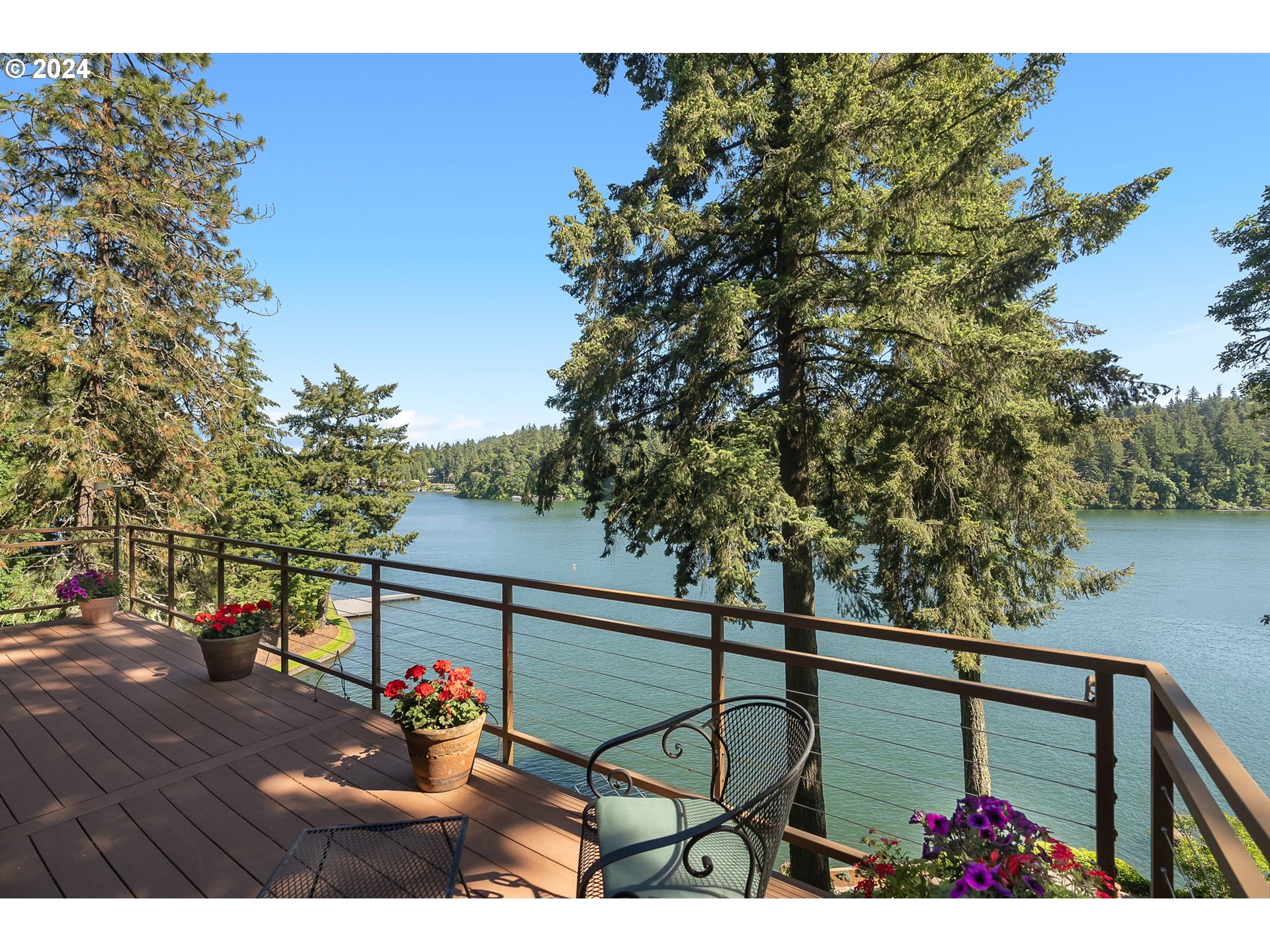 Expansive Lakefront Property in Lake Oswego. A rare opportunity to own one of the largest parcels on Lake Oswego’s main lake. Set on over half an acre of mature landscaped grounds with 130 feet of private waterfront, this exceptional estate offers a truly immersive lakefront lifestyle. A gated drive and ample guest parking provide both privacy and ease, while towering trees and lush greenery frame the setting. Thoughtfully sited to capture panoramic lake views, the midcentury modern residence features a light filled main level with skylights, a dramatic stone fireplace, and expansive windows that open to a generous deck ideal for soaking in the serene waterfront surroundings. The flexible floor plan includes three bedrooms, an office, and a bonus room, offering a strong foundation for personalization or expansion. A gentle, picturesque path leads to the shoreline, where a dock, boathouse with half bath, and two boat lifts await. There's plenty of room to add an outdoor kitchen or lounge area to further elevate this exceptional lakefront setting. Just minutes by car or boat to the Lake Oswego Farmers Market, restaurants, and downtown amenities, this is a once in a generation offering in one of Oregon’s most sought after communities.