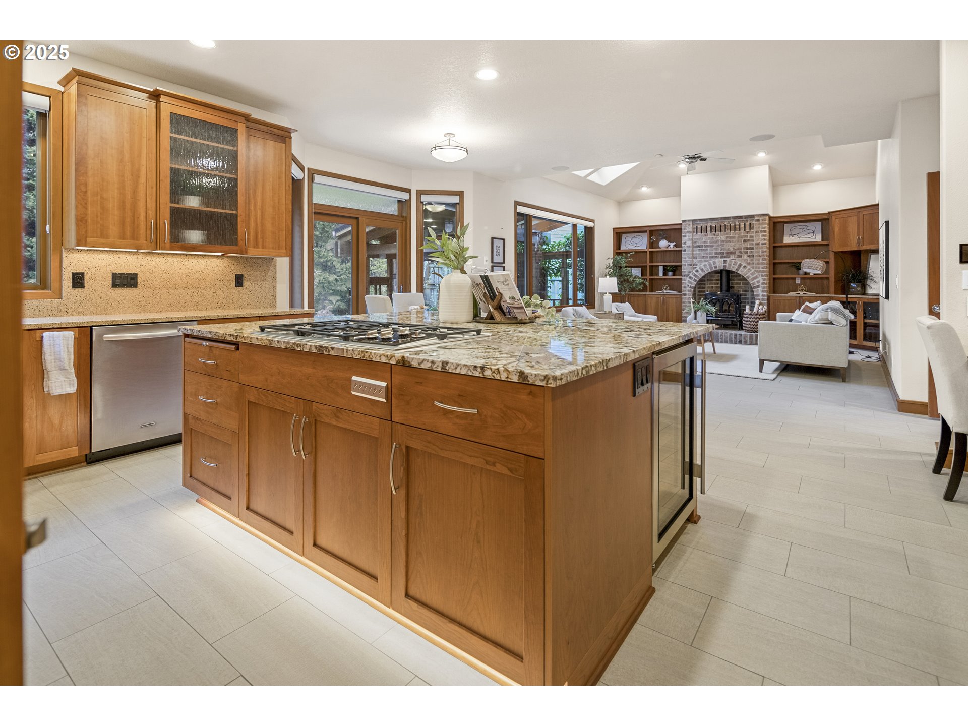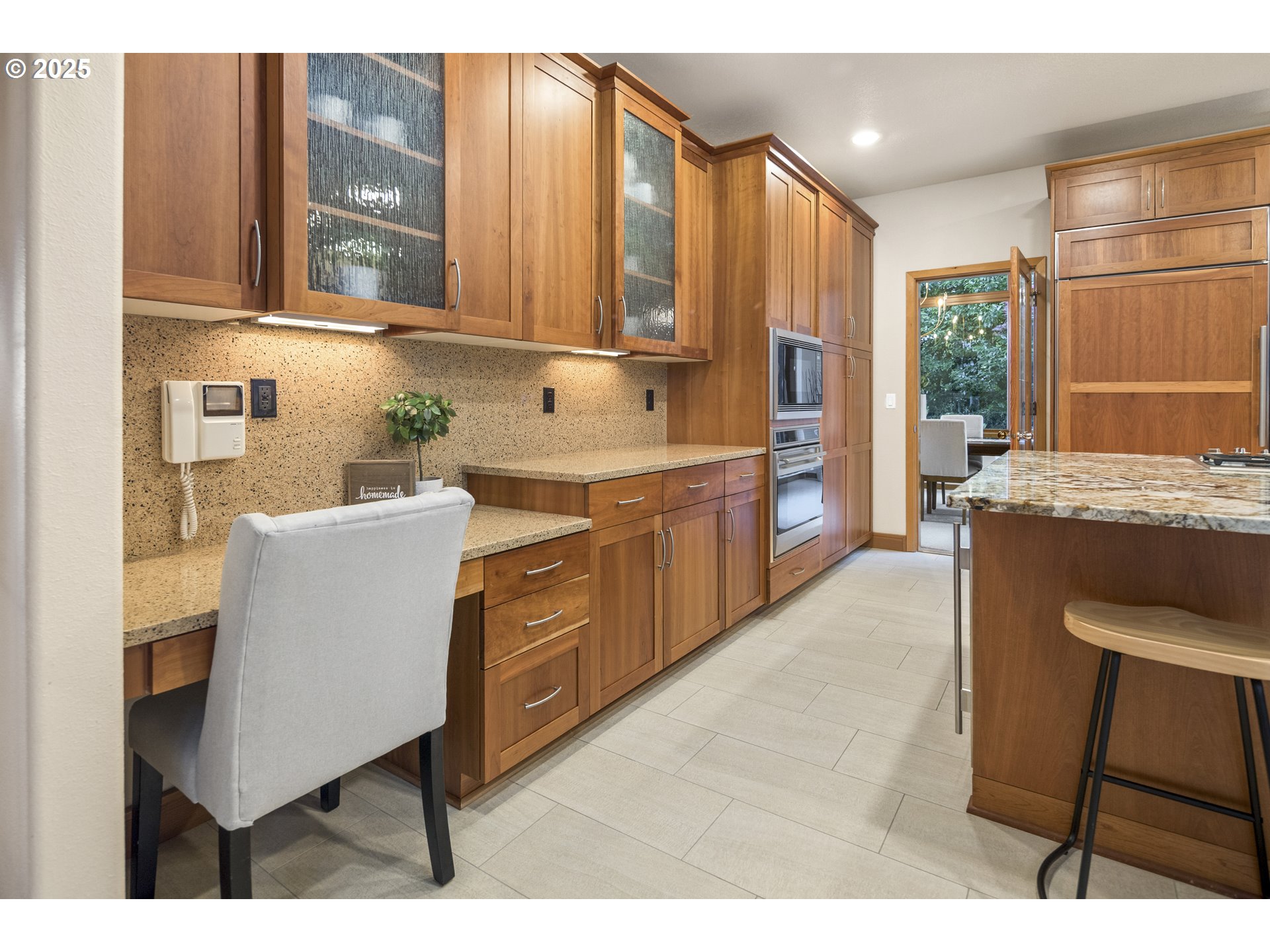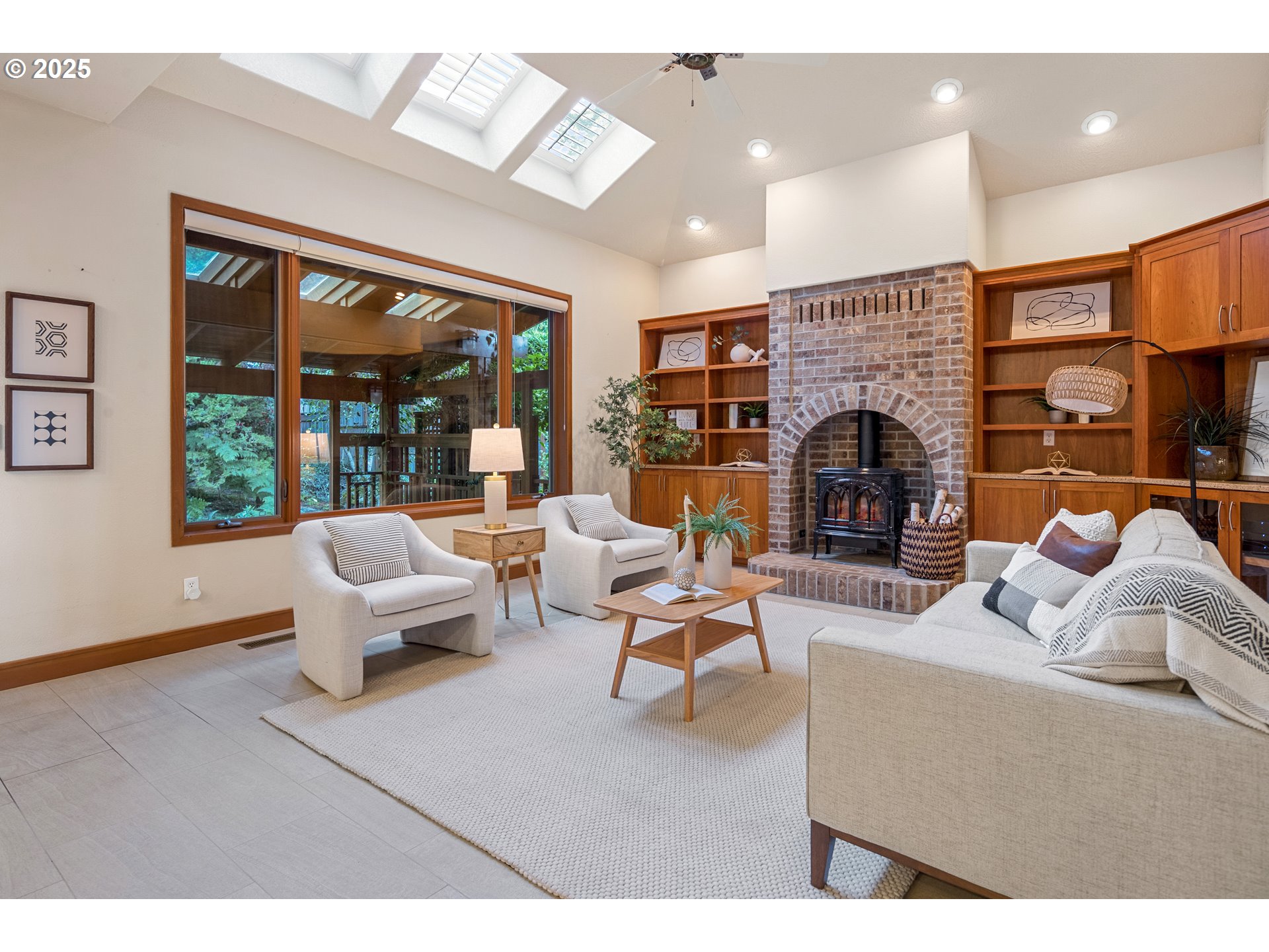 Experience luxury living in this stunning Marylhurst home, where sweeping Mt. Hood views greet you from nearly every east-facing window. Bathed in natural light, this beautifully updated residence seamlessly combines timeless design, high end materials and livability. The heart of the home is a fully remodeled gourmet kitchen featuring sleek quartz countertops, top-of-the-line Wolf and SubZero appliances, a spacious new island, and rich cherry cabinetry by Neil Kelly. The thoughtfully designed floorplan includes a main-level primary suite and a private office, perfect for work-from-home flexibility. Enjoy high-end comfort with heated tile floors, vaulted ceilings, skylights, and a whole-house Sonos sound system. Recent upgrades abound: new flooring throughout, updated water heater and furnace, double-paned wood windows, Hunter Douglas Silhouette shades, and sophisticated new railings. Step outside to a meticulously landscaped, private backyard retreat complete with a wood deck, custom-covered patio, and dog run—ideal for entertaining or quiet evenings. The oversized three-car garage offers ample storage, wine storage closet, and includes an upgraded electrical panel with subpanel and EV charger. Ideally located with quick access to downtown Lake Oswego, top-rated schools, the new LO Rec Center, Hwy 43, and I-205, this home offers an exceptional blend of style, comfort, and convenience. A rare opportunity to own one of Lake Oswego’s most captivating view homes.