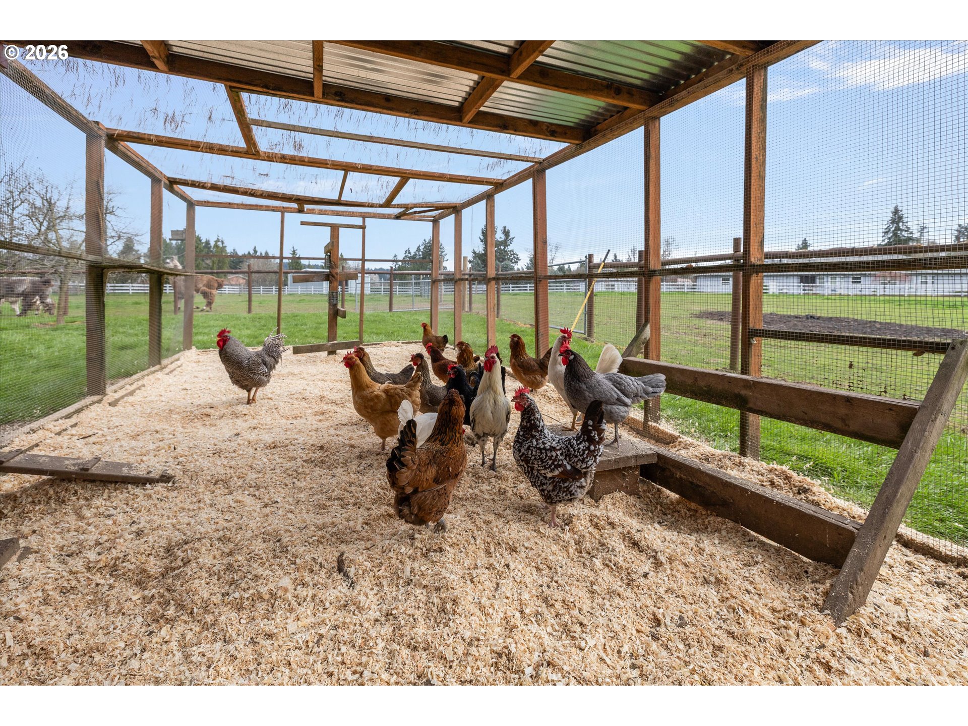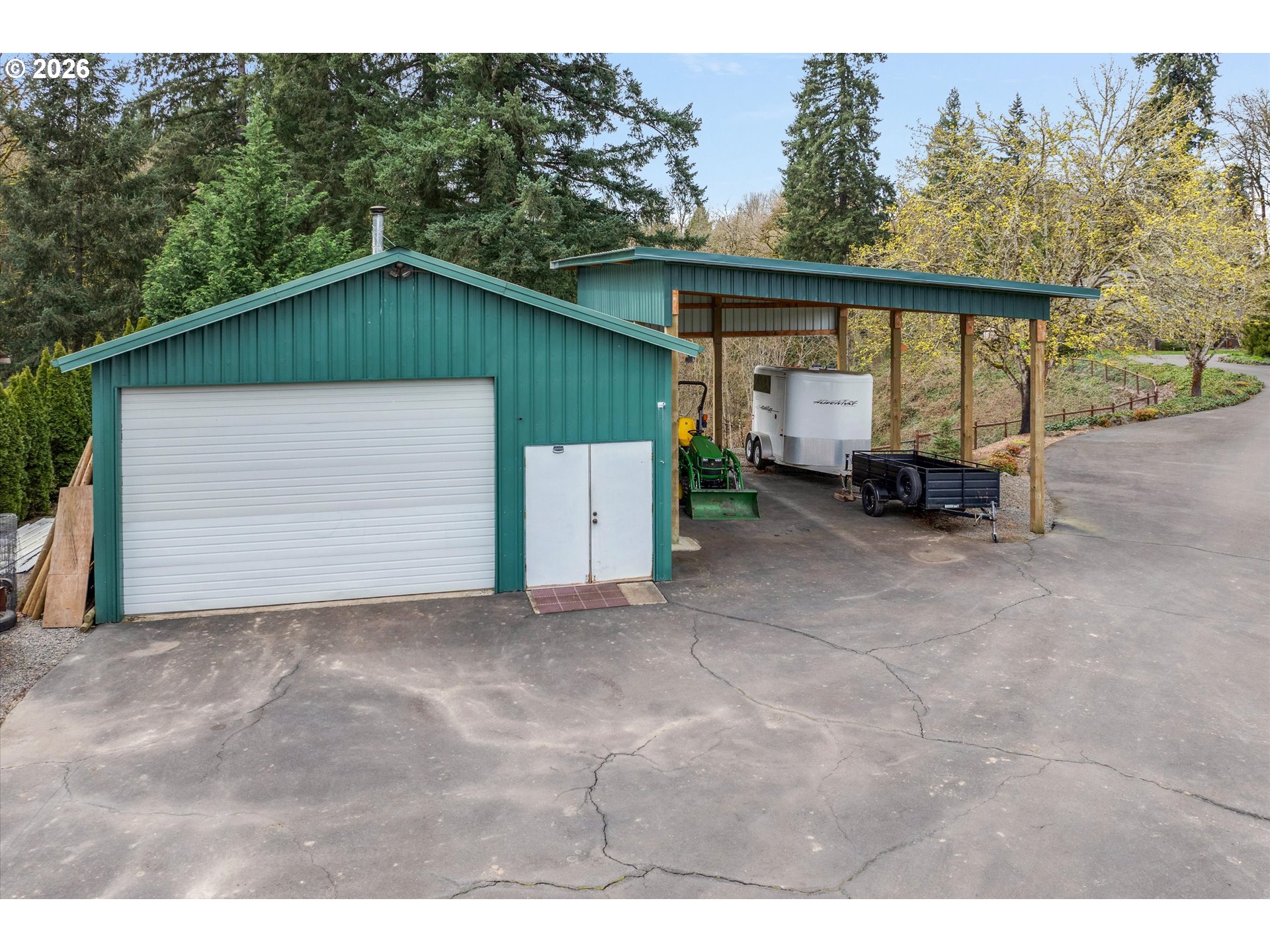 Nestled in a private country setting, this exceptional 4 bedroom, 3.5 bathroom home backs to a sprawling green space bringing nature right to your doorstep. Inside, you’ll find vaulted ceilings, new LVP, and a beautifully updated kitchen featuring quartz countertops and stainless steel appliances. The spacious family room is warm and inviting, with a new gas fireplace, built-ins and French doors leading to the patio. You’ll find a bedroom with ensuite on the main floor, along with an office. The primary suite provides a serene retreat with forest views and a charming clawfoot soaking tub.This property is designed for both functionality and lifestyle. Enjoy a 4-car garage complete with a workout space, a 40x30 shop, large carport, and a 3-stall barn—ideal for hobbies, storage, or animals. The gated pasture is surrounded by white synthetic fencing and a paved private driveway. Step outside to your own private oasis featuring mature landscaping with sprinklers, a large orchard with a wide variety of fruit trees, a spacious chicken coop, and a firepit area—perfect for hosting friends or family. Recent updates provide peace of mind and include: newer water heater, furnace, A/C, and exterior paint. This one-of-a-kind property offers the perfect blend of privacy, comfort, and country living, all just 7 minutes to I-205 and 10 minutes to downtown Historic Oregon City.