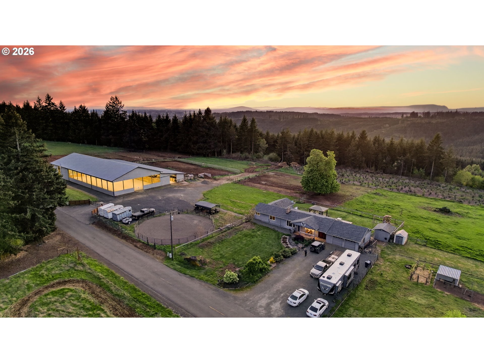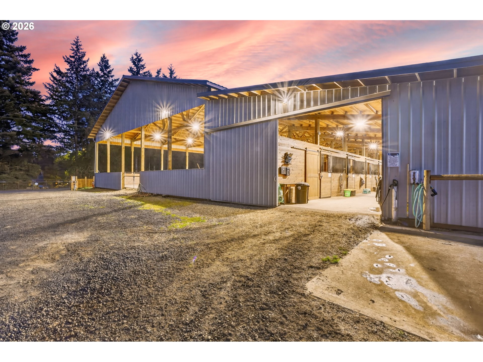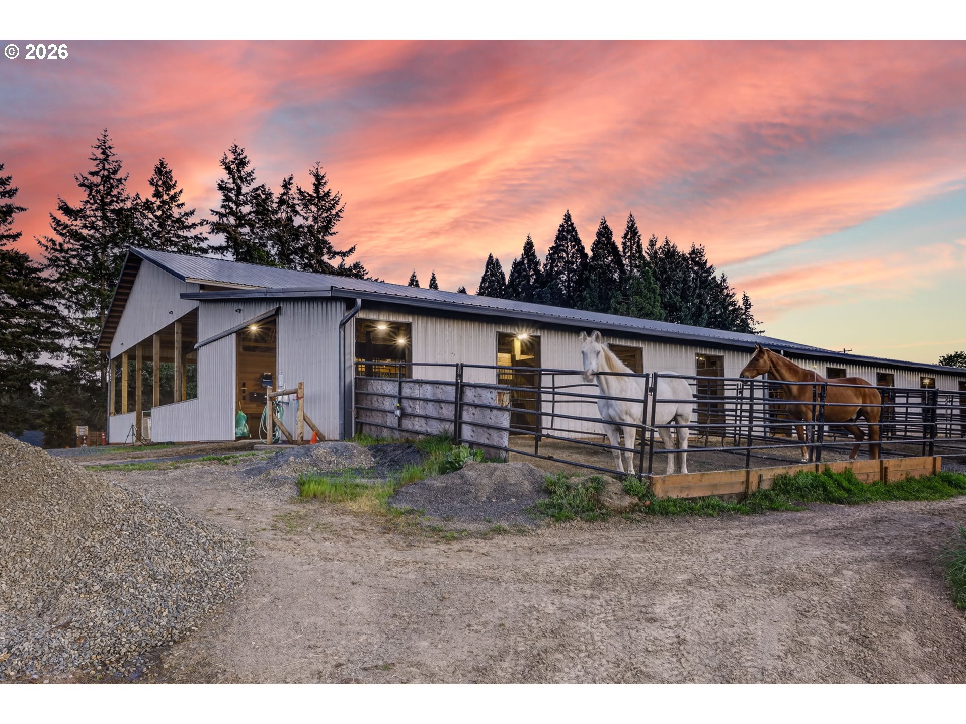 (503) 893-8874Amazing equestrian property is a perfect 10! Set on 10 private, picturesque acres, including 2 acres of trails on the back portion of the property, offering a peaceful setting with breathtaking sunset views. One level Ranch offering 3 beds, 1.5 baths-both have been updated and refreshed. Laminate flooring through the entire living space and bedrooms. The living room is inviting, with a certified wood stove and natural rock fireplace. Open floor plan for the kitchen and dinning room, slider to back covered trek deck w/gazebo for outside living, BBQ'ing and entertaining with views of the livestock, horses and sunsets. The indoor arena (120x60) built in 2023 has great footing, LED lights, and storage for up to 28 tons of hay. 24-12x12 stalls, 11 are box stalls, while 13 have 12x24 mud free runs, two tack rooms on either side of the concrete aisle way with 4 stations of crossties w/fold up saddle racks for easy saddling. In the pasture there are 14 cross-fenced turnouts with water (frost-free hose-bibs) 65 ft. round pen and an outdoor arena 80x156, with two additional grazing pastures. Patience Pole and a Hot water wash rack for convenience. Walk out the back pasture and find your self trail riding or hiking in miles of trails bordering this property and 3 miles from BLM land at the cross roads of Unger/Olsen. An electric gate to the facility to ensure your security and ease for coming and going with lots of parking for horse trailers allowing convenience for your boarders. Income producing equestrian facility that is turn key and ready for the next owners. 1900's barn (30x70) offering more room and cover for other livestock, additionally a 3-bay(48x54) metal shop with a 16x36 loafing shed for your RV/Boat/trailer storage needs. Don't forget the chicken coup and mature fruit trees, 900 fir's were planted in 2021. Roof/Gutters were new in 2016, Ext paint 2016, Heat pump is 5 years old, furnace is 10 yrs old. Entire home was re-plumbed w/Wirsbo 2023.